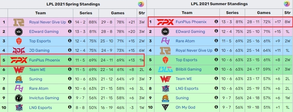 好汉同盟S12火热举行中,腾讯消息将为您带来一手赛事资讯,为您出现全方位的电竞盛宴。 都说LPL赛区的左手和LCK赛区的Chovy是“世另我”选手,但你可曾想到LPL也有两支“世另我”战队? 有如许两支队伍,他们的前锻练都是战马。 而且这俩队的打野选手都是小天。 这两支队伍在当年的通例赛排名千篇同等,都是春季通例赛第五、夏季赛通例赛第一。 这两支队伍的季后赛荣誉也千篇同等,在当年的LPL春季赛、夏季赛都是输掉末了的决赛拿到2个亚军。 固然没有当年的联赛冠军,但是依附双亚军的稳固发挥,这俩队都以LPL2号种子身份进入天下赛,而在S赛开打前都是天下赛的夺冠热门。 这俩队队内都有选手成为当年天下赛TOP20选手评比的第一名。 天下赛分组出炉,这俩队都和RGE同组,而且都输给了RGE。 而且这俩队都在小组赛输给Beryl所在的韩国战队。 已知此中一队的天下赛战绩是止步16强,那么另一队的天下赛战绩也是也是这个效果吗? |