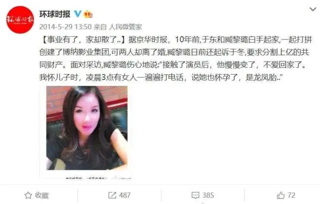 8月18日,本该是博纳影业在厚交所上市的大喜日子,然而在此关键时期,老板于冬深陷桃色绯闻:疑似与着名女星江疏影在海南某旅馆约会十天,而且为了哄对方开心,背着老婆送了代价万万的珠宝。 停止发稿,博纳方面暂未对听说作出任何回应,反倒是于冬的现任老婆,同样是演员出道的金巧巧,大方地帮两位出头澄清。但大概令这位权门太太没想到的是,她的这一辟谣,竟然被吃瓜群众顺带挖出了丈夫已往的风花雪月史,故事可以说是相当精彩。 原来,于冬曾是个穷小子,靠原配扶持发迹,发达之后被原配发文控诉出轨。作为其时的猜疑对象之一,金巧巧断然向媒体表现本身不是小三,并放出狠话“能证实我是小三,给你100万。”但末了,金巧巧和于冬还是走到了一起。 风趣的是,别看于冬的花边消息这么多,他的博纳影业却是出了名的产出“主旋律”影戏的高手。那些支持起公司业绩的影戏,如《红海办法》、《中国机长》以及《长津湖》系列,每一部都可谓根正苗红。而于冬本人,也已经在IPO之前得到新加坡永居身份,而且累计从博纳套现14个亿。 “我们费钱看博纳的主旋律影戏,老总却拿钱养小三,就这你还主旋律个头。”随着于冬的桃色听说的连续发酵,博纳影业的口碑或多或少地受到影响,但真正让于冬费心的,应该是博纳比年来飘忽不定的业绩,以及怎样稳固地输出为大众喜闻乐见的影戏两个困难。 博纳已婚老总身陷桃色风波 8月16日,八卦博主张小寒出了一组漫画,暗示经常出演都市剧的着名女星与已婚富豪在海南某旅馆约会,男方还背着老婆送给女星代价万万的珠宝。 网友根据关键词,对一众着名女星睁开了各种推测,演员江疏影、王鸥、童谣等女星皆成为猜疑对象。 此中,江疏影有最大的“猜疑”: 1、江疏影近来的一张自拍,头上别的红花,与漫画里的红花完全同等。 2、江疏影刚幸亏海南待了一段时间。 3、江疏影7月晒出的照片,带了新的手表和金饰。 4、漫画中的长直发,气质优雅,出演过非常多的都市剧,符合江疏影人设。 至于涉事男主,所谓的已婚富豪,长得像博纳影业的于冬,坐在他身边的夫人,一头标志性红发,也跟于冬在现实中的老婆金巧巧撞型。 更巧的是,金巧巧前段时间恰好去了海南,行程也能对得上。 网友顺带扒出了江疏影与于冬之间的关联。 由江疏影初次继承女主的影戏《大宅男》,投资方正是于冬旗下的博纳影业。2014年,该影戏在台湾上映,后于2015年在大陆上映,其时有看过影戏的观众质疑,江疏影的资源为什么这么好,可以让更红一点的谢娜为她作副角。 桃色听说当晚,江疏影和博纳方面并未作任何回应,江疏影本人也还在为新剧《高兴颂3》中的脚色做宣传。 唯独金巧巧忙坏了,一边发微博帮老公辟谣,一边否认本身是小三。 两段婚姻,100万求锤…藏在博纳背后的故事 原来,金巧巧并非于冬原配,在她和于冬以及于冬的原配之间,另有一段耐人寻味的故事。 根据闽南网2014年的报道,于冬的原配名叫臧黎璐,女方比于冬小6岁,家景殷实,父亲是南京影戏公司的发行司理。1997年的一天,臧黎璐去臧亲的办公室,恰好遇到了与臧父有业务往来的于冬。 臧黎璐 也不知道于冬对对方是否一见钟情,他厥后主动向臧父提出要和臧黎璐来往。臧黎璐说,固然她知道于冬的家景并欠好,于冬其时壹泵η中影团体的一个小科员,但本身并没有过多在意。 2001年,于冬和臧黎璐完婚,由于男方的银行卡里只有5万元存款,以是办婚礼的钱都是由女方利用。刚完婚那会儿,两人住在向阳管庄一套60平方米的房子里,房子是于冬贷款买的,完婚后两人共同还贷款,每月3000元。 博纳影视公司,是夫妻二人奇迹上的结晶,也是而后于冬财产的源泉。就在公司规模越做越大时,两人的感情出现了缝隙。 “我第一次意识到他在外貌有女人,是在夜里接到骚扰电话,其时我还怀着小儿子。破晓3点一女子打一遍遍打电话,说她也有身了,是龙凤胎。”臧黎璐厥后对媒体称,小儿子出生后,于冬开始夜不归宿,她曾直接扣问于冬是否在外貌沾花惹草,于冬只表现会处置惩罚好和那人的关系。 这位插足两人婚姻的人究竟是谁?只管臧黎璐没有指名道姓,但是根据她的表述,她是在2010年香港影戏金像奖上,看到丈夫与一女星牵手表态彻底心凉,以是才提出的仳离。 如果你能找到当初的影像资料,就可以发现,臧所指的大概确实不是金巧巧。 为了辟谣本身不是小三上位,金巧巧也曾对媒体放出狠话: “是就是,不是就不是。能证实我是小三,给你100万。” 2010年,于冬的第一段婚姻正式画上句号,由于其时正值博纳预备外洋上市,以是女方选择了和于冬通过协议的方式仳离,同时女方还作出了附条件放弃股权的断送。 虽说这段婚姻的了局看似非常调和寂静,但现实上,于冬并没有按仳离协议书约定的内容推行任务。 为此,臧黎璐厥后把于冬告上了法庭,来由是3套房产只过户了1套,协议约定的付出2000万元,于冬只付出了五分之一。 2012年之后,金巧巧以于冬现任老婆的身份反复表态。在走红毯时,她还会刻意展示本技艺上的“鸽子蛋”,无疑是想告诉各人,她现在才是博纳的老板娘。 从美股退市后,苦等五年末回A 在与前妻签署仳离协议的3个月后,也就是2010年12月9日,博纳在美国纳斯达克上市。 由此扒一扒博纳在资源市场的故事,发现也很故意思。 和现在多数中概股的运气一样,博纳当初在纳斯达克的表现表