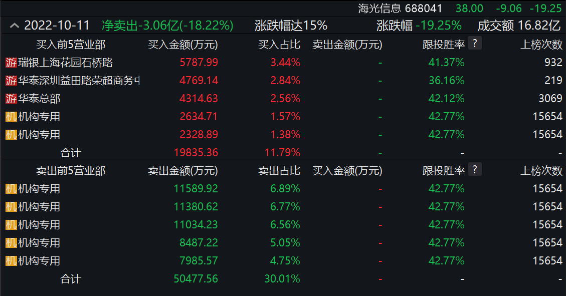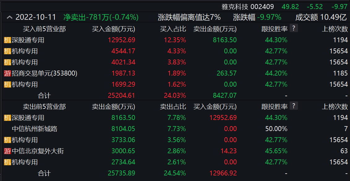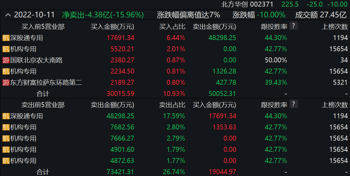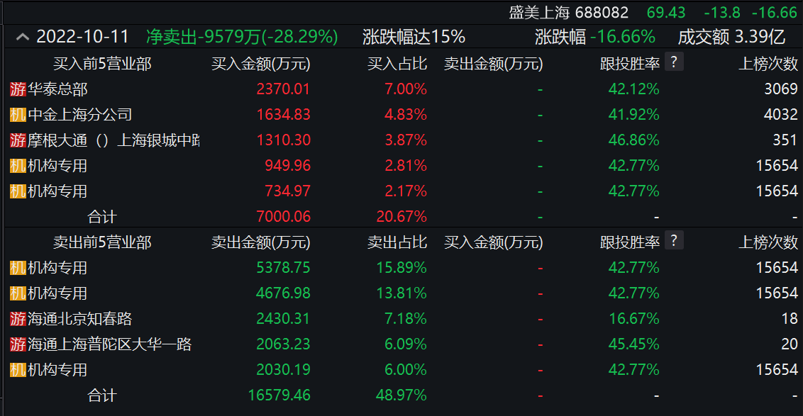 环球半导体板块在“十一”长假后齐齐调解。 停止10月11日收盘,A股半导体装备板块跌8.08%,领跌申万三级行业;半导体装备指数(8841321)也领跌概念板块,跌幅为3.36%。 不止A股,周二亚太股市芯片股同样团体走低。Wind数据表现,台积电大跌8.33%,创汗青记录最大跌幅。东京电子跌超5%,三星电子盘中一度跌近4%。 隔夜美股芯片股也遭到重挫。停止当地时间10月10日收盘,费城半导体指数下跌3.5%,创近两年以来新低。纳微半导体(NVTS.O)跌11.57%,高通(QCOM.O)跌5.22%,英伟达(NVDA.O)跌3.36%,英特尔(INTC.O)跌2.02%。 对此,有业内人士分析指出,芯片行业尚未从美国芯片巨头AMD业绩预警和三星季度利润剧减所反映的需求颓势中振作起来,美国当局新的出口限定更让行业落井下石,令市场担心感情骤增。 不外,10月11日晚间,盛美上海(688082.SH)和海光信息(688041.SH)先后发布公告称,表明白美国当局新的出口限定对公司的影响。 盛美上海公告称,美国商务部产业安全局(Bureaus of Industry and Security,BIS)公布了《出口管理条例》(Export Administration Regulations,EAR)一系列细则。上述新规对公司总体影响可控,不会对公司正常策划产生实质影响,公司将一连关注并积极与相干部门和机构做好沟通。 海光信息公告称,美国商务部工业和安全局克日发布了相干公告,拟对出口管制条例举行修改并扩大直接产物规则实用的对象范围,公司被列入此次订定的对象清单内。 现在公司的生产策划正常。经开端评估,该事项不会对公司短期内运营及财政状态产生较大倒霉影响,恒久影响须要公司进一步评估。 机构专用席位多空对垒 继周一大跌后,周二A股半导体板块继承震荡走低。 个股方面,北方华创(002371.SZ)、雅克科技(002409.SZ)一连两日跌停。海光信息(688041.SH)两日累计跌幅高达35.4%,盛美上海两日累计跌幅也高出30%;中微公司(688012.SH)、芯源微(688037.SH)两日累计跌幅均高出20%;继10月10日跌停后,至纯科技(603690.SH)于10月11日再跌8.39%。 盘后龙虎榜表现,10月11日买入海光信息金额前两位均为券商业务部席位,第三位为华泰证券总部;共7个机构专用席位出现在龙虎榜单上,分别位列买四、买五、卖一、卖二、卖三、卖四、卖五,合计净卖出4.6亿元。从该股前五名多空席位不丢脸出,机构席位卖出意愿远高于买入。 别的,华泰证券总部同样出现在盛美上海10月11日的买一席位。根据开源证券金工首席分析师魏建榕客岁的一篇研报,华泰证券总部这个业务部有较高概率对应了量化私募席位。 而盛美上海买入金额前5席位中,有2家机构席位,合计买入1亿元;中金上海分公司和摩根大通证券上海银城中路业务部各自买入高出1300万元该股。另一方面,该股卖出第一、二、五位的机构专用席位合计卖出1.2亿元。表现机构多氛围力暂时以空方占优。 10月11日,北方华创同样出现在龙虎榜上。该股买入金额最高的为深股通专用席位,买入17691.34万元,但该席位同日卖出金额高达4.8亿元,好像空方力气占据上风。别的,买一、买三为机构专用席位,合计买入金额7754万元;而卖二、卖三、卖四、卖五均为机构专用席位,合计卖出2.51亿元。 同样在10月11日,深股通专用席位还现身雅克科技的买一、卖一位置,分别买入1.29亿元、卖出8163.5万元,该席位好像颇为看好该股。而该股买三、买四、买五也均为机构专用席位,合计买入1亿元;卖三、卖五的机构专用席位合计卖出6467.7亿元。机构多方资金好像对该股较为青睐。 对于芯片股的调解,有券商以为,隔夜美股芯片股遭重挫,在肯定程度上拖累了A股相干板块的走势。 英大证券则指出,国庆期间,美国芯片巨头AMD突然预警称,预计第三季度收入约56亿美元,大幅低于预期。韩国芯片巨头三星电子披露的开端业绩陈诉表现,第三季度业务利润大幅降落32%,为近3年来初次降落。“受此利空影响,周一A股半导体团体暴跌。” “本年6月以来,环球消耗电子需求屁滚尿流,需求不振叠加三星、AMD等芯片巨头业绩下行,半导体板块团体承压。”英大证券进一步指出。 东海证券研报也指出,2022年初至今,环球半导体指数体现较弱,代表国际半导体行情的费城半导体指数年初至今,跌幅近40%;代表国内半导体行情申万电子指数,跌幅约40%。需求方面,行业供过于求局面预计将贯穿整个2022年4季度,短期内电子团体需求较难规复至往年需求。 多家A股半导体公司三季报预喜 相比之下,国内相干公司则业绩喜人。 10月11日午间,北方华创发布2022年前三季度业绩预告,预计2022年前三季度实现业务收入94.44亿元-104.44亿元,同比(较上年同期)增长52.98%-69.18%;实现归属于上市公司股东的净利润15.55亿元-17.95亿元,同比增长136.16%-172.62%。 而在前一日(10月10日)盘后,均胜电子(600699)、振华科技(000733)均发布了2022年前三季度业绩预增公告:均胜电子预计第三季度单季度实现业务收入约128亿元,同比增长约22%;振华科技预计前三季度实现归属于上市公司股东的净利润18亿元-19亿元,同比增长88.34%-98.81%。 东吴证券也预计第三季度半导体装备板块业绩有望一连快速增长。停止2022年上半年末,半导体装备企业条约负债、存货继承创新高,富足订单将保障短期业绩继承高增长。 “国内半导体装备企业正进入利润加速开释期。”华鑫证券研报预计,国内厂商未来扩产筹划相对明白,在美国进一步挤压下,未来国产新机台的验证工作有望积极推进。同时,随着装备企业积极研发,