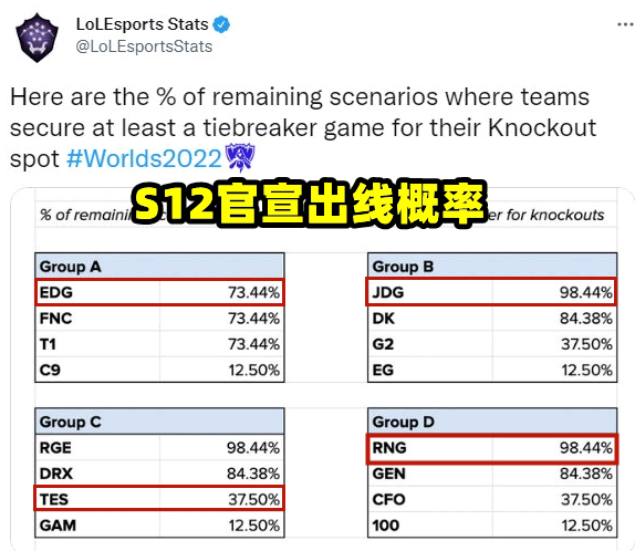 【关注残影游戏,看LOL最新资讯,本日咱们聊聊S12官宣的出线数据图】 固然说数据不代表就肯定能决定角逐的走向,但没有数据作为根本,想要看清局面又谈何容易。这不,在S12小组赛第一轮竣事之后,就出现了大量战队出线的分析数据,简朴概括一下就是JDG、RNG稳出线,EDG出线概率不小,但想小组第一出线就还得加把劲,滔搏这边比力特殊,接下来的角逐全胜,那就能出线,如果输一场,那就得看其他战队的表情,形势可谓是相当的严肃。 而在这休赛阶段,LoLEsports官方也是发布了各战队的出现概率,至少是可以有加赛能打的概率。这里先跟各人简朴说一下,该数据看的只有分列组合后的晋级概率,因此,没有思量战队现在的状态,像GAM、C9这种背面三场全胜的环境,也都是盘算在内的,以是各人所看到的只是理论的出线数据,实际出线概率肯定与这些是有弊端的,各人可以拿它做个参考,但也不消过于较真。 小组赛第一轮全胜的几支战队,分别是JDG、RNG与RGE,这三队的晋级概率都到达了98.44%,可以说是靠近100%了。他们组内的别的三队,分数也与别的的队伍同等,因此,晋级概率也都是同等的,依次是84.38%、37.5%与12.5%。滔搏也在这之中,而且晋级概率不到四成,这对于一支赛前的夺冠热门战队而言,无疑是让粉丝难以继承的,现在能否晋级,就看背面能不能连胜。 是靠自己晋级,还是看别人的表情,就看滔搏自己的发挥了。EDG这边还是比力焦灼的,作为一个“恩怨小组”,EDG与T1、FNC形成了循环胜负关系,比分扳平了。后续如果继承这个循环胜负的,大概率是要举行加赛的,没想到隔了这么多年,纵然战队的选手更换了,这几个队名的队伍仍然还是云云坚挺,还是咬得那么死。等待一下吧,盼望EDG可以小组第一出线,如许就可以制止八强内战了。 比起LPL晋级的概率,LCK就弱了一筹,三支队伍为84%,T1为73%,属于LPL胜率的中心条理。这内里最令人感慨的还是GEN,当初麦哥曾推测,只要滔搏内战提前出局,GEN大概率会全胜夺冠,现在看来这句推测在小组赛就失败了。RNG不但拿下了GEN,还赢得相当漂亮,以RNG现在的这个状态,以及版本的适配度来看,第二场对阵GEN仍然是不虚的,如果能再赢一场,GEN怕是心态也要炸。 局面各人也都看得懂,LPL大抵就是“两稳一悬”,稳在JDG与RNG这个点,悬则悬在滔搏这一块,至于EDG,说稳也稳,但A组究竟还是过于焦灼,欠好下直接判断,盼望别被水鬼拉一手。LPL此次要想夺得S12的冠军,残影以为八强最好还是不要出现内战,队伍越分散,晋级四强的时机也会更多,究竟有些战队打外战还是很强的。好了,对于LPL这四队,各人以为哪一队打外战最狠呢?欢迎在下方留言品评哦! PS:100%原创文章,手动打字不易,喜好的小同伴可以关注一波哦! |