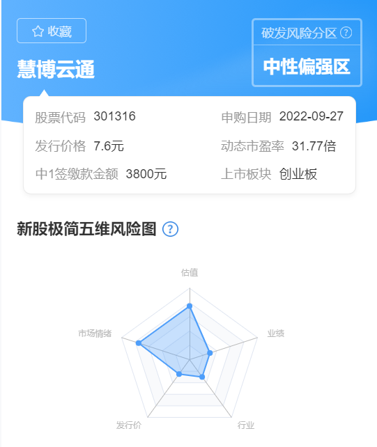 每经记者:周欢 每经编辑:吴永世 老铁们,近期新股破发不绝。不外,本日上市的新股却非常给力,三只新股都暴涨。 早盘,慧博云通最大涨幅为237.63%,中一签最多可赚9028元;亿能电力最大涨幅到达95.80%,中一签最多可赚479元; 而圣晖集成是主板公司,首日大涨44%,中一签已经可赚11990元。 也就是说,本日的新股将为投资者喜提凌驾两万元收益,实属不易啊。 那为何这么牛呢?新股雷达研究员就来聊聊此中的缘故因由。 据《新股雷达》数据,对于慧博云通,固然公司没有估值上风,但是业绩增速较高,以是界说为中性偏强区。 亿能电力的估值上风显着,业绩增速妥当,发行价也很低,界说为惬意区。 圣晖集成估值上风显着,业绩增速高,也界说为惬意区。 逐日经济消息 |