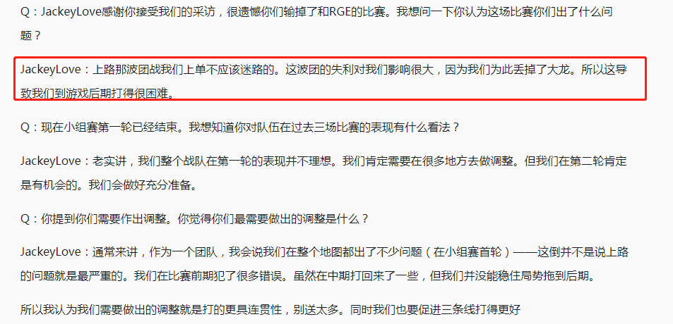媒介:豪杰同盟S12小组赛首轮已经战罢,对于TES粉丝来说,心情犹如坐过山车,首战轻松干碎GAM,仿佛TES全队的状态依然火热,但是第二局对阵DRX,TES的题目却开始显现,紧张表现在下路对线被克制,中单支援不到位,上路被针对后没有声音,中后期团战要么少人,要么葫芦娃救爷爷,终极备咝随彻底干碎。TES这支队伍号称至臻全华班,而阿水和左手无疑是绝对的焦点,因此在比赛竣事之后,关于阿水和左手的质疑声也从来没有断过,在一些讲授大概主播看来,阿水的题目也比力显着。 阿水担当采访时直指魏延失误,以为队伍缺乏连贯性在首轮战绩打出1-2之后,有媒体统计出TES晋级8强的概率只有4成,而选手们的压力也自然很大,尤其阿水担当采访时乃至出现了手抖的一幕。在采访中,阿水直言第一轮小组赛表现不太理想,对阵RGE的比赛败北,上路那波关键团上单不应该迷路,对我们影响很大,导致丢掉了大龙反面很难打,队伍进入第二轮之后,会进一步提拔连贯性。阿水的这个采访也引发了不小的争议,由于在不少LPL水友看来,阿水的题目同样很显着,乃至TES的下路现在已经成为突破口。 Knight殒命凝视图火了,RNG名宿AJ花式开团阿水别的TES首轮比赛战罢,Knight的表现得到了不少水友的肯定,在不少人看来TES唯一状态正常的选手就是KNight了,乃至一张“Knight殒命凝视图”在网络上火了起来。固然也有水友以为Knight的题目也很显着,那就是支援较慢,没有前期游走资助下路和上路打开上风。面对如许的观点,RNG名宿AJ在直播复盘时回怼了一波。 在TES输给DRX后,AJ就剧烈品评了TES一波,他以为TES全程都是失误,下路题目很大,德莱文前期没上风后期一点用没用。效果导致AJ的直播间被爆破,效果AJ现在也是某牙大主播,直接选择花式硬刚了一波,他把直播间标题改成“对线水母”,随后拉来一位阿水女粉和一位中立男粉举行复盘。 AJ通过“帮阿水洗”的方式来开团,比方阿水越塔那波踩夹子,AJ直言DEFT在德莱文一技能被动图标那边放夹子,着实太阴了,拳头筹划师也有锅,应该把女警夹子筹划得更显着一些。随后阿水被3人GANK那一波,AJ直言TES其他选手的插眼也有题目,直接把阿水给迷惑了。厥后看弹幕有人说左手支援慢,AJ直接回怼说:左手已经最洪流平拦截塞拉斯了,如果这要是路人局,我要是左手已经开始喷这个下路组合了。不得不说AJ也是真的刚,是真的敢开团。 个人分析总结固然对于TES来说,也有一个好消息,那就是有水友扒出了小天的RANK战绩,发现他的男枪已经练出来,RANK局险些是把把暴走,手感看上去非常好。如果阿水和魏延的状态可以或许调解得好,那么他们在第二轮完成逆袭也不是没有大概。固然AJ开团归开团,也以为TES状态差大概也是由于不平水土,究竟一些选手是初次在外洋打比赛,如果出现不平水土的状态,那么乃至无法专心打比赛。那么末了题目来了,各人以为现在TES最必要调解状态的选手是谁?阿水的题目是否真的很大? |
