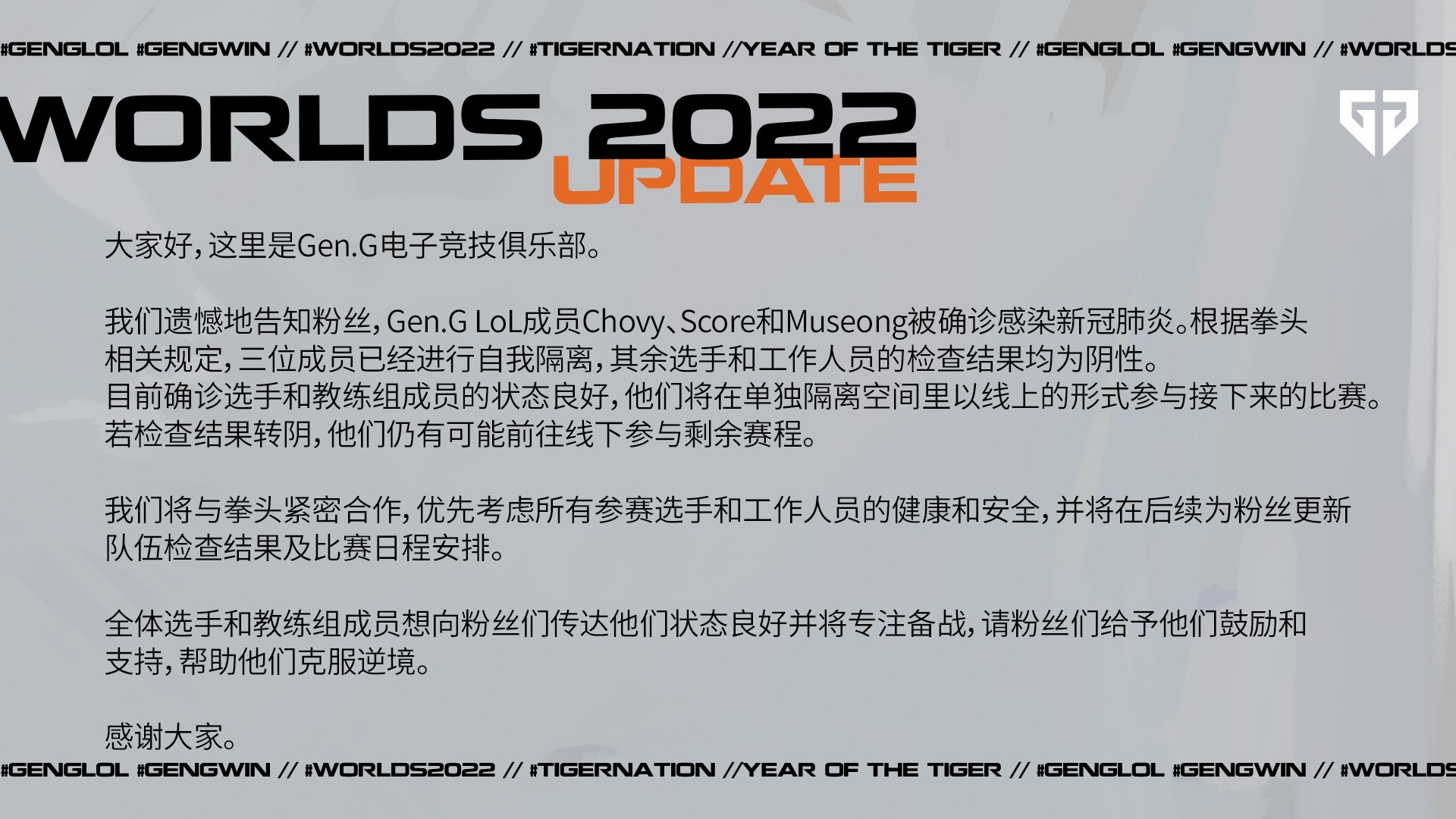 S12天下赛小组赛第二轮开赛前一天,不绝有战队传出选手确诊的消息,起首是EDG这边官宣了Scout确诊,紧接着DK官宣canyon确诊,很快GEN也发布了官宣,chovy和2位锻练确诊了。 GEN官宣的原文如下,在外洋交际平台和微博上都发布了官宣,体现chovy、score和Museong三人确诊,如今3人已经按照规定自我隔离,其他选手检测效果正常。和scout、canyon一样,这三人也将在隔离环境中到场练习赛和角逐,直到转阴。 此中Score和Museong都是锻练,chovy则是GEN的核心选手,以是GEN这边中招的人数最多,大概影响也是最大的。紧张缘故起因还是他们在小组赛第一轮中打得并不好,固然赛前被很多国表里媒体和相干职员狂吹成本年夺冠最大热门战队,但是小组赛第一轮战绩是2胜1负,而且没有显现出一支夺冠潜力战队该有的统治力,实在是让很多人非常扫兴的,韩网在小组赛首轮后声讨他们的帖子也特别多。 小组赛首轮输给RNG,还算是可以明确,毕竟RNG是LPL赛区的战队,而且也是本年的MSI冠军,力气天然不容小觑。但是GEN在和CFO、100T的角逐中,都赢得比力困难,失误非常多,给了很多机遇,这才是最让人扫兴的。如今以他们的这种状态,隔断夺冠另有很长的路要走,更别说如今核心选手chovy确诊,会不会对角逐的结果造成影响了。 固然每位选手确诊后的反应都不一样,像是T1打野oner固然确诊,但是却在赛场上体现更加勇猛,也有showmaker,确诊后很长一段时间都不绝咳嗽。还是要看每位选手的体质,渴望这几位确诊的选手和工作职员尽快全愈吧,GEN毕竟是传言中练习赛最强战队,还是渴望在角逐中也看到他们强力的一面,至少不要被外部因素影响到了角逐的结果吧,渴望选手们都可以尽快全愈,早日回到角逐现场来打角逐。 那么,对于这份GEN的官宣,你们有什么想说的吗?接待在品评区留言探究。 |