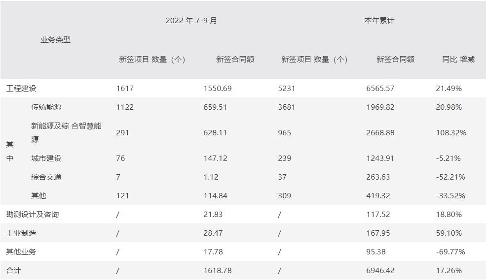 中国能建10月13日公告,公司前9月累计新签条约额6946.42亿元,同比上涨17.26%。 |