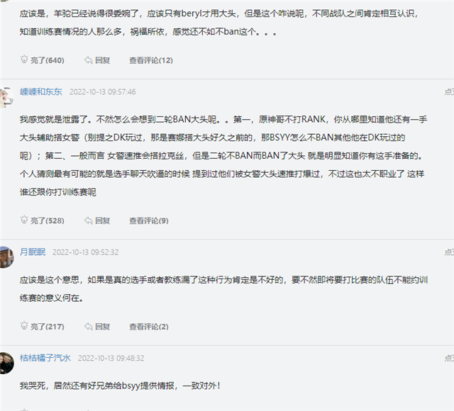 前导:小组赛第二轮尚未开始,选手却面临采访风波。起首是阿水,由于翻译翻错了一个词,导致阿水被冲。选手、战队表明之后,依然有人责备非难阿水不认真准备比赛,只知道为自己澄清。乃至有人扯上了宝蓝:当初宝蓝被爆破的时间,阿水为什么不站出来替他澄清,现在知道维护自己了? 受此影响,TES晋级镌汰赛大概性再次低落。选手心态或受到影响。第二次采访标题出现在deft身上,选手好像以为LPL战队提前互通消息,让TES在bp上针对他们?不知道他是不是跟阿水一样,遇到了不合格的翻译。 deft直言不惬意:LPL各大战队或互通bp消息针对他? 主持人问戴老师:比赛当天你继承采访,不明白为什么对面ban大头。戴老师表明说:毕竟上,我们不停在思量要不要公开自己练大头的情况,比赛后感觉很不惬意。训练赛只有我们用过大头,也不是其他队伍常用的好汉。TES直接ban掉让我们心情低沉。幸好终极赢了比赛,大概是别的队伍也用过大头吧。 deft这番话有几个差异寄义:起首,他们在夷由是否公开大头训练情况,显然,这所谓的“训练”不是指rank,而是训练赛,由于rank记载不消隐蔽。一旦DRX公开了“大头训练情况”,就会告诉各人跟谁打训练赛用过大头。 其次,戴老师说只有他们用过大头,不知道TES为什么ban这个好汉。暗示有LPL队伍互通消息,提前告知TES训练赛情况、让他们ban大头。一旦DRX公开训练赛细节,各人就知道是哪支队伍了。末了戴老师还找补:大概是其他战队用过,我们没遇到过吧。 deft的说法被T1小吕布拆穿了:不停都有人在玩 如果LPL各大战队互通有无,那么“差异组不约训练赛”就失去了意义。不外戴老师这番话太过牵强,有点站不住脚:起首,不止他们一个战队用过大头,从排位就能看出来。迩来的rank记载里,TES选手不止遇到一位用大头的辅助。 其次,DK辅助beryl迩来不停在练大头,以往比赛里他也用过,TES提前ban掉很正常。第三,T1选手小吕布“拆穿”了戴老师的说法。迩来小吕布继承采访,被问一个标题:有没有一些好汉不在比赛中登场,但是经常在训练赛上看到? 小吕布的答案是:辅助大头,很显着有人在用,但力气也就那样。按照小吕布的说法,训练赛经常有战队拿辅助大头,并不是只有DRX一支队伍在用,戴老师借此责备非难LPL战队走漏训练赛消息,很没原理。 总结 在我个人看来,训练赛已经利用的好汉,跟公开了没什么区别,以是也不存在什么互通消息的说法。打铁还需自身硬,想要夺得末了的胜利,自身的力气必须到达肯定的高度,要否则早晚也得被镌汰。固然,并不说这就是Deft的错误,上升不了那种高度,这只是每个平凡人都会有的那种警惕思而已。 |