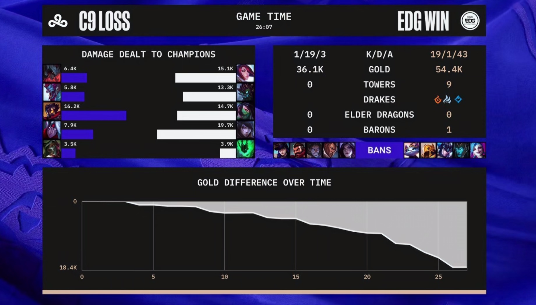 各位LPL的观众和洽汉同盟召唤师各人好,这里是天卑鄙戏汇。 S12小组赛A组EDG首战开始之前,RNG传出坏消息,除朱开和GALA外其他选手全部抱病,幸亏RNG的比赛是在17日举行,EDG方面Scout在带病出战的情况下,EDG是拿出剑姬大树的上野,直接打出19-1的碾压局乐成取胜。 Meiko本局拿出锤石再次封神,前期多次Q技能脱手资助EDG打开突破口,赢下这一局后EDG出线局面就比力清朗了。 Meiko再现神钩,EDG巨大上风EDG关键一战的BP,赤色方拿到了大树,以剑姬Couner剑魔,中单出阿卡丽,第二轮选出厄斐琉斯与锤石的组合,C9方面则是在拿到剑魔的情况下,搭配了维克托与巨魔的中野组合,二轮选出韦鲁斯烈娜塔。 阵容对比上,EDG的中野看起来更强势,纵然巨魔能Counter大树,阿卡丽前期的作战本事还是领先许多,关键看上路剑姬对线能不能打出来,团战层面上C9后期看起来更好打。 比赛刚开局,下路Meiko就Q出了烈娜塔净化,不久之后巨魔强行Gank下路,但Meiko再次Q中烈娜塔共同厄斐琉斯完成击杀。 上路对线上风,Meiko得以游走打联动,EDG任意是以四人之力强行击杀中单维克托。 上风之下Jiejie实行越中塔共同阿卡丽击杀维克托但失败了,幸亏是没有职员伤亡都乐成后撤了。关键的先锋团战C9率先落位,但上路没有线权,EDG随后四人赶到,Meiko直接Q中巨魔共同队友集火击杀,后隔墙Q中烈娜塔,打出0换2并拿下先锋。 无挂念碾压,EDG拿下三连胜EDG先锋撞上路一血塔拿下,剑姬直接腾飞了,后续阿卡丽是分线到下路刚好碰到了辅助烈娜塔,完成了一波单杀,反面EDG就开始稳固运营了,使用视野和资源克制接二连三地扩大自身的经济上风,C9掉队局面下只能选择各种放。 但经济劣势的口子没能止住,被EDG连续将上风扩大到七八千以上。 EDG上风局推中二塔锤石先手击杀巨魔,后本身也阵亡,但Viper是再击杀一人打出1换2,21分钟小龙之前的团战,C9试图抓剑姬但是被EDG反困绕,一波瓮中捉鳖EDG轻松打出团灭后顺遂拿下了小龙,此时的比赛已经失去挂念。 23分钟C9殊死一搏,但被EDG逐个击破打出0换4后,直接拿下大龙。 大龙BUFF推进EDG是再次打出一波团克服利后,一波竣事比赛拿下了小组赛的第三场胜利,也是一波三连胜。 关于EDG出线形势的个人看法个人以为EDG这一场比赛的胜利可以给许多粉丝吃下一颗放心丸了,重要是关注一下Scout的状态,从选手画面来看Scout好像有些衰弱,但场上体现还是可以的,本场比赛EDG重要是依赖上单对线,以及野辅的节奏打崩了C9。 反面EDG立即迎战FNC,假如可以或许赢下来就可以提前锁定一个出线位置了。 缘故原由很简单,FNC在本日团体的竞技状态不佳,上来背靠背的情况下,连续输给了C9和T1,战绩变成2-3,EDG拿下四胜的情况下,就可以和T1竞争第一名了,同时EDG也是将C9送走了,也算是完成了对S7那一年天下赛的复仇了。 BP层面上,EDG拿出大树是比力令人惊喜的,固然EDG已往是很善于大树的,但毕竟已往这么久了,重新拿出大树还是让观众们非常开心的,另一个令人惊喜的点就是圣枪哥的剑姬,本领也黑白常强,盼望EDG可以或许维持住这种精彩的竞技状态,夺取连续本身的连胜。 同时也盼望RNG在大量选手抱病的情况下做好须要的治疗,只管不要影响之后的状态。 |