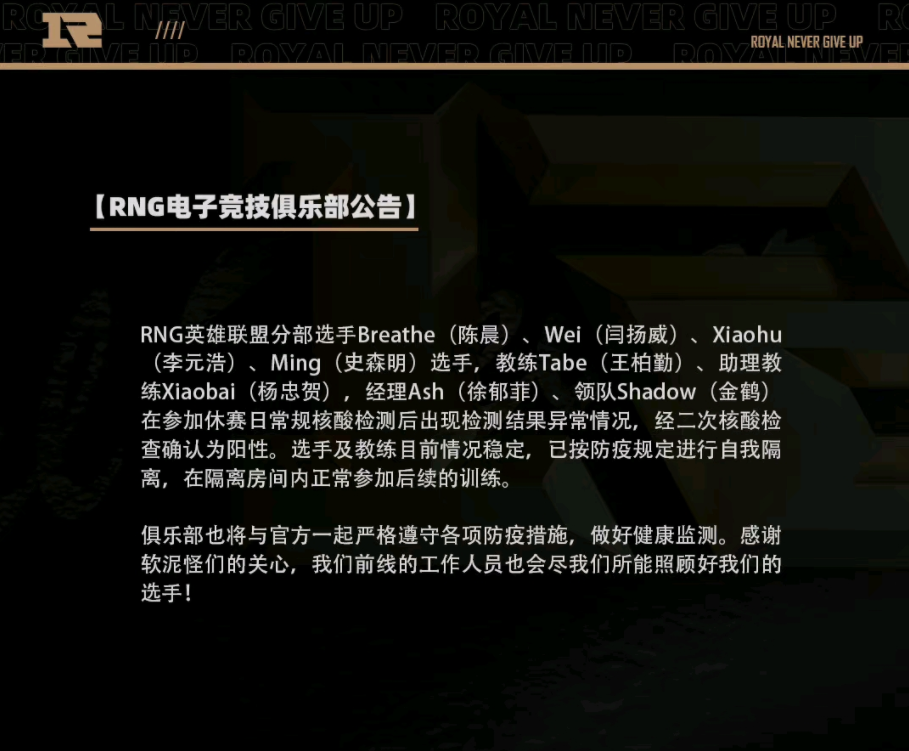 媒介:10月14日,好汉同盟S12小组赛第二轮已经开打,EDG在击败C9和FNC之后,已经提前锁定8强赛名额,让浩繁淀粉长舒一口气,SCOUT之前传出坏消息,让不少水友担心,但EDG照旧稳住了,没有让比赛翻车的一幕重演。然而与此同时,别的一支LPL御三家战队RNG却传出了坏消息,那就是队内有多人抱病,尤其呼吸哥的状态令人担心,根据拳头公布的最新消息,RNG也只能通过线上赛的方式来参赛,这难道是要梦回MSI了? RNG出线形势一片大好,却传出了坏消息在小组赛第一轮,RNG取得了3连胜的好结果,晋级形势可以说一片大好,和入围赛相比,RNG的变革堪称洗手不干,野辅联动更加顺畅,小虎线上也能支棱起来,呼吸哥一如既往的稳固,大概率以小组第一出线,然而小组赛第二轮还没开打,RNG却传出坏消息,那就是俱乐部官方公布多人抱病,包罗小明和小虎,只有GALA和朱开幸免,这条消息公布之后,让不少RNG铁粉感到担心。 别的批评区有人爆料此中呼吸哥的状态比力差,非常令人担心,但幸亏RNG所在的D组,小组赛第二轮安排得比力靠后,否则RNG的比赛状态势必会受到影响。即便RNG现在处于小组第一,但依然有出局的大概。随后拳头官宣了最新消息,那就是RNG全队将被迫通过线上参赛的方式来到场后续的比赛,就像之前的MSI一样,这对于RNG来说大概也是一个好消息,由于RNG线上赛的表现非常强势,但对于LPL观众来说照旧渴望RNG选手们可以或许尽快全愈,固然之前入围赛阶段RNG表现不佳,引来不少质疑,但是作为LPL的全华班战队,在发生意业务外环境后,许多路人水友照旧奉上了祝福,渴望他们可以或许挺住,继承保卫LPL赛区的荣誉。 RNG状态刚有转机,渴望不要受此影响别的值得一提的是,在首轮小组赛战罢之后,拳头官方公布了选手们的KDA榜单,此中RNG有4人上榜,能感觉到选手们的状态已经返来了,尤其呼吸哥和小虎的KDA直接拉满,而小WEI的KDA也很悦目,要知道他们所在的D组团体力气并不弱,尚有GENG如许的大魔王,固然RNG之以是完成逆袭,和WEI状态好转有着直接关系,渴望后续WEI的表现也不要受到影响。 个人分析总结在MSI期间,朱开训话时曾经说过:后续的比赛中会遇到各种各样的不测环境,各人必须做好生理预备。而这次RNG赛前传出坏消息,对于选手和锻练的影响肯定会存在,就要看选手们该怎样去降服,而作为LPL老牌俱乐部,RNG的调解本领不停很强,以是粉丝们也不消太悲观。 别的线上参赛对于RNG来说也算是一个好消息,选手们也可以免除现场的干扰,更加专注地备战。他们只必要在第二轮赢下2个小局就可以顺遂出线,从硬力气上说100T和CFO与RNG相比都有着不小的差距,因此RNG团体形势照旧稳的,那么末了标题来了,各人以为RNG履历这个突发事故后,是否会影响后续的表现,他们是否依然具有夺冠的渴望? |