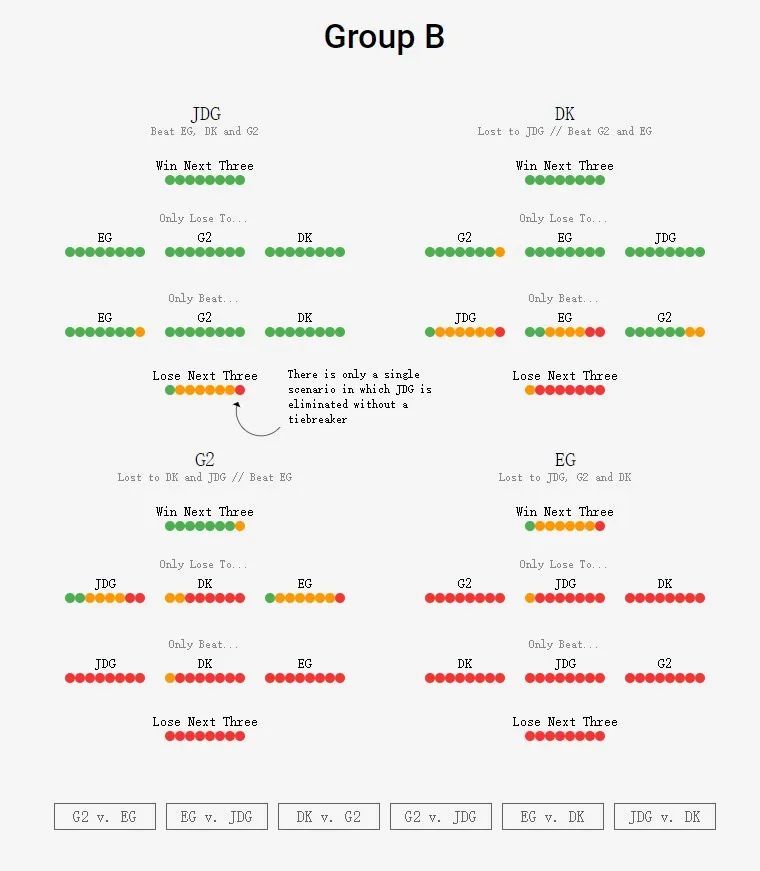 好汉同盟S12举世总决赛,小组赛第二轮角逐于10月14日正式开赛。EDG作为第二轮起首亮相的LPL队伍,他们在14日的角逐中,他们复刻了第一轮的战绩,赢FNC和C9,不敌T1,以2-1的战绩,不算太难的以小组第二的身份,挺进八强! 在10月15日,LPL一号种子JDG将再战B组第二轮。在之前的分析文章中,囧王者曾经说过由于第一轮的三连胜,已经让JDG在第二轮中,立于不败之地。他们只必要在DK,G2和EG三支队伍中,恣意取胜一场即可确保自己出线的名额。 鉴于A组的EDG是以第二名的身份晋级,那么根据赛制,在八强战中,各组的第一名战队,将会利用抽签的方式,抽取对阵其他组的第二名队伍。也就是说,对于JDG而言,拥有较高的选择上风。明确的玩家,大概是都懂的。 那么在第二轮中,JDG能拿下几场胜利呢?咱们一起聊聊一聊吧!老例子,以下笔墨为囧王者自我想法,欢迎讨论,推辞无来由乱喷! JDG第二轮,是全胜争第一,照旧战术性拿第二?之前囧王者在分析TES的晋级大概性的时间,曾经提过一嘴JDG的晋级形势。囧王者个人以为,JDG作为LPL的一号种子,他们在第一轮斩获三连胜后,团结B组四支队伍在第一轮的体现和胜败关系来看,JDG晋级八强根本无忧。他们必要思量的是,是否需为了拿第一名出线,而在末了一轮中和DK死磕。懂的都懂! EG对阵JDG。JDG作为第一赛区的一号种子,如果输给了LCS这种养老赛区的话,他们所要面对的舆论压力,恐怕将不可思议。以是,囧王者以为对JDG必胜EG。 G2对阵JDG。坦白地讲,这一场LPL对阵LEC的角逐,囧王者也以为JDG会轻松得胜。在之前的文章中,囧王者也说到过了,失去了Perkz之后的G2,不但失去了整活儿本领,也失去了和LPL一争高下的本领。只管他们在第一轮中,和JDG打得非常剧烈,但这并不代表其在第二轮中,也偶尔机和JDG打得有来有往。究竟帽皇,独木难支。 最关键的是JDG对阵DK的角逐,要么革新LPL小组赛最好结果,要么选择不内战在默认JDG能击败EG和G2时,他们对阵DK的角逐,就生存着两种截然差异的选择。要么革新LPL小组赛最好结果,要么选择不内战。 坦白地讲,囧王者以为这一场角逐,将是决定谁是B组第一的决定战。对于JDG和DK而言,如果他们能不出不测的击败EG和G2的话,那么这末了一把角逐,就是关系着LCK和LPL两大赛区,是否必要内战的第一次选择了。 而且这第二轮对阵DK的角逐,对于JDG而言,还真是个选择题:如果他们能打赢DK的话,将以6-0的小组赛战绩,革新LPL赛区在世界赛小组赛中最佳战绩;如果JDG输给了DK,而且在加赛中也输给了DK的话,那么他们将以小组第二的身份晋级,从而在肯定程度上克制和EDG的内战。 而且EDG已经第二了,如果JDG也是第二的话,背面的RNG就更有选择性了。而且反正RNG也已经是击败全员中招,要打线上赛了。他们在C组的第二轮中的状态,也确实欠好把握。TES?滔搏就不谈了,他们能晋级就谢天谢地了。如果LPL全员第二晋级的话,那么八进四角逐中,LPL和LCK将捉对厮杀,节目结果直接拉满! 那么末了标题来了,各位峡谷召唤师们,你们以为JDG在第二轮角逐中,会怎样选择呢?是选择革新LPL记载,照旧选择克制内战?一起来聊一聊吧! |