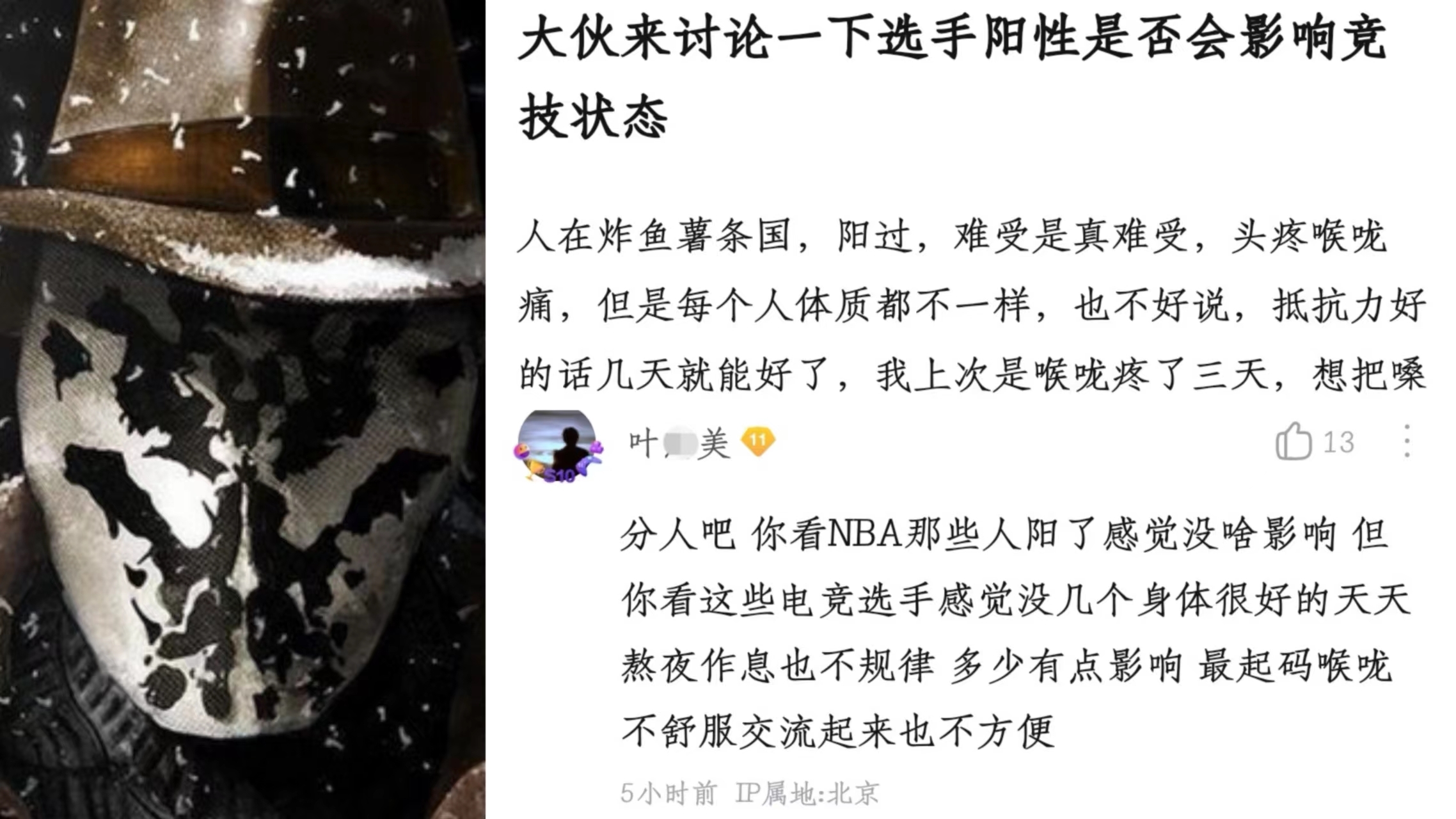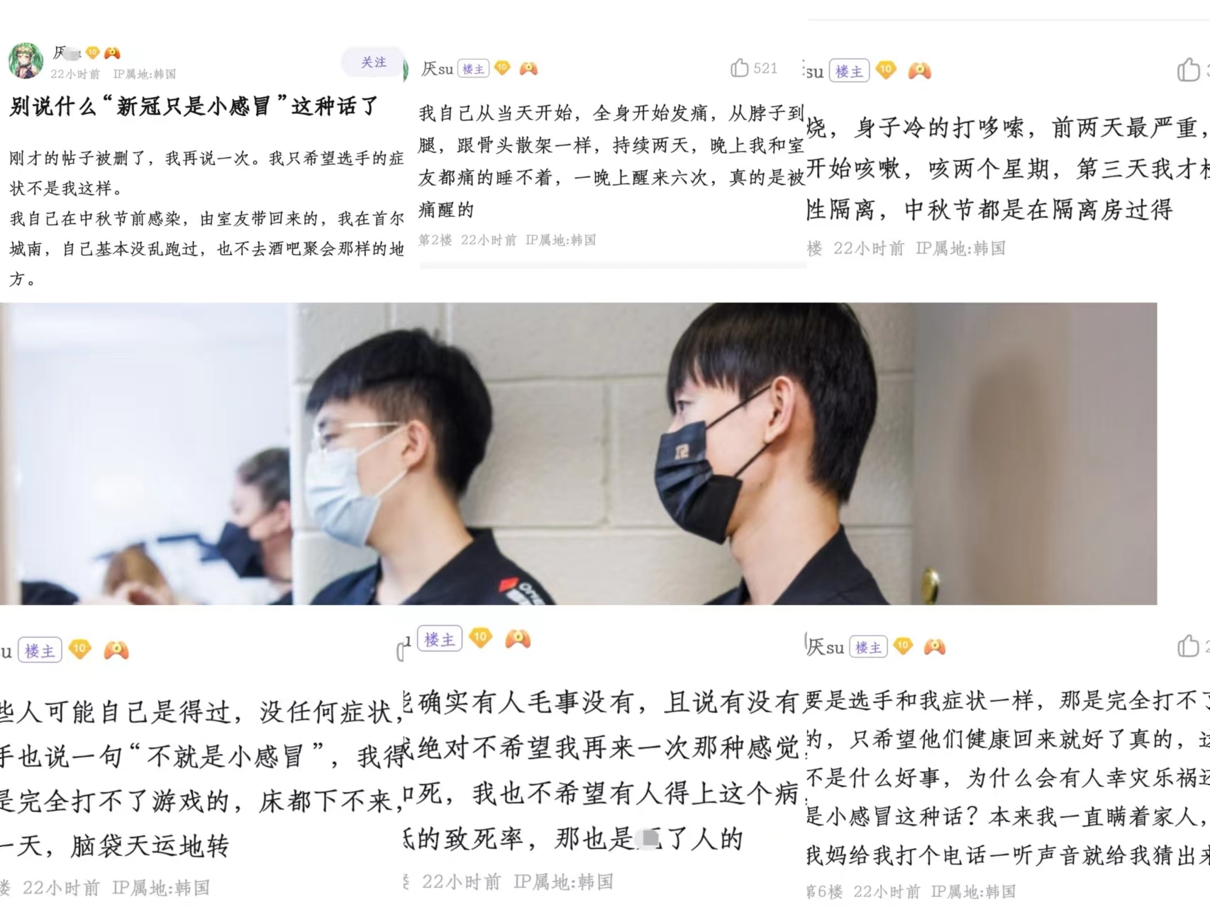 S12各小组如今感染新冠情况: A组:EDG中单Scout B组:DK打野Canyou、AD Deokdam C组:无 D组:GEN中单Chovy、监视Score、锻练Museong,RNG除选手Gala与主锻练朱开外全部感染、CFO三位锻练、上单Rest、打野Gemini、中单Mission、辅助Koala新冠确诊。 赛前有网友戏称“来美国两周不阳才怪”一语成谶。虽早有预料,但认真正到暂时,还是有些张皇。部门网友以为本次天下赛夺不夺冠无所谓,只要可以大概安全返来足以,但也有部门网友以为新冠也就那么回事,不消太在意。于是一个新的话题出如今了网友的讨论中:选手阳性会不会影响竞技状态? 新冠对人体的影响,想必也不消多说了,从19年到如今,不管是感染率还是致死率让足以让人提心吊胆。但总归有些特别群体,反抗力比力强,没几天就会主动转阴,但这大部门都属于体质本身就比力强的那类人。而电子竞技虽说带有“竞技”两个字,但更多的是脑力比赛,动的比力少,跟体质根本就扯不上关系,乃至大部门职业选手的体质还不如平凡人。新冠毕竟有多可骇?由于我们的疫情防控在环球做的最好,以是很多人对新冠的可骇没有太深的概念,下面是一位玩家陈诉的切身履历! 该网友说了很多,但核心就是“万万别把新冠当成小感冒”,它让人很难熬,非常的难熬,着实另有一个离我们很近的例子,那就是LCK夏日赛时感染的showmark选手,其时导播给的画面,一咳一咳得打比赛,不时还要捂住嘴,真的让人看得很心疼,这估计就是如今选手们端庄历的事变吧! 那么你还以为阳性后不会影响选手竞技状态吗? |