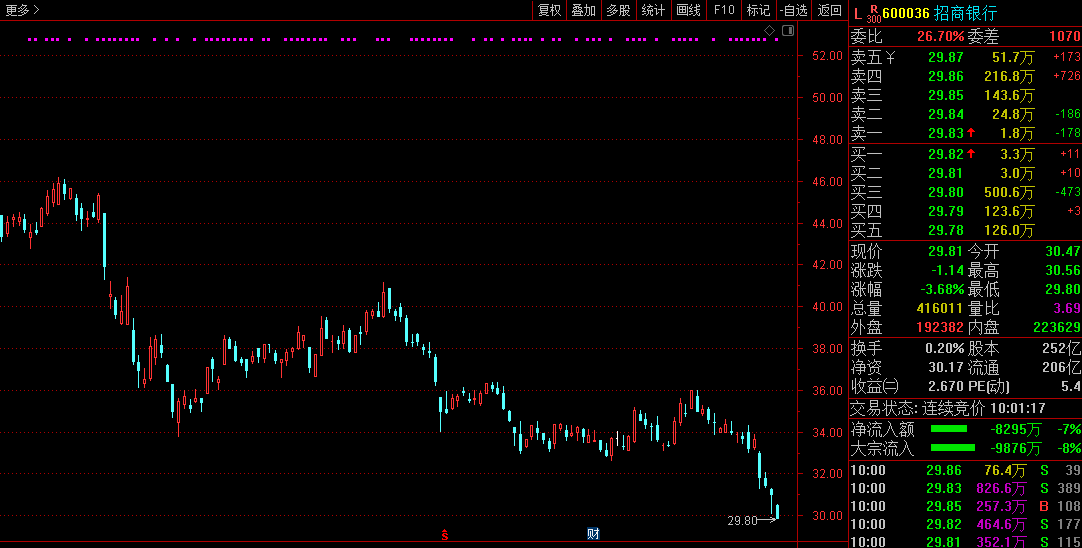 10月13日早盘,银行股团体下跌。此中招商银行跌幅最大,制止发稿报29.81元,跌3.68%,再度革新本轮调解新低。 央行最新公布的数据表现,2022年9月末社会融资规模存量为340.65万亿元,同比增长10.6%,增速较上月进步0.1个百分点。当月增量为3.53万亿元,比上年同期多6274亿元,预期仅2.8万亿元。 光大银行金融市场部宏观研究员周茂华表现,国内经济稳步规复,预计三季度银行资产质量保持妥当。 华西证券银行首席分析师刘志平表现,9月信贷社融增量超预期、投放布局优化,反映企业的融资需求和筹谋动能都有边际改善。后续陪伴四序度稳增长政策的加速落地显效,以及第三批专项债发行,宽名誉历程将保持妥当。如今板块团体静态估值降仅0.53倍PB水平,具备较高安全边际,市场风险偏好低落时也提供肯定防御属性,而融资布局和经济预期的改善有助于进一步打开银行估值修复空间。 华泰证券分析师沈娟表现, 9月社融总量超预期,贷款布局优化,预计在稳增长、稳地产政策组合拳下,信贷需求有望一连修复,为银行业绩增长奠定底子。9月尾羁系部门通过两类定向降息政策刺激个人刚性住房需求,团结换房免税政策开释改善性住房需求,促进房地产市场安稳康健发展,有望刺激按揭贷款投放,改善涉房贷款质量,缓释银行匿伏风险,后续需一连关注地产链厘革对于银行的边际影响。当前银行估值、仓位均处于汗青低位,较多反映市场悲观预期。发起关注优质中小银行。 |