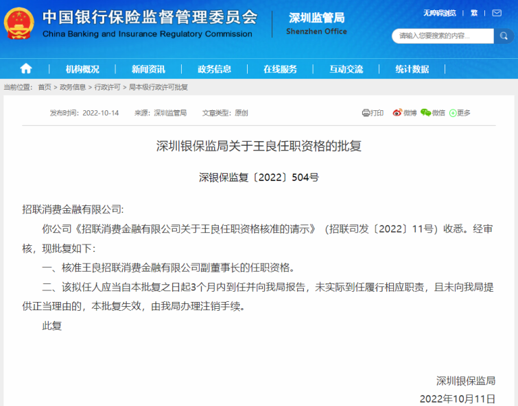 10月14日,深圳银保监局发布关于招联消耗金融有限公司(下称:招联消耗金融)关于王良任职资格批准的叨教,批准王良招联消耗金融副董事长的任职资格。 2022年4月,招商银行行长,招联消耗金融副董事长、董事田惠宇因涉嫌严肃违纪违法,被中央纪委国家监委规律检察和监察观察。在田惠宇被查后,王良代为主持行长工作。 随后5月12日,招联消耗金融公告称,招联消耗金融金融按照管理规定,推行相干董事的内部夺职流程。根据股东会决定,田惠宇不再继承招联金融董事、副董事长。为完成补选工作,招商银行于5月19日发布公告,王良被正式任命为招商银行第四任行长。 据公开资料表现,王良自1995年就参加招商银行,至今已经27年。2012年,王良任职北京分行行长兼任总行行长助理,2015年任职招商银行副行长,后续兼任招行董秘和招行财政负责人等职。别的,王良还兼任中国付出整理协会副会长、中国银保监会数据管理高层引导和谐委员会委员、中国银行业协会中央业务专业委员会第四届主任、中国金意会计学会第六届常务理事。 招联消耗金融建立于2015年3月,注册资源100亿元,中国联通和招商银行作为其股东各占50%股份。克制如今为注册资源最高的消耗金融公司。据招联消耗金融2022半年报表现,营收方面,克制2022年6月尾,招联消耗金融实现业务收入84.16亿元,同比增长13.89%;实现净利润19.37 亿元,同比增长25.60%。 10月13日,招商银行A股股价大跌3.42%,市值缩至7538.21亿元,市净率亦迎来2016年2月后的再度“破净”。当晚,招行发公告声明,再一次夸大了发展理念和战略方向。该行公告称,面对当前策划环境,将继承保持战略稳固、公司管理机制稳固、策划管理稳固、人才队伍稳固。如今,招商银行各项策划管理运行正常,经业务绩稳固。【WEMONEY研究室 罗迹/编辑】 |