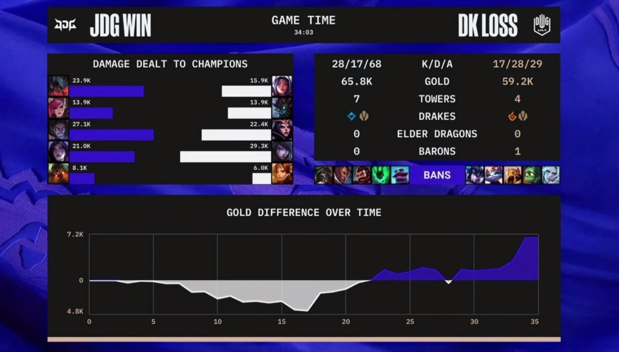 豪杰同盟S12火热举行中,腾讯消息将为您带来一手赛事资讯,为您出现全方位的电竞盛宴。 各位LPL的观众和豪杰同盟召唤师各人好,这里是天鄙俚戏汇。 在本日举行的S12小组赛B组第二轮的比赛中,JDG是拿到了3-1的结果,在末了一场输给DK之后,又与DK举行了一场加赛,在加赛中完成逆转击败对手顺遂以小组第一的身份晋级八强。 这场比赛有很多值得说的东西,此中Homme的一个心情和Yagao的赛后采访是火了。 JDG逆转团战,Homme愁容满面 本场比赛JDG赢的还是比力艰巨的,紧张是前期Canyon通过一波Gank下路直接打崩了JDG的前期节奏,利用一波强行反野率先到6,让DK在越塔中占据了更大的上风,在那之后两边下路的差距就非常大了,经济落伍一度到达五千多。 观众当时都以为这场也要输了,但没想到JDG在一连输团的环境下,在小龙位置捉住时机了,当时JDG是先捉住Canyon一顿揍,DK支援赶到后集火剑魔,369稍微摆脱,正面Showmaker妖姬击杀了卡莎。 这个时间JDG的中野进场立下大功,Yagao直接冲进去把厄斐琉斯打残了,Kanavi锁头击杀厄斐琉斯,DK的这个阵容,只要厄斐琉斯死了,团战就没法打了。 这波团战回放的过程中,现场是给到了JDG苏息室的画面,可以看到JDG场下的几个人都是愁容满面,Homme的心情非常难熬,JDG打赢团战之后,心情稍微好了一些也开始鼓掌了,可见JDG的锻练组压力也是很大的,Homme非常担心JDG会输掉。 Yagao是隐蔽功臣,赛后采访亮了 早在之前的JDG视频中,就能看得出来Homme非常渴望在这次天下赛中夺冠,作为LPL公认的精良锻练,Homme这么多年不停在积极带队,但始终没有打出过真恰好的结果,本年带如许一支冠队伍伍,肯定是会努力以赴,夺取走到末了。 除了Homme之外,中单选手Yagao在比赛竣过后的采访也是引起了观众的热议,在继承余霜采访的过程中,被问到有没有和其他赛区的选手互换大概交朋侪之类的,Yagao直接答复说也没有熟悉什么新的朋侪把,自己没什么文化,想密切的还是很多的,天下顶级的中单都想要熟悉一下。 别的Yagao在采访尚有一个标题就是手不停抖,很多观众都挖苦说Yagao被余霜压抑住了。 比赛内容方面,实在Yagao是JDG战队得胜的隐蔽功臣,实在他的立功体现相比于369也不遑多让,只不外369打出的名局面太多了,如果细致复盘的话,就能发现Yagao的塞拉斯几波团战关键的先手也是JDG能取胜的关键。 关于JDG综合本事的个人看法 个人以为JDG战队的团战本事,在本年的S12天下赛16支队伍内里应该是第一档乃至说独一档的水平,JDG可否夺冠,关键就是看JDG可否打好前中期,JDG只要前期能稳住,就能通过团战赢下比赛。 JDG后续比赛大概的一个思绪就是让下路稳住对线,不寻求对线上风,稳固发育即可,Hope和Missing的团战Carry本事都是顶级的。 前中期重点发挥上野位置的Carry本事,以上野辐射全队大概说以上野直接打开局面,打好前中期,如果能做到这一点就可以夺冠。 至于反面的八强抽签,个人以为JDG不管抽到谁,都可以大概率得胜晋级四强,固然最好不要遇到EDG,大概大概在小组第二的TES或RNG。 从本日的比赛来看,JDG比力怕的队伍是那种野区能压抑Kanavi的,同时对线给到他们压力的队伍,此中压抑Kanavi这一点是最紧张的,如果单纯是对线本事强,还不敷以能在前期打开太大的口子。 |