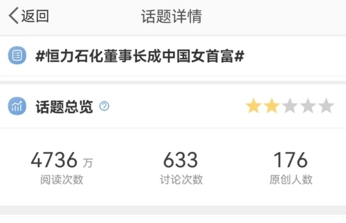 (恒力石化股份有限公司董事长、总司理范红卫;图源 恒力团体官网) 在履历了近一个月的身价变更后,恒力石化(600346.SH)董事长范红卫仍然稳坐“中国女首富”的宝座。 在9月份,2022年胡润举世富豪榜(下称“榜单”)公布后,“中国女首富”的标签在碧桂园杨惠妍家属和恒力石化董事长范红卫之间切换。至今已往一个月的时间,市场消息表现,据彭博亿万富豪榜及时数据,10月13日,恒力石化董事长范红卫以643亿元(89.5亿美元)身家成为“中国女首富”。 提起恒力石化,行业传播着一句“从一滴油到一匹布”。这句话是恒力团体发展进程的缩影,也是恒力团体副董事长、恒力石化董事长范红卫多次公开先容恒力团体时常说的话。 作为石化范畴的龙头公司之一,“恒力石化董事长成中国女首富”一事引起了各界关注,《中原时报》记者也就此与恒力石化取得了接洽,恒力石化方面针对行业关注标题向记者做出了回应。 稳居“中国女首富” 关注恒力石化的,提起范红卫大概并不陌生。 公开资料表现,范红卫1967年出生,大专学历,2016年3月起,任恒力石化股份有限公司董事长、总司理。 《中原时报》记者整合恒力石化公开资料获悉,1994年5月至2001年12月,范红卫担当吴江化纤织造厂有限公司总司理。2002年1月起,范红卫的名字频仍与董事关联,先是担当起了恒力团体有限公司董事,而后在同年11月至2011年8月担当了江苏恒力化纤有限公司董事。 2011年8月至2016年3月,范红卫身份再升级,担当江苏恒力化纤股份有限公司副董事长、总司理。再厥后的2016年3月至今,范红卫担当江苏恒力化纤股份有限公司董事长,以及恒力石化股份有限公司的董事长、总司理。 发展至今,2002年建立的恒力石化,主业务务已经涵盖至石油炼化、石化、芳烃、烯烃、PTA、乙二醇、民用丝、工业丝、工程塑料、聚酯薄膜、可降解塑料等高端化工质料与各类化工新质料应用等生产斲丧需求的广泛范畴。 而如今的范红卫,根据彭博亿万富豪榜及时数据表现,也成为了“中国女首富”。 不外,值得关注的是,此前在9月份范红卫成为“中国女首富”时,市场有诸多争议声。《中原时报》记者梳剃头现,固然范红卫并不是财产榜上的稀客,但2022年成为“中国女首富”的消息还是引发了业表里人士对于范红卫本人的讨论。在九月初微博相干话题下,有关“范红卫搭乘直升机上放工”“范红卫是否为白手发迹”等争议不绝。 (恒力石化相干话题微博热度环境;截自 微博平台) 针对市场的讨论内容,为相识恒力石化对此的见解,《中原时报》记者也与恒力石化取得了接洽,恒力石化方面向《中原时报》记者表现:“恒力是一家‘老黄牛’型的公司,相比力个人,我们更关注公司在财产中的定位,以及给财产链、相助方带来的代价。” 恒力石化方面向记者说道:“我们衷心盼望,公众与市场对恒力团体的印象更多的是‘从一滴油到一匹布’,恒力团体从三亩三分地的小纺织厂,到九大生产基地布局的国际型企业,一起走来,甘辛毕至,办好一流企业是我们积极贯彻落实国家‘实业强国’的战略方针,服务国家先辈制造与‘衣食住行’斲丧市场的‘老黄牛’,是我们盼望留给市场的标签。” 恒力石化方面向《中原时报》记者先容,作为一家面向B端的企业,公司恒久专注于技能突破与办理行业痛点。在行业发展进程中,“卡脖子”和“短缺性”化工新质料需求出现指数增长,但仍存在巨大缺口。恒力石化颠末多年的发展,乐成买通上游的“卡脖子”业务环节,突破原质料供给瓶颈。 财产、负债齐增引热议 究竟上,自“中国女首富”易主的消息出现以来,除了引发了各界对于范红卫本人的料想外,也引起了各人对于恒力石化业绩报的关注。由于从2022年上半年的业绩环境来看,恒力石化的资产负债率到达了74.96%。 按照业绩报表现,2022年上半年,固然恒力石化业务收入为1191.55亿元,同比增长13.94%;归属于上市公司股东的净利润80.26亿元。但同期的包管总额为1663.77亿元,包管总额占公司净资产比例到达281.63%,此中,短期乞贷到达682.55亿元,钱币资金则仅表现为255.78亿元。 偏高的负债环境和无法覆盖负债的钱币资金,使得各界在一时间内非常好奇恒力石化的真实谋划环境。 为此,恒力石化方面也向《中原时报》记者表明道,业绩的小幅震荡,是由于当前制约经济增长的因素仍然较多,部分经济指标转弱。原油、天然气等原质料代价连续高位震荡,房地产、纺织、建材等鄙俚行业增长放缓,资源高企叠加需求不敷,企业生产谋划压力显着增大,经济效益出现回落,行业团体市场颠簸性和下行压力加大。“财政体现方面看,自2020年底至本年上半年,公司的谋划发展呈连续上升趋势,在手的钱币资金规模分别达156.7亿元、159.9亿元、255.8亿元,连续增长。”恒力石化方面向记者表现,如今公司运作妥当精良。 不外,恒力石化方面在复兴《中原时报》记者采访时也坦言,资源市场方面,本年国表里经济形势复杂严肃,A股市场估值非理性下行阶段,基于恒久看好公司发展,为维护公司和股东优点,恒力石化在陈诉期内实行完成了第三期、第四期股份回购操持,回购资金总额共计达20亿元。 “连续推行对全体股东尤其是中小股东的市场责任,用现实办法维护公司市值公道稳固与全体股东核心优点,也充实表明上市公司和管理层刚强、恒久看好公司的谋划业绩、战略发展与