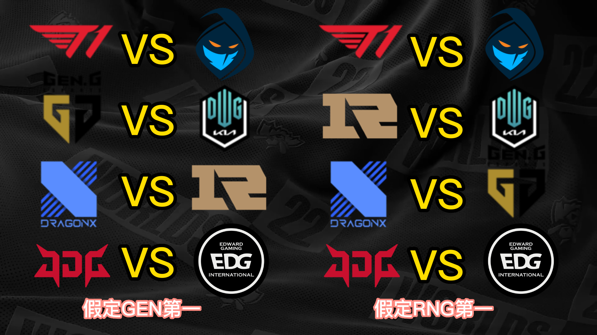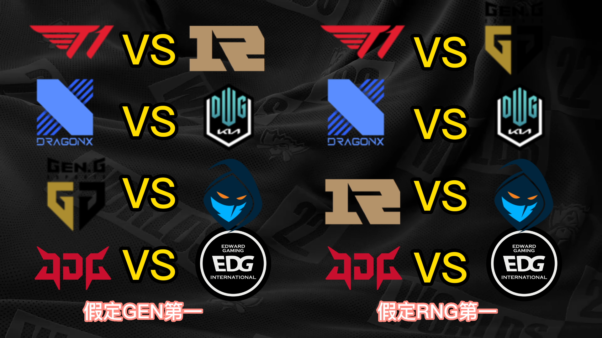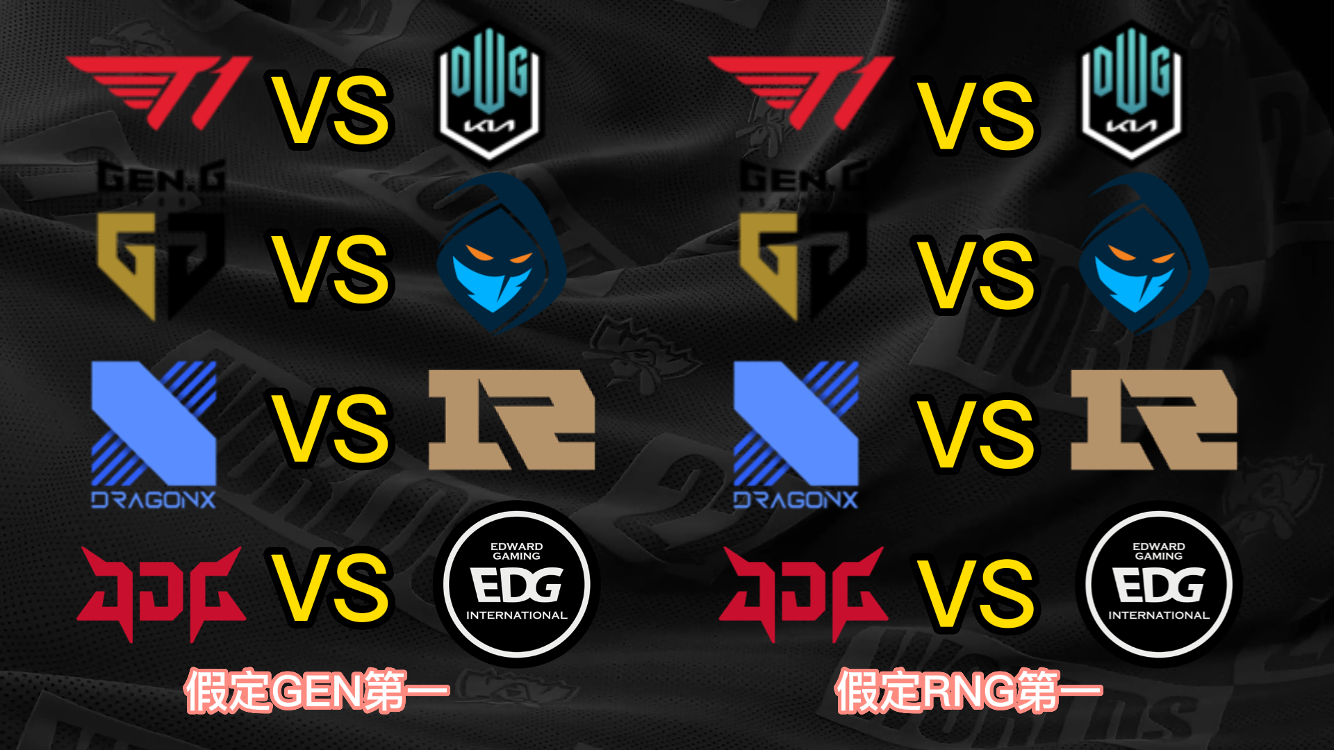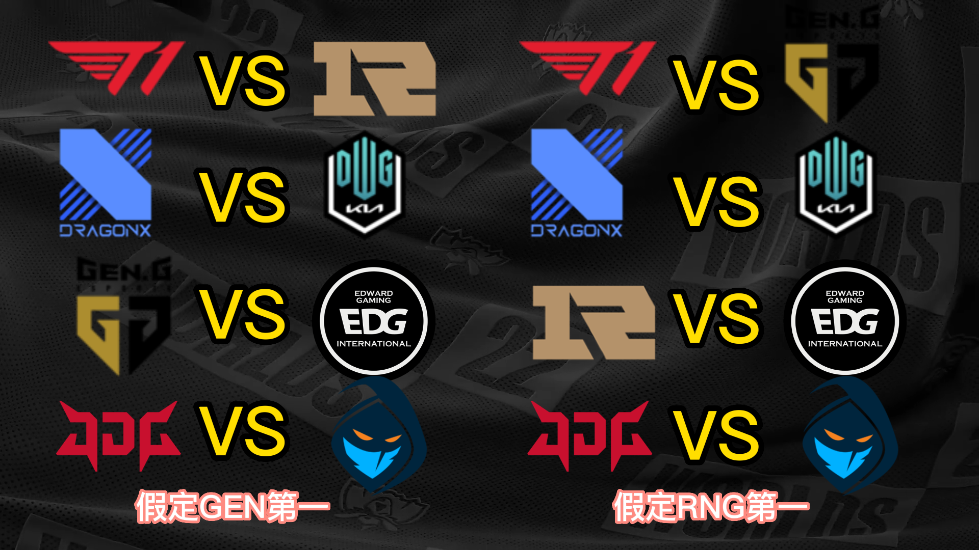 S12小组赛已经只剩末了一个小组的出线战役夺,而八强已经六个席位确定,分别是小组第一晋级的T1、JDG和DRX,尚有小组第二晋级的EDG、DK和RGE,末了两个席位将由GEN、RNG、100T和CFO四队夺取。 不外思量到D组的力气差距比力大,因此99%可以确定就是GEN和RNG晋级,只不外牵挂在于谁是小组第一。固然RNG在首轮比武击败了GEN,但是本着先质疑再质疑的精力,我们还是猜疑RNG拿不到小组第一,以是接下来也将分GEN第一和RNG第一两种情况举行八强对决的抽签分析。 先分析八强抽签的两个根本规则,第一个规则是小组第一打另一个小组的第二,第二个规则是同小组的战队在决赛前都不会相遇,也就是肯定分在差别半区。 这两个规则导致抽签效果在不思量战队位置的情况下一共只有12种大概: (以B组第一JDG为例,和他同半区的小组第一有3种大概,他八强对手的小组第二只有2种大概;此时另一个半区只剩两个小组第一和两个小组第二,比武形势只有两种大概,以是效果是3*2*2=12种) 算上GEN和RNG名次不确定,那么也就是24种大概。以下是全部的抽签大概效果。 你们以为哪种抽签效果是你最想看到的呢? |