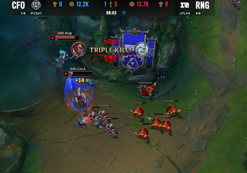 北京时间10月17号早上七点,RNG迎来小组赛第二轮的第二个对手:CFO。CFO本日小组赛开赛,出师倒霉,遭遇两连败。他们和100T一样,已经确定无缘八强,这场角逐可以说是他们为了赛区的荣誉而战。RNG本日拿到开门红,克服了100T,战绩来到4-0,已经确定晋级八强。 CFO蓝色方:剑魔 破败王 沙皇 德莱文 阿木木 RNG赤色方:武器 蔚 狐狸 卢锡安 娜美 02:32 WEI被算计了,魔沼娃还不停攻击蔚,前期的蔚根本扛不住双重伤害,娜美赶来支援被包夹的德莱文拿到一血。这个一血节奏有点大,给到了须要刷被动赏金的德莱文。 04:28 前期节奏打乱的蔚,乐成反野,缘故起因是呼吸哥拿到了单杀,帮蔚环节上半区压力。 08:03 RNG和CFO,2打3情况下,卢锡安丝血拿到三杀。GALA卢锡安要腾飞了。 12:54蔚的锁头,让卢锡安很轻松拿到德莱文人头。 23:28 CFO仅两人,当着RNG面前硬打大龙,随后沙皇被RNG轻松击杀,RNG随后接受大龙。 27:40 RNG下路推进,蔚扛塔不慎被秒。 31:20 CFO无力防守,被RNG一波竣事角逐。恭喜RNG赢得角逐,现在最新战绩来到5-0。下一场和GEN的角逐,假如能克服GEN,将不消加赛,确定锁定D组小组第一。以上就是本篇好汉同盟文章的全部内容,感谢阅读。 |