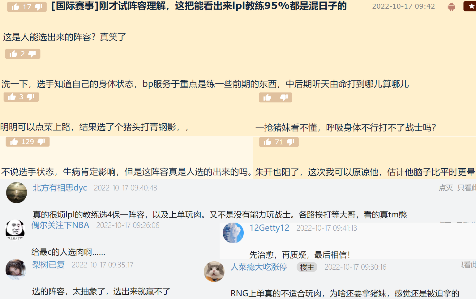 豪杰同盟RNG队员全体确诊新冠,朱开锻练透露无止境的发烧,小明也诉苦巨难熬,粉丝非常担心他们的身段状态,这又会不会影响RNG的出线形势? 本日10月17号RNG战队强撑病体继承参战,固然队员看上去心情不太好,但他们照旧顺遂击败100T和CFO。当GALA卢锡安打出12-1战绩闭幕角逐的那一刻,他还在镜头里咳嗽,属实是竭尽尽力了! RNG末了一场小组赛迎战GEN,前期WEI大树冲动入侵野区送一血,复活抓下又被巨魔反蹲,一连送出四个人头,把下路带崩了。幸亏呼吸哥打出积极局,船长在上路单杀鳄鱼找回局面,掩护大树拿先锋连推二塔找回节奏,团战炸桶也很亮眼。 然而RNG呆板人小炮没对线上风就废了一泰半,GEN战队找到机会打大龙顺势闭幕角逐,两边还要再打加赛以确定小组第一的位置。 加赛环节前期RNG经济有点落伍,卢娜对线没打出上风,上单猪妹被连抓两次,中期接团被轮番秀翻,待在塔下都保不住性命。中期GEN战队直接开打大龙,RNG强行接团没打赢,卢锡安伤害不敷,满地残血都没法收割,刹时落伍一万经济。 终极RNG战队打出2-20人头比,面临GEN两连败,确定以小组第二的身份晋级镌汰赛! RNG两连败无缘小组第一,可以看出队员状态确实很差,第一把端赖呼吸哥的船长兜底,但第二把呼吸哥玩肉装猪妹,其他人就站不出来了,全程都被GEN战队吊打,毫无还手之力,唯一输出卢锡安被双锁头杀麻了。 但这也没办法,毕竟RNG队员带病上场连战三把,对他们的身段负担太大了,体力支持不下去,观众也得明白一下,只是朱开锻练的BP遭到网友质疑。 显着上把Doran鳄鱼坑遍全场,呼吸哥船长发挥神勇,这把RNG却让呼吸哥玩猪妹抗压,反而让Doran装起来了。选手抱病状态欠好也就罢了,怎么BP阵容还搞得这么怪?岂非锻练也烧糊涂了吗?也有人推测RNG知道自己状态欠好,想速战速决练阵容拼前期,不管胜败也能早点放工,否则队员真顶不住了。 不管怎么说,RNG四保一阵容看上去不太靠谱,小组赛试试也就罢了,等镌汰赛就别搞这一套了! |