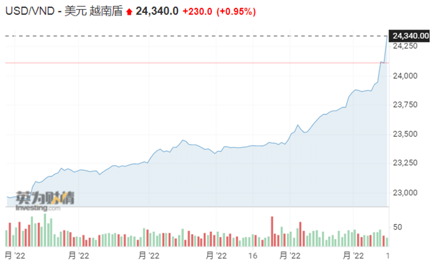 本地时间10月17日,越南公布将越南盾兑美元的交易业务区间从之前的3%扩大至5%。 广泛以为,扩大交易业务区间为是为了维护外汇市场的稳固性。 美联储的激进加息使新兴市场钱币广泛承压,越南盾也无法克制。固然经济对汇率形成肯定支持,但本年以来,越南盾兑美元汇率仍累跌近7%,现在在至少1993年以来最低点附近运行。 别的,越南央举动守卫汇率,紧跟美联储加息步调,并大量抛售美元。 美联储9月中旬加息75基点后,越南央举动稳固本国汇市,在9月26日公布告急加息100基点,为2020年9月疫情发作后以来初次加息。 越南央行在一份声明中表现,将继续以机动的方式管理越南盾,并适当使用其他钱币政策来稳固钱币市场,克制通货膨胀,保持宏观稳固。 别的,越南近几个月以来不绝在抛售美元,停止9月,越南的外储已经从年初的1096亿元降至1014亿美元。 |
