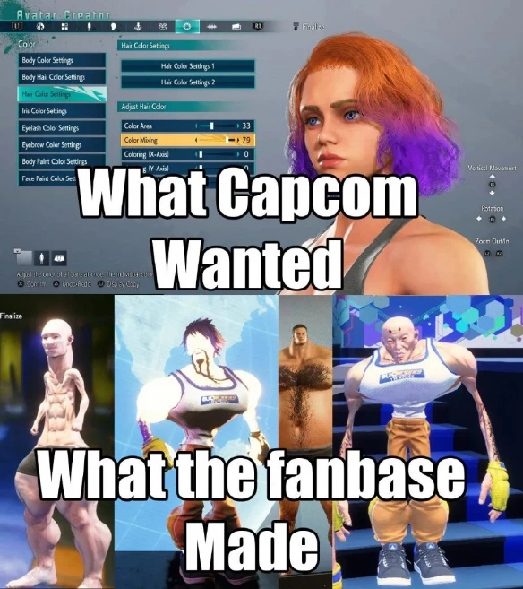 提及来,《街霸6》本年出了不少糗事。 好比说在2月初,我们的老朋侪卡普空公司对外发布了首支《街霸6》的预报片和该游戏的新LOGO。相比历代作品充满活力的字标操持,《陌头霸王6》的LOGO则接纳了一种极简的操持风格。 但很快有玩家扒出,Adobe 旗下图库网站 Adobe Stock 上售卖的一张图片素材与《陌头霸王6》的新LOGO险些一样。 根据该页面的信息体现,该素材的售价80美元(约530元),购买授权后可贸易使用(现在上图素材已经下架,打开页面体现404,看来是被谁直接买断了)。 于是《街霸6》花80美元买logo的消息就在玩家之间不胫而走了。 而在近来几天,《街霸6》开启了封闭测试,但没想到在这次的测试里,也闹出了很高兴的的笑话。 出题目标就是该作中的捏脸环节。跟许多MMO游戏一样,我们可以在《街霸6》中创建个性化十足的脚色,不外《街霸6》里这个脚色创建器的功能非常强大,可以根据个人喜欢对身材各个部位举行具体的“创造”,包罗体重、骨骼布局、头发颜色等等你能想到的险些全部细节。 好比卡普空的宣传片中,官方就捏了一个脸型非常像黑寡妇斯嘉丽·约翰逊的女性脚色出来。 只管玩家圈子里不停流传着“捏脸两小时,游戏五分钟”的打趣话,但不得不说,“捏脸”这一个充满创造性和意见意义的环节是玩家们相称等候的部门。毕竟上,对于许多玩家而言,“捏脸”早已经是游戏玩法的告急构成了。 于是,《街霸6》的第一波查验就来自游戏的捏脸环节。在测试刚开始,许多网友都晒出了自己作品,有不少看着照旧很中规中矩的。 但好景不长,令卡普空没想到的是,加入封测的玩家在很短的时间之后就偏离了诚实的既定轨道,把“捏脸”玩出了花来。于是,我们能看到玩家们创建的脚色是如许的—— 如许让人忍俊不禁的造型固然归功于玩家们光怪陆离的脑洞,但根本缘故原由大概是来自卡普空对于“高自由度”的误解,好像让他们在设定脚色参数时,忘记思量正常的人体构造了。 而有了第一个“奇行种”以后,封测玩家的创作才气很快得到了开释。于是我们在交际平台上,能看到各种意义上“鬼斧神工”的作品。在这些晒出来的截图里,游戏脚色大概有着非常粗壮的下肢,但上半身却非常瘦弱;也大概拥有着专业健身运动员一样的胸肌和双臂,但腰腹、大腿却微小的可怜。 四肢比例没题目,在这里也不愿定是“正凡人”。就像下面这位玩家大概是想淘汰脚色的受攻击面积,于是安上了一个还没拳头大的脑壳。 雷同如许花里胡哨的脚色,在对战大厅中实在能见到许多。而且卡普空在脚色装饰、发型上好像也没有界定得太清晰,以至于画面中出现穿裙子的猛男、留双马尾的络腮胡大汉,也就不那么希奇了。 固然,比起这些天马行空的创作,平常玩家照旧会选择在开游戏的第一个档时,做一个传统的诚实人,根据自己的个人审美,和游戏自身的风格,操持一张心旷神怡又符合人设的脸。 不外可笑的是,在《街霸6》的封测中,场景中正常比例的脚色反倒更像是不正常的那一个。 实在从这些操持上,我们也能后感受到《街霸6》想要在肯定程度丰富玩法、为人物脚色添加多样性,以便让玩家能为游戏投入更多时间。不外题目是在这方面,卡普空确实属实没有太多履历,捏人体系的各方面数值也都没有设定上限,效果就导致了各种BUG一样平常的脚色被创建了出来,着实是让人忍俊不禁。 但说实话,作为一款传统、乃至是“老旧”的格斗游戏系列,《街霸6》这次做出了许多改变。以是只管捏脸环节笑料百出,不禁让人质疑卡普空到底行不可,但这一代《街霸6》的其他方面“奇怪”操持,也照旧值得拉出来说说的。 在当我们设定好脚色后,就会被主持人带到“游戏大厅”里,而《陌头霸王6》中的全部变乱都是在这个大厅中发生的。游戏大厅里的各个地区对应着差异的玩法和模式,雷同MMO游戏中的主城。 这里有对战地区、游戏中心地区、大银幕地区、道具市肆、运动报名柜台等等。 说着实的,游戏大厅是一个相称有亮点的操持。我们可以看到,整个大厅被塑造成一个一个宽敞豪华且充满科技感的街机厅,作为玩家的我们只要找到一个空置机台坐下来便可进入游戏;对战地区可以用来对战和练习、大银幕地区则与赛事有关等等 。 在指定地区的机台上,我们乃至还可以重温卡普空其他经典街机游戏,含糊间让我们回到童年混迹于街机厅那段韶光。 说着实的,作为一个从小被老哥带着打街机的“网瘾少年”,心底照旧对街机厅有一些希奇的感情因素在内里,在《回不来的街机期间和“断臂求生”的世嘉》一文里,我也和各人分享过小时间在街机厅的糗事。 而在小时间的我当年的畅想里,代表着“高科技和新潮”的街机厅在将来想必会变得更加科幻和风趣,然而现实是不止街机厅消散的悄无声气,就连网吧如许的后起之秀也在比年来渐渐一落千丈。着实是让人感叹。 言归正传,《街霸6》里这个街机大厅属实有一些我心目中将来街机的样子,科幻和情怀在游戏里很好地被分身,这让我这个“街机遗老”不由得点个赞。 末了再来说说《陌头霸王6》的战斗体系。 《街霸6》的战斗体系相称复杂,内容许多,除了动力打击体系、动力拨挡体系、以及我们认识的饿超必杀技体系外,尚有“斗气槽”的操持与“当代使用”的浅易指令模式。 本作带来了一套新颖机动的斗气体系,相对于