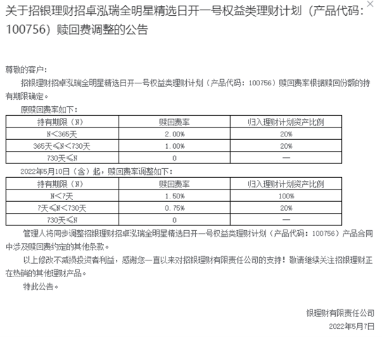 编者按: 一些银行理财产物净值大幅亏损却向投资者收取高昂的管理费,以致还要在赎回时再加收不菲的赎回费用。羁系部分相干政策敦促银行及其理财子公司掩护投资者权益,低沉不公道收费。 本期案例为招商银行理财子公司——招银理财旗下产物“泓瑞全明星日开一号”。招银理财值得研究的产物不止这一只,后续将继承解读。 招银理财旗下的的招卓泓瑞全明星日开一号权益类(以下简称“泓瑞全明星日开一号”)理财产物,其发售日期为2021年6月23日,该理财产物是一只公募开放式净值型产物,管理人为招银理财有限责任公司。 停止2022年10月12日,泓瑞全明星日开一号的单元净值为0.8093元,明显低于1元。 汗青数据表现,2022年以来,该产物净值降落显着。停止如今,除1月4日该产物净值未破净为1.0016元以外,均处于破净状态,期间净值一度跌至0.7597元。 值得留意的是,本年以来该理财产物一连亏损,但管理费率却高达1.5%,远超同范例产物,云云高的管理费率又是否公道呢? 管理费率1.5%,远超同业 泓瑞全明星日开一号产物阐明书表现,管理人收取理财操持固定投资管理费,固定投资管理费率为1.50%/年,每个估值日计提,按月收取。 停止如今,招银理财共有四只处于存续期内的权益类理财产物,其管理费率均为1.5%。与其他银行理财子公司所发售的权益类理财产物相比,其管理费用率显着偏高。 数据表现,除招银理财的四款权益类理财产物外,别的权益类理财产物的管理费率广泛低于1%。此中,中原理财的三款权益类理财产物的管理费率均低于0.5%。 托管费率方面,招银理财的托管费率为0.08%每年,在如今权益类理财产物中最高,且招银理财的权益类产物托管人为招商银行。除招银理财外,多数权益类理财产物的托管费率为0.05%,部分理财产物的托管费率低于0.02%以致没有托管费率,比方青银理财璀璨人天生就系列2022年204期(权益类)以及宁银理财宁耀权益类优质发展FOF战略开放式2号。 除此之外,在最初的产物阐明书中,招银理财泓瑞全明星日开一号的赎回费率也相对偏高,持有限期小于365天赎回费率高达2%,365天(含)以上730天以内的赎回费率为1%,730天(含)以上的赎回费率为0。2022年5月招银理财发布公告,对该产物的赎回费率举行了调解,调解后持有限期小于7天,赎回费率为1.5%;7天(含)以上730天以内的赎回费率为0.75%,730天(含)以上的赎回费率为0。 2022年以来年化收益率-24.79%,超5成资产投向公募基金 产物阐明书表现,该理财产物属于高风险PR5级,发行规模下限为5000万份,上限为25亿份。由于产物为净值型产物,业绩表现将随市场颠簸,具有不确定性。本产物资金80%以上投资于权益资产;别的资金告急投资于固定收益资产。 半年报表现,停止6月末,泓瑞全明星日开一号2022上半年的年化收益率为-18.632%,已往一年的年收益率为-8.8%,而自理财产物条约收效起至6月末,年化收益为-8.49%。停止10月12日,该理财产物2022年以来的年化收益为-24.79%。 从理财产物的资产组合来看,停止6月末,该理财产物中现金及银行存款资产余额为1.73亿元,占产物总资产的10.78%;公募基金资产余额为9.23亿元,占产物总资产的57.61%;资产管理产物资产余额为5.07亿元,占产物总资产的31.61% 告急投资产物年内下跌显着 半年报表现,2022上半年泓瑞全明星日开一号的告急相助机构有景顺长城基金管理有限公司、浦银安盛基金管理有限公司、广发基金管理有限公司、易方达基金管理有限公司、交银施罗德基金管理有限公司、华宝基金管理有限公司、海富通基金管理有限公司和国海富兰克林基金管理有限公司。 停止2022年6月末,泓瑞全明星日开一号期末投资组合前十项资产中,海富通改革驱动、国海富兰克林基金-国富中小盘以及浦银安盛新经济结构机动设置肴杂型证券投资基金在理财产物净资产中的占比力大,分别为9.45%、5.79%和4.88%。 较2021年末相比,以上三项在产物净资产中的占比均有提拔,净资产占比分别增长0.83个百分点、0.66个百分点及0.12个百分点。 然而告急投资资产在2022年的表象并不乐观,也是导致理财产物出现亏损的告急缘故起因。 以净资产占比排名前三项的投资标的为例。数据表现,年初至2022年10月13日,海富通改革驱动基金下跌16.58%,年化收益率为-20.85%。国海富兰克林基金-国富中小盘基金下跌14.75%,年化收益率为-18.60%。浦银安盛新经济结构A肴杂型基金跌幅达31.47%,年化收益率为-38.57%。 免责声明:本文仅供信息分享,不构成对任何人的任何投资发起。 版权声明:本作品版权归面包财经全部,未经授权不得转载、摘编或利用别的方式利用本作品。 |