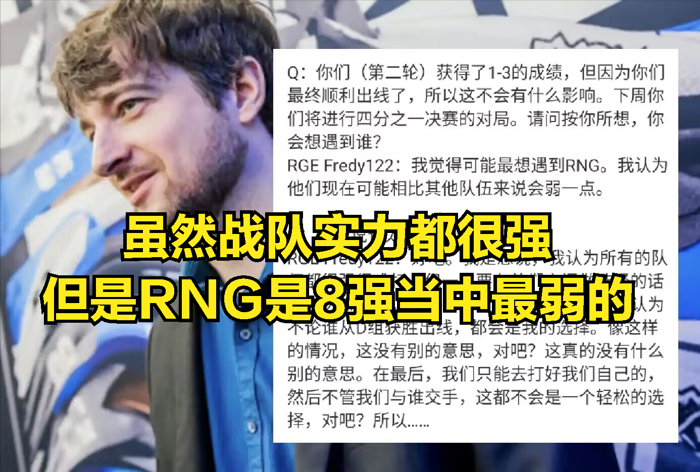媒介本次天下赛对于西欧赛区观众来讲,可以说是最糟糕的一届了,往年天下赛8强战队当中,都有两个或以上的西欧战队参入此中,但是随着LPL和LCK的不停崛起,西欧赛区的竞争力也是渐渐下滑,前几年还能在8强当中瞥见两支西欧战队,而本年就只剩下RGE一个LEC赛区战队进入8强当中。 以是RGE战队作为LEC赛区的唯一渴望,他们在8强的比赛对手,则是我们LPL的冠军战队JDG,同时也是B组的小组第一,对于我们LPL观众来讲JDG大战RGE,肯定是JDG战队占据上风,但是让我们LPL观众想不到的是,欧洲讲授提及欧洲职业选手也是以为RGE打JDG是最好的抽签效果,JDG就是天下赛最弱的一号种子。 RGE锻练:打RNG着实才好在天下赛的抽取效果出炉之后,RGE战队锻练fredy122也是担当了拳头官方媒体的采访,主持人在采访当中扣问RGE锻练:如果能让RGE战队自主选择8强战队的对手,那么RGE战队会选择哪支战队作为本次天下赛的8强选择呢? 而RGE战队锻练fredy122表现:本次天下赛可以或许晋级8强的战队,气力都好坏常强大的,以是选择哪支战队终极都会是一场苦战,但是如果真的让本身以气力分别的话,那么本身渴望选择RNG战队作为RGE天下赛8强的对手,由于从近来的几场比赛发挥来看,RNG战队的气力和状态无疑是8强战队当中最弱的。(RGE锻练有点暗示RNG战队选手身材比力弱,以是状态不可) 欧洲讲授团体开香槟在确定了RGE战队在8强将会对战JDG战队之后,欧洲的浩繁讲授以及职业选手,也是在直播当中,给观众们分析本次天下赛的抽签效果是否对RGE战队有利,此中LPL观众非常熟知的LEC选手欧城,也是提前在直播当中开香槟庆贺,由于欧城以为JDG战队就是纸老虎。 欧城以为JDG战队固然是LPL的一号种子以及B组的第一,但是相比于其他组的小组赛第一,JDG战队肯定是最好的选择,GEN战队有chovy和尺帝,T1战队有FAKER和小吕布,按照RGE战队的比赛风格来讲,打JDG战队这种中下气力不强的战队,RGE肯定是最轻易得胜的。 除了欧城直播以为JDG不如RGE之外,很多欧洲讲授在直播间当中也是纷纷庆贺,乃至有不少欧洲讲授开始在直播间当中跟观众们解说RGE战队打JDG战队的上风,欧洲讲授以为RGE最强的点在中单和下路,而JDG战队的短板就是下路,以是不少的欧洲讲授以为RGE战队很有大概会依仗下路上风乐成击败JDG战队。 总结当在欧城他们这些人在直播当中半场开香槟的视频传到国内之后,不少的LPL观众也是纷纷挖苦表现本年的8强抽签对于各个赛区的观众来讲都非常地完善,LPL联赛在8强没有出现内战的环境,而欧洲观众庆贺抽到了自以为最弱的小组第一。(你们以为RGE偶然机打赢JDG战队吗?) |