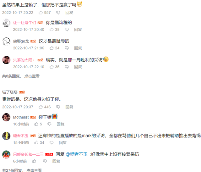 前导:对TES选手来说,这个赛季已经竣事了。拿下春、夏日赛双亚,终极倒在了十六强比赛中,TES的表现让人遗憾。最难熬的应该是小天,两个赛季结果完全雷同,离冠军和小组出线只差临门一脚。 TES队内其他人也很难熬,输给小组最弱GAM,偏偏后两场全部得胜。选手继承采访,其时马克在主舞台答复余霜的题目,泪洒当场。他说了很多题目引发观众共鸣,马克乃至表现本身想退役,惹民气疼。 TES十六强镌汰rookie破防,心疼阿水梦回s9 马克采访竣事后,有人吐槽TES明星选手没继承:输了比赛让一个辅助上台采访,阿水、小天和左手都去哪了?身为年薪千万的顶尖选手,输了比赛还让人资助“背锅”的?实在各人误会阿水、小天他们了,这两位队员在旁边继承英文流、韩文流的采访,另有各种专访,几位选手都没避开。 输比赛后阿水、小天和马克冲上热搜,这三人还继承了采访。左手、大黄没上热搜也没上采访台,直接被忽略了。阿水、马克采访落泪,小天也有点哽咽。他在专访中说:第一轮和第二轮第一把打得非常差劲,没什么好说的,就是打得不好。 看到阿水赛后采访,“老父亲”rookie破防了。第一轮竣事TES二连败,观众都不看好他们。唯有rookie不绝为TES加油:他们有出线时机,关心TES就冷静为战队选手送祝福吧。现在rookie复盘TES比赛,看到阿水采访落泪他很惆怅,此情此景让人梦回s9天下赛。 rookie喊话拳头取消赛后采访:为什么非要委曲选手? s9那年IG打进四强赛,却输给了FPX战队。败者赛后也要继承采访,但出来的只有阿水、rookie两个人。他们披着队服低着头,应对面前无数的镜头和发话器。其时画面让粉丝心伤,现在TES镌汰阿水采访落泪,rookie跟他共鸣了。 主播喊话拳头取消s赛这一安排:输了采访是最恶心的,这个环节可以取消吗?s9也是如许,输了还要出来采访。固然我知道粉丝想看,只是选手以为很恶心。不绝在答复“为什么你们会输给对面”这种题目,主持人也不得不问。太久了我都忘了,只记得s9问了很多很尬的题目,我已经坐在谁人位置上,必须要发言。 不外rookie误解了一点,输了四强要继承采访,TES只是输了小组赛,没有这个环节。不外TES背面两场得胜,阿水他们必须上场采访。 总结 rookie很在意s9那场采访,至今还记得那种感觉。现在看到阿水被问到落泪,他不免感同身受,要求拳头取消这个环节。即便阿水离队三年,rookie还是到处维护他,此中未必没有s9并肩作战的交情。一场天下赛的落败并不意味着全部,盼望他们尽快走出低谷,“人生总是充满了失败”,相对我们而言,他们已经富足良好了。 |