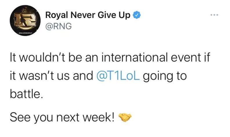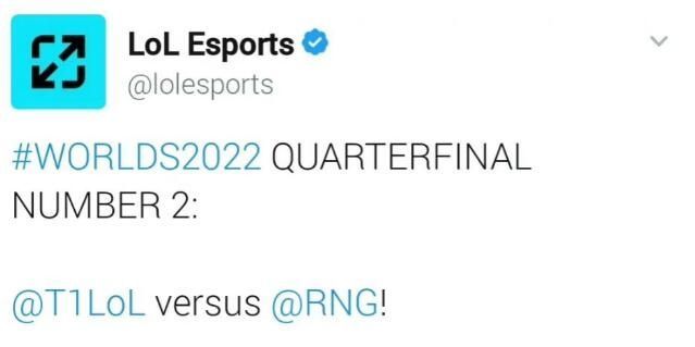 在颠末了8天的小组赛之后,本年豪杰同盟天下赛镌汰赛的八支队伍也都全部的发表了,此中,LPL赛区晋级了三支队伍镌汰了一支队伍,晋级到八强的队伍分别为一号种子JDG小组第一、三号种子EDG小组第二、四号种子RNG小组第二,止步于十六强的则是二号种子TES;LCK赛区的四支队伍都晋级到了八强,他们分别为一号种子GEN小组第一、二号种子T1小组第一、三号种子DK小组第二、四号种子DRX小组第一;LEC赛区则是仅有一支战队晋级,他是一号种子RGE小组第二。在小组赛全部竣事之后,八强赛的抽签结果也都出来了,上半区JDG对阵RGE、T1比武RNG;下半区GEN对阵DK、DRX比武EDG。 这个抽签对于LPL来说绝对是上上签了,至少制止了八强的内战,而RNG再次活着界赛八强中遇到T1,这场对决无疑是经典的不能再经典的对决了,在抽签结果出来之后,LOL官推也发文体现:“宿命之战,T1和RNG的八强赛!” RNG在知道这个抽签结果之后,他们的官推发文喊话了T1:“如果不是我们和T1对决,那就不能称其为天下级赛事。下周见!” 不得不说,在每次的天下赛中T1与RNG总是可以大概相遇,无论是在小组赛、镌汰赛、半决赛以及总决赛,不外在多年的天下赛比武上,RNG还没可以大概击败过T1,此前双方的天下赛战绩分别为2013年环球总决赛决赛 RYL 0-3 SKT、2016年环球总决赛镌汰赛 RNG 1-3 SKT、2017年环球总决赛半决赛 RNG 2-3 SKT。现在两支队伍再次的在镌汰赛上碰面,究竟谁可以大概击败对手挺进到半决赛还得拭目以待。 |