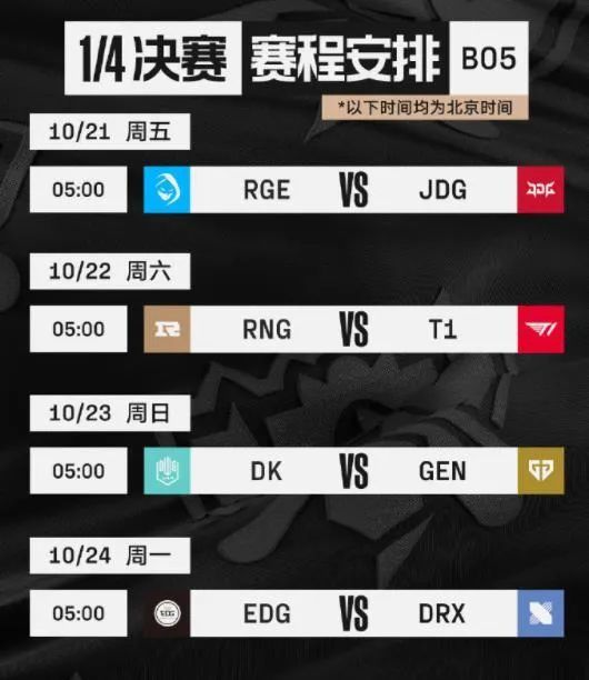随着豪杰同盟S12天下赛小组赛赛程竣事,八支晋级四分之一决赛的战队全部确认:JDG、EDG、RNG、DK、T1、GEN、DRX以及RGE。可以看得出来,现现在欧洲和北美赛区气力下滑极为严峻,尤其是北美,欧洲赛区至少尚有独苗RGE晋级八强,北美赛区全部划水水~ 小组赛竣事,官方终于公布了四分之一决赛赛程: 10月21日5点,RGE vs JDG10月22日5点,RNG vs T110月23日5点,DK vs GEN10月24日5点,EDG vs DRX10月21日,首场比赛将在JDG同RGE之间举行。相对来说,JDG的对手RGE气力并非顶流。在之前的小组赛中,我们LPL赛区的TES战队曾经击败过RGE一次。按照这个逻辑推理的话,身为LPL头号种子的JDG大概率会击败RGE。 10月22日是RNG和T1的旧恨之战。10月23日是LCK赛区的内战,头号种子DK对阵S11亚军GEN。10月24日,EDG对阵DRX,四号种子DRX是LCK赛区气力最弱的战队,EDG大概率也会取胜。值得一提的是,四场比赛的时间对于我们LPL赛区玩家来说并不友爱,全都在破晓5点,这大概导致诸多水友会放弃观看直播。小同伴们,你是看直播还是回放呢? |