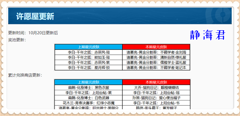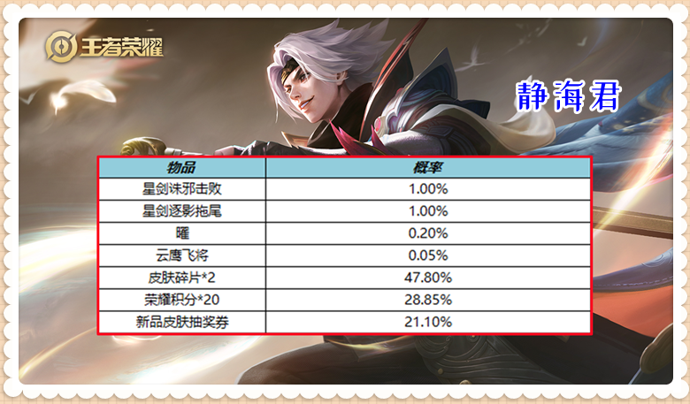 文/静海君 王者光彩正式服10月20日更新,在本次的更新中有周年庆运动的开启,有最新传说限定皮肤的上架,具体什么情况请给我2分钟的时间。 福利运动一:周年庆拖尾本次更新的第一个福利运动和七周年庆拖尾有关。 ⑴具体的运动 假如想要七周年庆拖尾的话,只须要在10月20日~10月29日这个时间段内完成使命就可以了。 只须要20个金秋印记就可以兑换灿若星河拖尾,假如印记尚有的多的话,玩家还可以兑换密切玫瑰(3个印记)和铭文小礼包(1个印记)。 ⑵须要注意的事项 想要得到金秋印记一共有两个途径: 每周使命:在10月21日~10月23日和10月28日~10月29日这两个时间段内,玩家可以通过登录游戏、累计对局来得到金秋印记。登录游戏可以得到2个金秋印记,累计1场对局可以得到3个印记,累计3场对局可以得到5个金秋印记。 一次最多得到10个,2次全部完成的话可以得到20个。 逐日使命:10月20日~10月29日这段时间内,玩家天天可以通过对局来得到金秋印记。天天到场一场对局就可以得到2个印记。 一天两个印记,一共一连10天,共计可以得到20个。通过每周和逐日使命最多可以得到40个印记,兑换完拖尾后尚有20个印记可以用来兑换玫瑰。 须要注意的是,在10月20日~10月29日这段时间内,玩家还可以通过累计签到来得到月桂币(月桂币醒目嘛之前科普过许多次了,这次我就不说了),完成5天的累计签到后,玩家最多可以得到40个月桂币。 福利运动二:王昭君最新传说限定上架王昭君的传说限定真的来了,只不外她的名字不叫「律动冰钻」。 ⑴王昭君新皮肤的根本情况 天美挖了一个新坑——举世甄选,作为举世甄选的第一个皮肤,王昭君星穹之声的排面十足。 这款皮肤的标签是限定,品格是传说,售价是1788(首周1430)点券,具体的上架时间是10月21日~12月21日。 特别须要注意的是,这款传说限定可以通过做使命的方式来完成打折,打完折后的代价仅需1042点券。根据策划透露的信息,这个使命的完成方式是: 通过做使命来网络追念碎片,在网络满到充足的追念碎片后,就可以解锁388点券优惠卡(仅限星穹之声)了。 ⑵配套运动 在星穹之声上架的同时,其个性按键也同步上线了,代价和其他个性按键完全雷同(首周150点券,过后188点券)。 除了个性按键外,尚有寸步难行以及给你来唱两个静态心情上架,每个售价98点券。 福利运动三:两大礼包上架第三个福利运动是局内特权礼包和皮肤殊效礼包的上架。 ⑴局内殊效礼包 这次上架的局内殊效礼包和曜有关,通过购买韬曜含光礼包礼包,玩家可以得到曜的专属仙剑击败殊效、拖尾殊效、云鹰飞将等夸奖。 该礼包的售价是20点券一个,从概率来看的话,玩家又只能通过保底的方式来得到击败和拖尾殊效了。还是之前那句话,3000点券换两个殊效,值不值各人本身评判。 ⑵皮肤特权体验礼包 在游戏更新后,玩家可以花20点券来购买一个皮肤特权体验礼包,该礼包中含有白蛇、末日机甲、逐浪之夏、节奏热浪等热门皮肤。 关于这个礼包有两个注意点:第一,该礼包限购一个;第二,礼包内的皮肤体验卡是任选的。 福利运动四:多个秘宝上线皮肤秘宝一样寻常被我称为智商税。 ⑴超值皮肤秘宝 超值皮肤秘宝售价20点券,通过它玩家可以得到白执事、秩序猎龙将、浊世虎臣、救世之瞳、箭羽风息、战争骑士等永世皮肤。 假如抽不到皮肤也不要紧,玩家最差也可以得到和20点券代价相称的2个皮肤碎片大概20个光彩积分,看起来怎么都不算亏。但是兄弟们,假如你不是狂热的皮肤网络爱好者,这么多的皮肤碎片和光彩积分有什么意义呢? 20点券的超值皮肤秘宝是这个原理,50点券的优选皮肤秘宝同样是这个原理。 ⑵好汉秘宝礼包 假如你的金币充足多,又缺少兴趣的话,完全可以买好汉秘宝礼包玩。1200金币一次,有概率得到永世好汉。 ps:假如不是为了玩这个礼包完全没须要买,纯坑。 福利运动五:逐日充值运动本期的逐日充值运动没有任何新意,档位、夸奖和之前千篇一律,思量到确实有须要囤些点券,我只想说一下它的开启时间。 本期逐日充值运动从10月21日开始,到10月24日竣事,共计4天。 福利运动六:夺宝更新本次更新的末了一个福利运动是夺宝和许愿屋的更新。 ⑴夺宝干系 在10月21日-10月24日这4天内,积分夺宝75折优惠。别的,在更新后,两个奖池尚有厘革: 积分夺宝:永世好汉→司马懿和钟馗。 钻石夺宝:永世好汉→张飞、蔡文姬、鲁班七号;皮肤体验卡→3天的黄金武士。 ⑵许愿屋 至于许愿屋的更新很简朴,就是李白的千年之狐→诸葛亮的黄金分割率。 以上就是本次正式服更新的全部内容了,我是静海君,江湖不大,有缘下次再见。 |