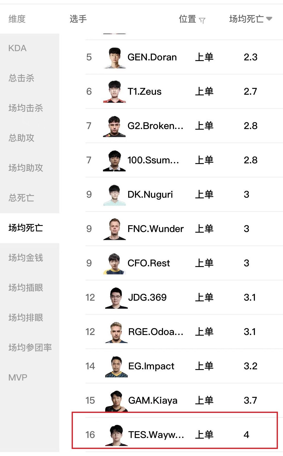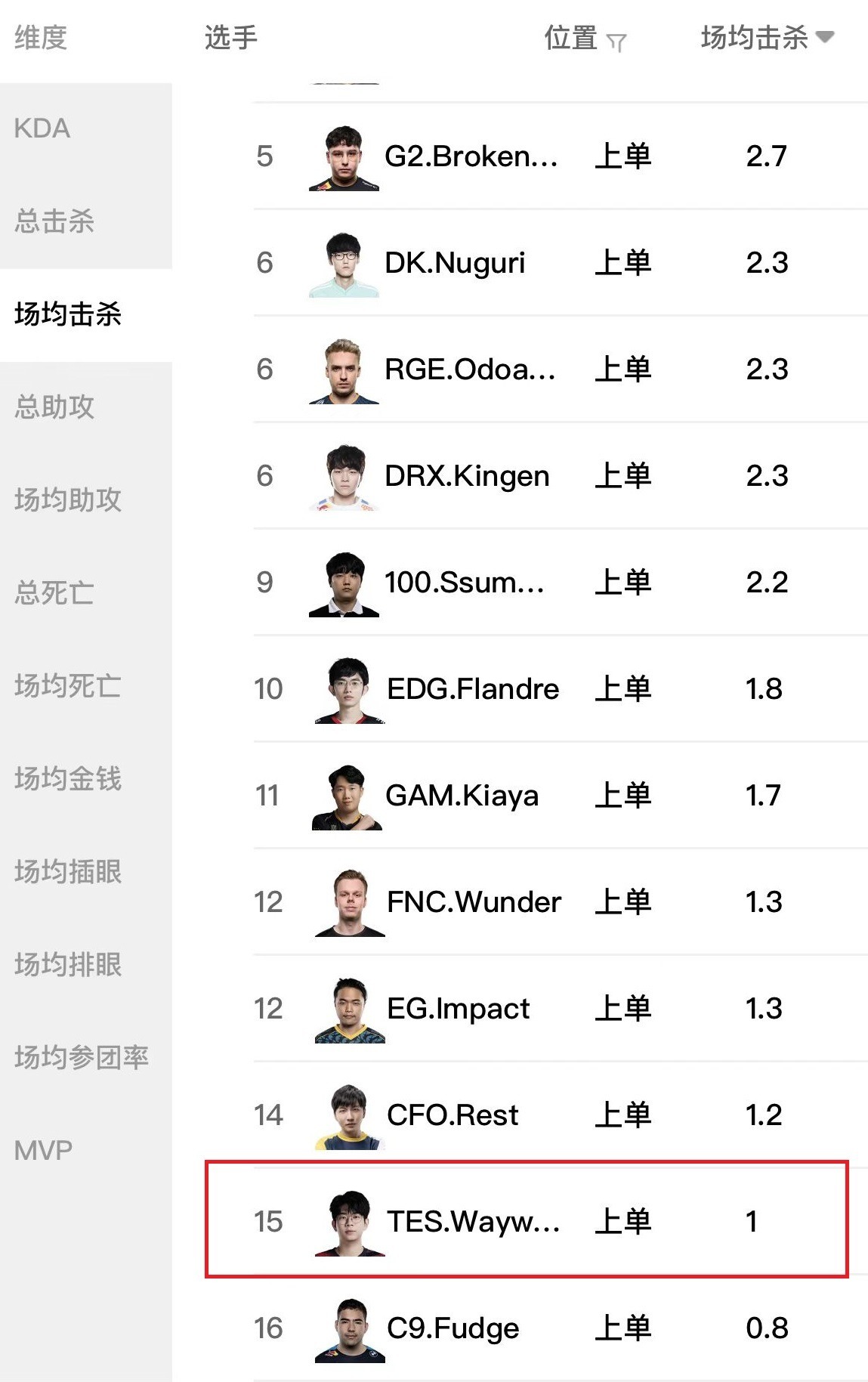 好汉同盟S12火热举行中,腾讯消息将为您带来一手赛事资讯,为您出现全方位的电竞盛宴。 S12天下赛小组赛的角逐竣事后,各项数据纷纷出炉,此中上单位置的数据引发了巨大的争议,紧张是TES上单wayward多项数据排名倒数第一,俨然成为了S12小组赛的垫底上单。 起首是场均击杀数据,wayward均匀每场击杀1人,排名小组赛16位上单中第15名,仅高于C9上单Fudge,Fudge什么水平各人应该都知道,强势好汉玩不明确,只能玩团队型上单混着。 固然场均击杀数不多,在有些战队中也很正常,毕竟上路不是核心位置,没须要拿那么多人头,但是至少可以包管本身少被击杀一点吧。像是C9上单Fudge的场均殒命数就比力低,但是wayward是属于“杀的少,但是死的多”,场均殒命数高达4,是S12天下赛16位上单中唯逐一个突破每场死4次的选手,排名全部上单的倒数第一。 其他的数据就不逐一晒图来分析了,wayward在这次小组赛的总体数据如下,场均击杀排名倒数第2,场均殒命排名倒数第一,场均助攻排在第7名中游水平,KDA是1.4,也是倒数第二,参团率排名倒数第二,分均伤害排名倒数第一,伤害占比排名倒数第一,单杀次数排名倒数第一。 一共7项数据倒数,而且都是倒数第一大概倒数第二,就知道wayward在本年天下赛上的体现有多离谱了。有的上单大概比力偏科,要么就是伤害爆炸,要么就优劣常团队,但是wayward从数据上来看,他既不是Carry型上单(由于分均伤害很低),又不是团队型上单(参团率也低得离谱),除了一堆倒数的数据和许多失误的利用之外,似乎本年天下赛他真的没给各人留下什么正面的印象。 从数据上来看可以确定wayward是本年S12天下赛小组赛的倒数第一上单了,毕竟TES是3胜3负的战队,而小组赛尚有6支1-5的战队,以及1支2-4的战队,可以侧面看出wayward有多离谱了。 有这种上单在根本不大概夺冠,TES在小组赛镌汰也不不测了。实在wayward也是要背大锅的,他的鳄鱼和纳尔失误集锦不可胜数,只是其他几位选手,特殊是中野AD三人的名气太大,再加上都有失误,以是无形中帮wayward挡住了许多舆论。最令人唏嘘的是,wayward刚刚参加TES的时间,打得并不差,很有灵性,还暴打了Rich,谁知道如今酿成了如许,只能说渴望他来岁再加油吧!固然来岁TES的首发上单还是不是wayward,真的很不好说了。 那么,对于这件变乱,你们有什么想说的吗?接待在品评区留言探究。 |