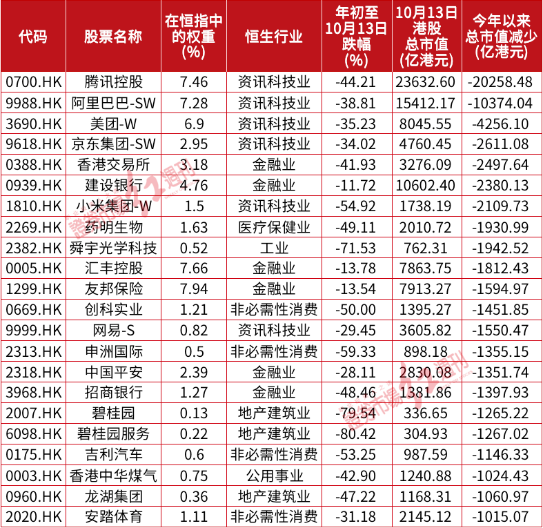 红周刊 | 侯纯 上周四,香港恒生指数收盘16389点,一连6天下跌。9月份,恒生指数刚刚创10年来13.69%的最大月跌幅。而本年年内跌幅也达29.95%,汗青上仅好于2008年金融危急的时间,其时恒指一年跌去48.27%。 港股市场与香港经济出现背离 与港股市场的疲弱差别,香港比年的经济不停在稳固增长,作为国际商业中央,2021年,香港货品收支口总额为13822.6亿美元,居环球第六位。 别的,作为环球金融中央,近几年,香港资产及财产管理业务总规模一连增长,从2018年的23.96万亿港元增长到2021年的35.55万亿港元,三年增幅靠近50%。外汇储备处于高位,9月尾的官方外汇储备资产为4192亿美元,相称于香港流畅钱币5倍多。 因此,港股市场的弱势重要缘故原由是受美元一连大幅度加息的牵连,美元加息促使环球资源市场资金选择抛售变现并回流美国来购买国债等金融资产。制止9月尾,美国年内一共加息5次,累计加了300个基点,联邦基金利率从0-0.25%上升至3%-3.25%。作为“环球资产之锚”的美国10年期国债收益率已经过客岁底的1.52%升至3.93%(10月11日数据)。 恒指本年初次大幅下跌是在2月尾至3月中旬,发生在美元初次加息前后;7月到9月的第二波下跌同样是各大资产管理公司不停抛售变现的结果。现在美国的通胀率仍居高下下,市场预期11月美联储还会加息75个基点,以是恒指四序度的表现仍存在较大压力。 估值消化为后市发展奠基底子 香港股市主板与创业板在2021年底有2572家公司,港股总市值合计是42.38万亿港元。制止2022年9月尾,港股公司家数上升至2581家,但总市值仅剩30.83万亿港元,缩水了11.55万亿,幅度为27.25%,主板的匀称市盈率值则由15.06倍降至8.83倍。 从本年初至10月13日,港股12个行业板块无一收涨。此中,市值缩水过万亿港元的有5个行业,分别是资讯科技业、非必须性消耗、金融业、地产修建业与医疗保健业。 表1 港股行业市值变革环境 数据泉源:Wind 据统计,港股资讯科技业总市值由2021年末的11.83万亿港元降至6.88万亿,镌汰了4.95万亿港元,降幅达42%,个股的匀称跌幅23.96%。非必须性消耗由2021年末的5.71万亿港元降至4.05万亿,镌汰了1.66万亿港元,降幅29.06%,个股的匀称跌幅17.24%。金融业总市值镌汰了1.66万亿港元,降幅22.2%,个股的匀称跌幅20.24%。地产修建业总市值镌汰了1.19万亿港元,降幅26.93%,个股的匀称跌幅25.86%。医疗保健行业总市值镌汰了1.06万亿港元,降幅40.02%,个股的匀称跌幅33.09%。 在恒生指数73只因素股中,市值镌汰凌驾千亿港元的有22只,排名第一的是腾讯控股,总市值由客岁末的4.39万亿港元,降至2.36万亿,缩水2.03万亿,降幅46.16%,其一家公司就占了整个资讯科技市值镌汰总额的四成。腾讯股价9月下旬以来多次创下2019年以来的新低,相比2021年最高价758.9元(复权后),市值被抹去三分之二。 表2 恒生指数因素股市值缩水居前股 数据泉源:Wind 为了稳住不停下跌的股价,腾讯公司本年以来频仍举行回购利用,从年初到10月12日,累计回购73次,累计回购7123.44万股,耗资231亿港元,匀称回购价为324港元。8月19日至10月12日更是一连37天回购。 但腾讯的回购结果一样平常,重要缘故原由除了外洋资产管理公司的抛售外,尚有大股东的减持所带来的压力。公司重要股东Naspers团体(南非报业团体)上半年减持了391万股。6月27日,腾讯控股公告称公司重要股东Naspers团体将出售公司股份,预计每天出售的腾讯股份匀称不会凌驾公司股份之逐日匀称成交量约3%-5%。根据腾讯最新股东权益表现,制止9月8日Naspers持股数目为269257.33万股,持股比例27.99%,相比6月30日财报中披露的持股数目,49个交易业务日内大股东累计减持了7284.44万股,而同期腾讯回购数目只有2449万股。 必要指出的是,颠末年初到如今的估值消化,很多港股已经出现所谓的“黄金坑”。好比腾讯估值的大幅低沉引来不少代价投资者入场抄底,有“中国巴菲特”称谓的段永平本年以来已经数次在雪球平台上喊话抄底,有人测算过,其资本大概在360港元,按253.6港元的最新价盘算浮亏靠近30%。不外,段永平是长线投资者,看好的股票逆势买入是其重要的投资方式,越跌越买,其理念是好股票肯定能穿越牛熊。更紧张的是纵然已经买了数十万股腾讯,腾讯合计仓位还不到他总体仓位的1%。 不止腾讯一家,恒指因素股缩水榜中居前的尚有阿里巴巴-SW、美团-Wg与京东团体-SW,这三家电商巨头本年也是流年倒霉,制止10月13日,港股市值分别镌汰了1.04万亿、4256亿与2611亿港元。 (文中提及个股仅为举例分析,不做交易发起。) |