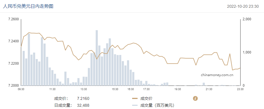 来自中国外汇买卖业务中央的数据表现,在岸人民币兑美元夜盘收报7.2160,较上一买卖业务日夜盘收涨119个基点。成交量324.88亿美元。 |