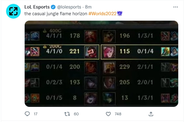 好汉同盟S12火热举行中,腾讯消息将为您带来一手赛资讯,为您出现全方位的电竞盛宴。 10月21日,好汉同盟S12环球总决赛镌汰赛阶段,首日的角逐JDG对阵LEC末了的渴望RGE,在第一局的角逐中JDG打野男枪梦幻开局,全程碾压RGE打野,终极利用强势的上半区掌控角逐。 在第一局角逐竣事之后,推特都开始歌颂起JDG与打野Kanavi。 LoLEsports官推:打野如同身处火场 JDG拿下领先! LEC讲授Marc:Kanavi打得也太TM好了 100T打野Closer:Kanavi玩的真好 Jankos:JDG真的很不错 DK官推:鳄鱼又哭了一次 |