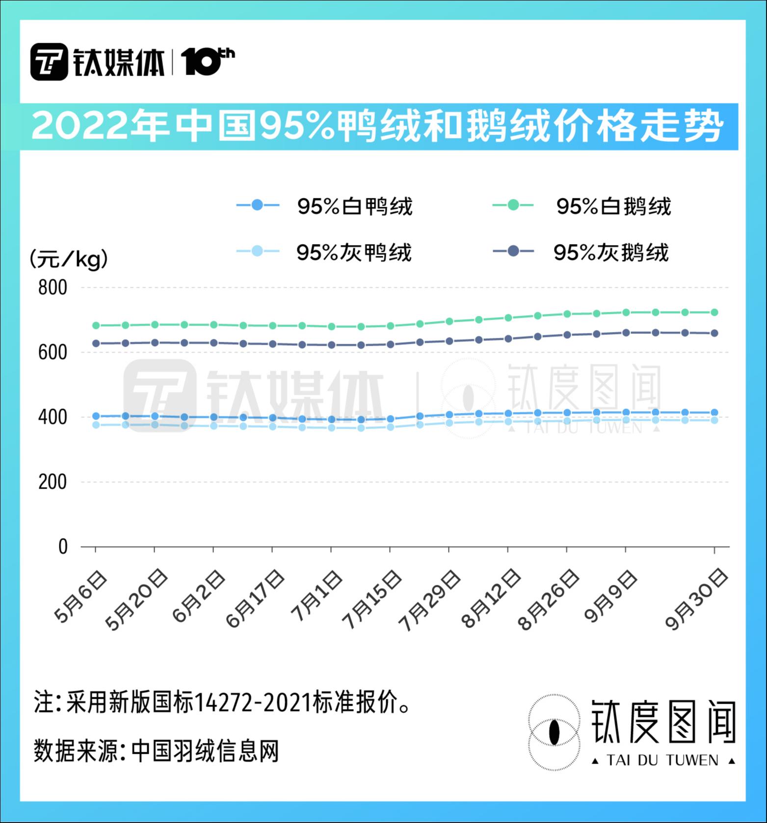 钛度图闻·第六十一期 筹谋制作|钛媒体视觉中心,编辑|刘亚宁,作图|初彦墨 天下范围的大幅降温,让羽绒服贩卖高峰提前到来。数据体现,国庆假期期间,波司登、雪中飞、鸭鸭品牌的成交总额增速均凌驾100%,而单价较高的加拿大鹅增速也靠近20%。 中国是天下上最大的羽绒及成品生产国,近几年,国产物牌捉住市场需求,正在转型之路上渐渐实现高端化的品牌升级。羽绒服代价逐年上涨,从前几百块就能买到一件,如今一些高端羽绒服标价动辄上万元。同时,作为羽绒原质料的鹅绒、鸭绒代价也正在上升。从御寒神器到潮流单品,我们尚有“羽绒服自由”吗? 羽绒服代价涨了多少?羽绒服涨价的“幕后推手”是谁?国产羽绒服可否逆袭加拿大鹅?钛媒体·钛度图闻最新一期带你走进千亿羽绒服市场背后的“江湖故事”。 售价涨势惊人,代价10年上涨近64%如今的羽绒服都是什么价?据钛媒体·钛度图闻不完全统计,根据主营品类差别,羽绒服市场到场者重要分为:包罗李宁、安踏等在内的活动户外品牌,波司登、加拿大鹅、MONCLER等专业羽绒服品牌,以及大众快时尚品牌。活动户外品牌定价在1000-4000元左右,专业羽绒服代价带较宽,不少品牌推出中高端羽绒服,代价从几百万到上万元不等;而快消品牌定位大众市场,代价多在1700元以下。 停止2022年10月14日,在售波司登羽绒服最高价为1.49万元/件,除此之外,MONCLER单件羽绒服最高价卖到了3.7万元,加拿大鹅最高价为2万元/件。 近几年,羽绒服正在“升值”。2010-2019年,中国羽绒服匀称单价团体呈上升趋势,10年间上涨近64%。2013-2015年,整个行业在生产资本上升等环境下急需清仓,匀称单价降落。随着库存清算靠近尾声,斲丧者人均可支配收入进步,行业进入涨价周期,2016-2019年,羽绒服匀称单价每年都有7-9%的提拔。2019年,中国羽绒服匀称单价为596元/件,较2018年上涨7.27%。随着斲丧者斲丧条理提拔,羽绒服匀称单价正在渐渐提拔。 羽绒服涨价“幕后推手”:鹅绒、鸭绒纷纷涨价自2015年以来,受到生产资本上升、产能过剩、市场竞争等因素影响,我国羽绒服产量开始大幅下滑,从2015年的3.4亿件降到了2020年的1亿件,降落幅度达71%。但进入2021年,羽绒服产量规复正增长,累计产量为1.3亿件,同比增长26%。 羽绒服产量虽降落,但同期市场需求却出现增长态势。2021年,我国羽绒服市场规模为1562亿元,同比增长12.8%;生产规模降落与市场规模增长之间的差距,给了羽绒服代价富足的涨幅空间。 别的,财产链中上游的资本浮动,也影响着卑鄙产物的定价。在羽绒服的生产资本中,羽绒服的原质料资本约占总资本的75%,包罗羽绒(45%)、面料(25%)和辅料配饰(5%);人工资本约占总资本的12%;其他运营资本约占13%。可见羽绒代价是影响羽绒服资本最关键的因素。 作为羽绒服资本的告急构成部门,羽绒的代价肯定水平上决定着羽绒服的市场代价。中国是天下上最大的羽绒及成品生产斲丧国,中国的羽绒产量占据环球产量的70%。但随着环保督查趋严,不合规企业镌汰,导致团体羽绒供给镌汰、羽绒服代价上涨。 近半年来看,鸭绒和鹅绒代价均有差别水平的上涨。此中,白鹅绒保暖结果更好、含绒量更高,代价涨幅也高。从2022年5月到9月,95%白鹅绒的每公斤单价从680元左右涨到了721元。别的,95%白鸭绒的代价也从400元/kg涨到了412元/kg左右。 羽绒原质料代价的提拔,敦促着羽绒服市场代价攀升。加之斲丧者对羽绒服保暖性需求连续上升,对格局筹划等也有了更高要求,在多方综合因素之下,高价位羽绒服越来越多。 波司登“逆袭”MONCLER,国产羽绒服向高端化迈进海关数据体现,中国不绝以来都是羽绒服出口大国。2021年,中国出口了7781万件羽绒服,入口602万件,出口数量为入口数量的近13倍。入口羽绒服多为高端产物,出口产物重要是以低价的中低端产物为主。 中国羽绒服制造在国际财产链职位有待提拔。究竟上,中国大量服装企业为外洋品牌做代工,也拥有成熟的履历丰富的制衣技能、工艺水平以及生产本领。中国羽绒服行业要升级迭代,必要在国际市场上增强活力和竞争力。 比年来,加拿大鹅、MONCLER等国际高端羽绒服品牌进入中国市场,羽绒服的高端斲丧需求被发掘。在市场需求及斲丧升级的加持下,作为头部羽绒服品牌的波司登开始向高端化转型。 波司登于2007年乐成登岸港交所上市,旗下包罗波司登、雪中飞以及冰洁等羽绒服品牌,早已稳居国内“羽绒服一哥”的宝座。2013年,因宏观经济和睦候等因素影响,波司登的营收利润开始下滑,于2016财年迎来最低点,仅实现业务收入58亿元,相较2013财年降落了近40%。 但从2017年开始,波司登开始转型,对准羽绒服的高端和年轻化。数据体现,2017-2021财年,波司登的业务收入从68亿元上涨到135亿元,五年间完成了翻倍增长。如今,波司登团体的营收已经远远超出MONCLER与加拿大鹅。 别的,在股价方面,波司登近几年也迎来高光时间。2018年至今,波司登股价从不到1港元一起高涨到4.16港元,总市值上涨近6倍。 除波司登外,别的国产物牌固然如今暂时无法贴上高端化标签,但在保暖性和面料质量等方面并不逊色。别的,雅鹿和鸭鸭羽绒服,匀称代价300-400元左右,常年位居羽绒服贩卖榜单前十,备受斲丧者喜好。 未来,无论是存量市场,还是增量市场,中国羽绒服市场团体向好,呈复苏、上升态势。但高价行情可否长存,向高端化转型是否肯定会换来高