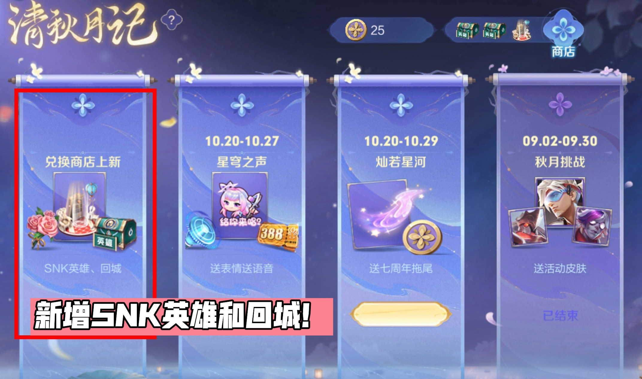 王者光彩七周年庆前夕,王者峡谷不但上线了昭君的首款传限,还开启了一系列新福利,好比网络碎片领取限时语音心情等。同时10点券福利周活动再次重启,本期福利周连续至10月30号竣事,官方将逐区开放到场资格,那么都有哪些夸奖呢? 与以往一样,玩家解锁10点券即可激活登录福利,即在两周内登录7天便能领取全部夸奖,此中第一天的秋日自选礼包内含百里守约特工魅影、刘禅名士熊喵、铠曙光保卫者、大乔青蛇等六款史诗的3日体验卡。玩家一连打卡还能得到1个好汉/皮肤碎片、20光彩积分、新品好汉券、秋日荣幸宝箱,该宝箱内含永世诸葛亮黄金分割率、李白敏锐之力、西施归虚梦演、米莱狄精准探案法、积分夺宝券、2000战令履历和新品皮肤券等夸奖,须要注意的是得到诸葛亮、李白的皮肤概率只有万分之一,抽到皮肤券的概率最大(30%),虽说得到永世皮肤的机遇渺茫,但10点券能得到积分和碎片并不亏! 别的本周官方还发布了露娜谎话西游影戏正版授权皮肤“一生所爱”的全新手办,这也是露娜入梦系列的典藏款(限时899),相比原来的Q版造型更加符合游戏内的形象。随着“一生所爱”升级典藏,官方同步开启了做任务夺宝的福利,不但有安琪拉永世皮肤“时之奇旅”和永世拖尾殊效,还到场了光彩水晶,全部玩家都可通过做任务免费得到最多7次夺宝的机遇! 而须要注意的是“清秋月记”主题福利再次更新,这次月桂兑换市肆新增了SNK好汉宝箱和回城殊效供玩家调换,也就是斲丧100月桂币可以兑换橘右京、不知火舞和娜可露露,还未集齐的SNK系列的新手玩家,别忘了做本周的累计签到任务网络月桂币兑换! 末了官方还开启了免费获取金蝉和改名卡的福利,须要玩家完成对战和打卡任务网络营地币调换,本期兑换市肆除了可以调换改名卡外(2000币),还到场了永世金蝉、金蝉伴生皮肤前尘、伽罗和伴生皮肤花见巫女。当前游戏内兑换金蝉须要斲丧一颗王者水晶,因此水晶不敷的玩家也可选择斲丧12000营地币调换。 结语:10点券福利周开启,不但能必得好汉皮肤碎片、光彩积分,另有机遇得到诸葛亮黄金分割率,别的露娜谎话西游主题皮肤“一生所爱”升级典藏手办,夺宝免费水晶来袭,新增金蝉兑换方式! |