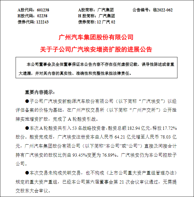 导读:此番A轮融资及后续的IPO筹划,一度水平上也办理了广汽埃安扩张产物线、技能研发及渠道等方面的后顾之忧。 (文/潘昱辰 编辑/周远方)10月21日,广汽团体披露公告表现,子公司广汽埃安在广州产权生意业务所公开挂牌实验增资扩股,完成A轮融资。本轮融资共引入53名战略投资者,同一按照13.23元/股的代价,以货币方式认购广汽埃安新增注册资源,合计认购13.83亿股,融资总额达182.94亿元。融资完成后,广汽埃安注册资源由人民币64.21亿元增至78.03亿元,广汽团体直接及间接合计持有广汽埃安的股权比例由93.45%降为76.89%。 广汽团体在公告中表现,本次A轮融资引战,使广汽埃安在新能源汽车范畴拥有了上鄙俚战略性财产资源的上风;在能源生态、电池质料、汽车芯片等方面,提升了广汽埃安的财产链、供应链的保供稳供本事;为广汽埃安新产物开辟、新一代电池、电驱研发及财产化创建、智能驾驶、智能座舱及产能包管等焦点技能的研发和财产化结构提供了富足的资金支持。 根据广汽团体董事长曾庆洪在2021年业绩沟通会上透露的信息,完成A轮融资后,广汽埃安将夺取在2023年举行初次公开募股(IPO),后续将择时、择机、择地上市。 广汽团体关于广汽埃安增资控股的希望公告 具体来看,本次A轮融资引战由人保资源、南网能创、国调基金、深创投、中信金石、广州产投团体或其旗下基金或机构连合领投,并引入充换电能源生态、电池关键资源、芯片筹划与制造、智能驾驶车路协划一范畴的战略支持和财产协同投资者;着名市场化、金融及资产管理等具有市场影响力的专业投资机构,以及大型政策引导性的国家及地方投资机构等。 A轮融资后广汽埃安股权结构变革 图片泉源:广汽团体公告 广汽埃安创建于2017年7月,是广汽团体新能源汽车奇迹的发展载体。2020年11月,广汽埃安正式从广汽乘用车板块独立。此次A轮融资完成,则是广汽埃安肴杂全部制改革的又一阶段性结果。 为推动团体电气化、智能化转型,自2021年8月起,广汽埃安正式启动混改及引战工作,并于同年11月完成内部资产重组。本年3月,广汽埃安完成员工股权鼓励、广汽研究院科技职员持股及同步部分引战,并于本年9月完成股份制改造。 在广汽埃安之前,其他国有车企为推进高端电动品牌发展,也连续举行肴杂全部制改革。如上汽智己汽车的股东即包罗张江国资和阿里巴巴;长安阿维塔则脱胎于长安蔚来合资公司,并于客岁引入宁德期间等财产投资者;大众中国则于2020年增资持有江汽团体50%股份,并将持有江淮大众股份增至75%。 自2019年4月推出首款车型AION S以来,广汽埃安的销量逐年上升。2019-2021年的销量分别到达4.2万辆、6万辆和12.02万辆。本年前三季度,广汽埃安销量到达18.23万辆,已高出客岁与前年的销量总和,在国内新能源车企中位居前五,占新能源车团体市场的4.2%。 不外,当前广汽埃安在售的4款车型中,有3款为紧凑型车。此中埃安S、埃安V两款车型为广汽埃安贡献了大部分销量,唯逐一款中型SUV埃安LX本年前三季度销量约3500辆,仅占总销量的2%,品牌向上尚显乏力。 广汽埃安LX 为突破品牌上限,本年9月,广汽埃安公布全新品牌Logo及进阶品牌Hyper昊铂,并推出自主生产的电动超跑Hyper SSR,售价区间为128.6万-168.8万元。广汽埃安更号称该车型“对手都在500万”以上。不表面临家用市场,除埃安LX外,广汽埃安尚待推出真正对标主流中大型及豪华品牌的产物。 广汽埃安电动超跑Hyper SSR 图片泉源:广汽埃安 别的,由于缺乏高溢价本事车型,加之新能源原质料代价上涨,及研发、贩卖等投入的加大,广汽埃安仍未突破新能源车越卖越亏的瓶颈,均匀单车净亏损达7600元。根据广汽团体披露的财报,广汽埃安2019-2021年营收逐年增长,依次为52.34亿元、76.1亿元和172.65亿元;但净亏损也在逐年扩大,依次为6.21亿元、6.88亿元、13.89亿元,2021年更是相较上年翻了一倍有余。 对此曾庆洪也在2022天下动力电池大会上承认,现在除特斯拉和比亚迪外的新能源车企都没有钱赚,并自嘲正在给宁德期间等电池供应商“打工”。而此番A轮融资及后续的IPO筹划,一度水平上也办理了广汽埃安扩张产物线、技能研发及渠道等方面的后顾之忧。 本文系观察者网独家稿件,未经授权,不得转载。 |