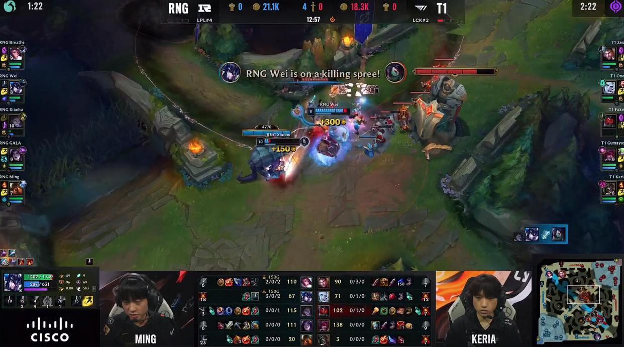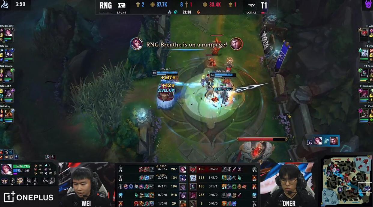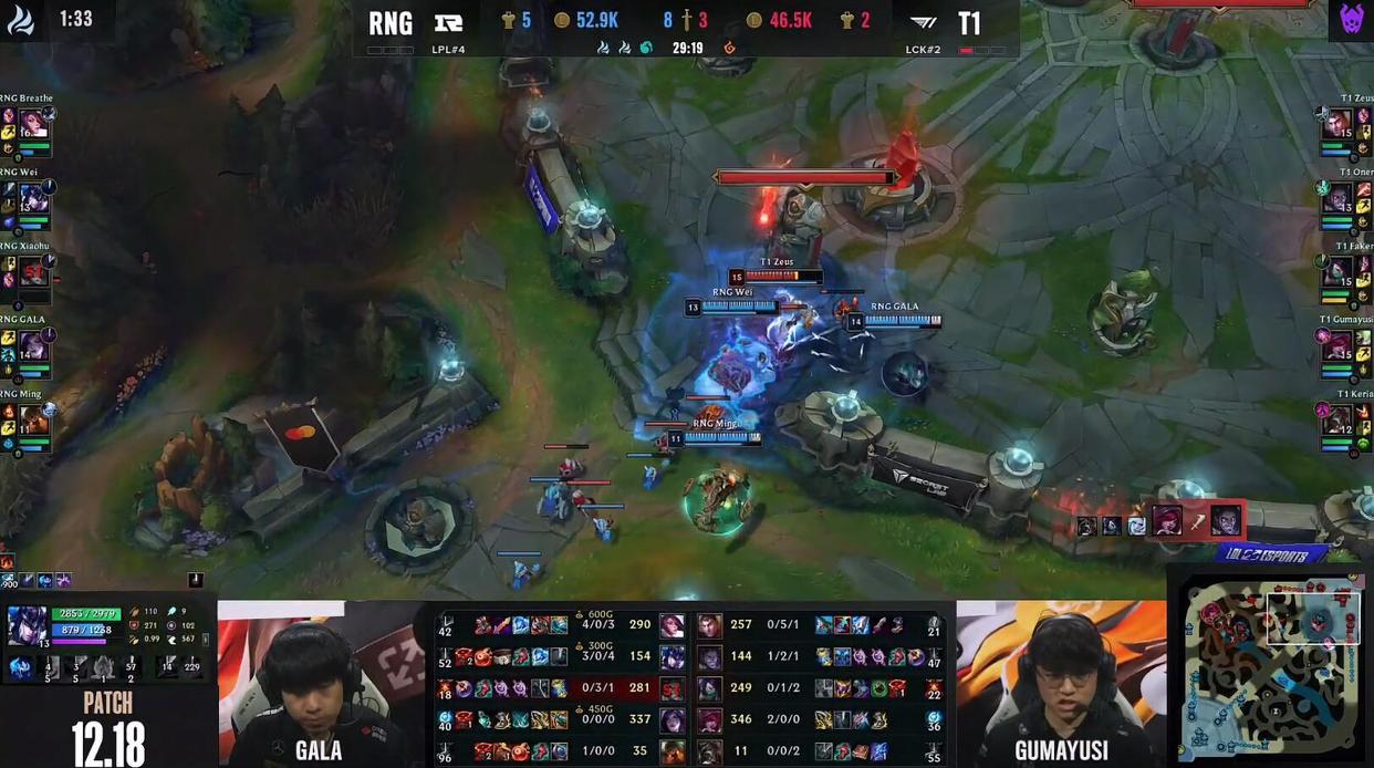 2022年10月22日,S12环球总决赛八强战第二场RNG对阵T1,两队首局比赛,T1拿到艾希大头体系搭配上排眼刀男枪,打出了极致的视野压抑,RNG始终无法开启团战被T1不停压抑野区资源拿到第一场比赛的胜利。 第一场:S12八强战:小明泰坦无功遭艾希大头完克 T1力克RNG先下一城 第二局BP: 换到蓝色方的RNG按掉女警、男枪、妖姬,自己则是先手亮出猪女摇摆,后续直接点出呼吸哥的剑姬亮剑,中单拿到塞拉斯,主打上中野强势。T1也是直接亮上中野拿到佛耶戈、阿卡丽以及Zeus的招牌杰斯来对抗。 后两手双方封锁了比力多的AD,T1先手抢下反手本事比力强的烈娜塔,RNG继续强化冲阵拿到卡莎泰坦的组合,末了一手T1的霞比力精华,进一步进步了阵容的拉扯本事,RNG后期有点难开到人。 比赛阶段: 2分半,Wei变速3级抓上,共同呼吸哥剑姬的先手打出Zeus一血,RNG率先打开局面。后续Wei的猪女在野区也是相称活泼,共同中上两个强势近战,猪女在野区如鱼得水,一连打出T1中野闪现。 6分半,T1上野率先实验对剑姬动手,但被呼吸哥岑寂化解,乃至连W技能都没交,随后Wei猪女赶到上路完成留人,呼吸哥手起刀落先斩Zeus升六,随后大招挂佛耶戈再斩Oner,RNG上野取得大领先。 峡谷前锋由上半区领先的RNG顺遂控下,T1只能无奈选择交换小龙。11分钟,RNG上野继续找Zeus杰斯提款,S12唯一上单杰斯根本崩了。 13分钟,RNG中野先手打残李哥,随后开释前锋,双方中野对抗先是完成中单一换一,但随着双方上辅支援到场,RNG战力显着更强,Oner佛耶戈的追击也比力深入,RNG拿到一波1换2的小胜,顺遂控到小龙。 今后T1放掉二前锋交换到下路一血塔,18分钟,呼吸哥在上路完成单吃,顺势收下上路一塔,19分半中路开释前锋拔掉T1中路一塔,在转而控到小龙。 21分半,呼吸共同小Wei将Zeus打到0-5的战绩提到下路一塔,经济领先拉开到5K。 23分半,小虎下路单带拔掉二塔,但被T1出动多人强行抓掉,上半区RNG四人动大龙则是逼出ZeusTP后拉开,26分钟,RNG控到听牌风龙。 29分钟,T1出动四人上路强抓小虎,固然取得击杀,但RNG在中路找到Zeus时机留住杰斯,打出击杀破掉T1中路高地,经济拉开到6K5。 31分钟,RNG固然拿到风龙魂,但T1选择Rush大龙得手,RNG想要留人,但在大龙坑地形被T1双人组两个比力强势的反手大招劝退。 后续的转线运营,RNG中路击杀李哥,呼吸哥上路带掉二塔,T1则是提到RNG下路二塔战略点,双方经济差依然维持在6K。 37分钟,太古龙团,RNG的Allin开团被T1双人组大招直接拉满,烈娜塔大招掷中五人,霞大招接倒钩打出巨量AOE,固然呼吸哥搏命换掉2人,但正面团战照旧被T1打出一波2换4的完胜,拿下太古龙加大龙,反推掉RNG中路高地,一波将经济反超。 40分半小虎偷蓝被T1抓死,T1拿到五打四的时机正面直接一波,即便呼吸哥积极操纵,但面对6神装有烈娜塔掩护的霞照旧没办法处置惩罚,被小吕布死血锁住,T1完成落伍6K经济大翻盘! 赛后数据,RNG固然领先泰半场,但关键的太古龙团处置惩罚的着实太糟糕了,被烈娜塔大招掷中五人,霞AOE拉满,T1险些是一波翻盘。 MVP终极给到了小吕布的霞,末了一手点出来的霞确实有点绝杀的意思了,共同烈娜塔的掩护,RNG根本切不死。 |