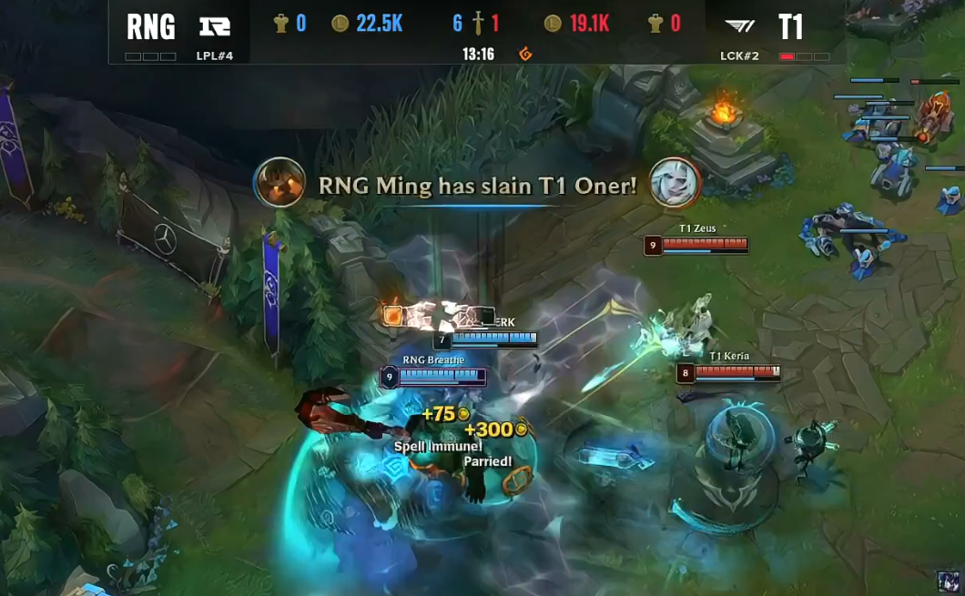 北京时间2022年10月22日,S12举世总决赛迎来了RNG与T1的八强赛宿命对决。以下是Bo5第二局的战报! 两边BP RNG:剑姬、猪妹、塞拉斯、卡莎、泰坦 T1:杰斯、佛耶戈、阿卡丽、霞、烈娜塔 这一局比赛,拿到了与线上队友联动更强的猪妹之后,RNG的打野选手Wei前期的自动权与节奏直接拉满。起首是在上路共同呼吸哥拿到了Zeus杰斯的一血,之后又是在中路共同中辅打掉了Faker与Oner的闪现,随后Wei再次来到上路增援呼吸哥,并与呼吸哥完成了一波2V2。RNG则是由于Wei前期非常生动的体现,拿到了3-0的上风开局。 之后,Wei再次针对Zeus共同呼吸哥剑姬完成“击杀”。不外在Wei中路的一波Gank时,固然RNG乐成“击杀”掉了Faker,但Oner佛耶戈的即时到场也收掉了小虎的塞拉斯。而由于Oner佛耶戈非常想要“击杀”掉Wei,导致本身追击太过深入,赶来增援的小明则乐成拿下了Oner的“人头”。 由于呼吸哥剑姬的精彩发育,呼吸哥在上路抓到机遇完成了对Zeus杰斯的单杀。之后,RNG又抓到了Zeus的机遇,Zeus战绩来到了尴尬的0-5-1。此时的RNG,已经领先了5000经济。 在经济落伍的情况下,T1开始防守,但是呼吸哥剑姬精彩的单带本领,给到了T1非常大的压力。固然后续T1在上路抓到了小虎的机遇,但RNG别的四人则果断在中路直接破掉了T1的中路高地。 比赛时间31分钟左右,T1抓到了很好的机遇乐成Rush掉了大龙。固然RNG立马赶到,两边拉扯之后,并没有打到底。但是在33分钟左右,RNG抓到了Faker落单的机遇,乐成“击杀”掉了Faker的阿卡丽。比赛时间37分钟,RNG与T1在太古巨龙处打团,但是在这波团战中,显着是T1处理处罚得更好,T1也因此拿到了太古巨龙与大龙Buff,局面顺势逆转。 而依附着太古巨龙与大龙Buff,T1末了一波了RNG,乐成完成翻盘,T1拿到赛点。 |