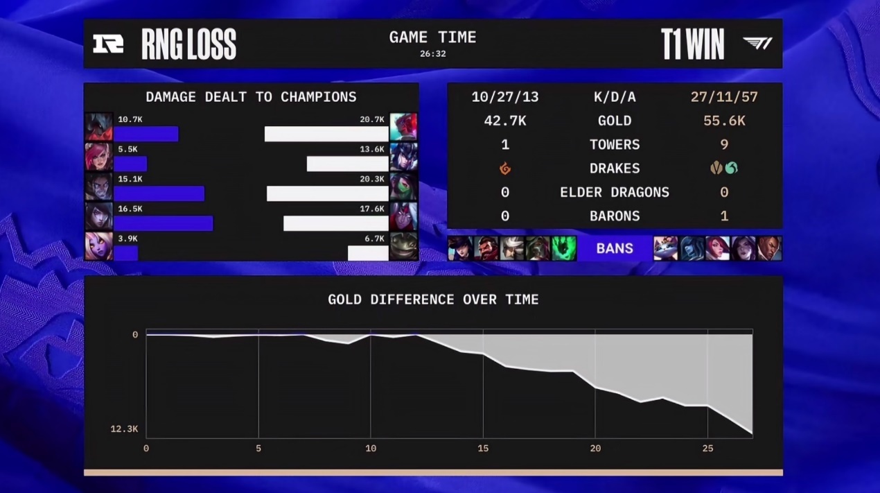 好汉同盟S12火热举行中,腾讯消息将为您带来一手赛事资讯,为您出现全方位的电竞盛宴。 各位LPL的观众和好汉同盟召唤师各人好,这里是天卑鄙戏汇。 在RNG第二局被T1直接翻盘的情况下,第三局RNG选出蔚的锁头体系,但被短阪的T1辅助塔姆所克制,同时辅助小明末了一手没有选璐璐而是出了奶妈,但效果并不好,在前期双方大乱斗博弈之后,局面一边倒被T1连续扩大经济上风。 终极T1战队是轻松碾压击败了RNG,以总比分3-0乐成晋级四强,LPL的两大全华班自此全部镌汰。 小明选出奶妈,前期大乱斗 第三局的BP,RNG蓝色方抢掉剑魔,然后出塞拉斯蔚的中野,二轮不测地选出厄斐琉斯和奶妈,T1赤色方改变思绪,先拿永恩打剑魔,然后出阿卡丽猪妹,二轮选出韦鲁斯塔姆,与RNG差不多,都是上中野冲阵,辅助保排。 双方这一局的关键就看上中野的博弈了,另有就是RNG在没选璐璐的情况下,这手奶妈效果到底怎样,是一个未知数。 双方安稳开局,Oner率先Gank上路逼出剑魔闪现,双方中野中路2V2,Faker残血反向逃跑送塔,小虎到6后直接偷大,猪妹赶到,Faker拉开,Breathe过来开大一套技能留住猪妹击杀。 但小虎残血没第一时间后撤,下路赶到塔姆WDF二连韦鲁斯Q拿下人头,WEI转头开塔姆但Q空了,韦鲁斯再拿一个人头,Breathe回线也被上野抓到阵亡了。 T1随后下路双人越塔动GALA,GALA一波拉扯共同奶妈大招反打1换2,小明过来被韦鲁斯击杀,小虎塞拉斯过来闭幕韦鲁斯拿到赏款子,打出一波2换3。 横扫全华班,T1进入四强 T1拿先锋上路GANK呼吸哥失败,后续先锋撞一塔,呼吸哥强行利用打出1换1,随后T1野区抓死小明,二先锋团战RNG过来接团先手一套被塔姆保住,永恩阿卡丽进场疯狂输出,T1打出一波1换3。 在这波竣事之后,局面就出现出了一边倒的趋势,中期RNG几波先手开团都会被塔姆美满化解,而T1的一个中上在进场之后RNG是根本处置处罚不了的。 中路再一波的团战被T1轻松化解击溃,T1又是抱团推进下路捉住机遇击杀蔚,野区小虎塞拉斯与永恩完成一换一,随后在中路位置T1直接打出了一波对RNG的团灭,此时的角逐已经彻底失去了挂念。 末了T1是以巨大的人头比击败RNG,乐成晋级四强,自此T1是在S赛上完成了对RNG的五杀,这五次分别是S3,S6,S7,S9和S11,此中有四次是BO5得胜,有一次是小组赛碰面乐成镌汰了RNG,同时也是完成了对MSI的复仇。 全华班镌汰,RNG功亏一篑 个人以为就本年天下赛的一个表现来说,RNG的硬气力简直是远远不如T1的,不管是选手的竞技状态,版本的明白程度,战术的储备量等等都是掉队的,但RNG由于手握强大的抓机遇开团本事加持,仍有一战之力。 但第二局输掉对RNG来说太伤了,下路三局角逐可以说是被打爆了。 然后就是第一和第三局的辅助选择,实在很洪流平上限定了RNG的先手进场开团,第三局角逐在进入中期之后,RNG几波的一个先手实在都是被塔姆给掩护住了。 再来简朴说一下选手的个人发挥,在角逐开始之前,我们以为RNG想要击败T1,中野位置得领先很多,上路能抗住,下路双方竞技状态差不多,但实际打起来之后发现,RNG的下路是打不外的,中路小虎可以说是隐身了以致说是一个负作用。 只有上野位置的发挥是比力精彩的,Breathe对线Zeus在1V1的对线上是差不太多了。 总结来说本年的天下赛,RNG简直在版本明白程度上是不敷的,小组赛是依附自己最善于的那一套乐成出线了,但被针对的情况下确实不好打。 |