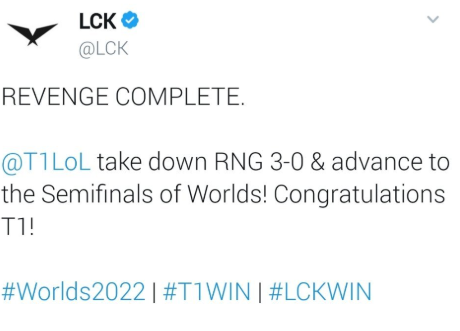1.RNG官博赛后致歉 RNG止步S12天下赛八强后,RNG官博第一时间发文致歉:很歉仄在本日的镌汰赛中不敌,竣事了本次S12环球总决赛的征程。对寄予厚望的粉丝们非常歉仄,感谢全部粉丝的支持和伴随。 本年RNG也就春季赛和MSI打得不错,从夏季赛开始到现在,RNG不停处于状态飘忽不定,战术储备不敷的情况中。他们能走到天下赛八强已经很不错了,来年继承加油吧!剑指S13也是可以的。 2.卷毛评价T1降服RNG 卷毛熬夜看完RNG和T1的镌汰赛,评价:确实打不外,小组赛看下来T1是韩国队现在状态最好的,八强也确实连续了这个状态,JDG四强要鉴戒,硬仗来了! 停止现在来看,T1确实要比GEN、DK和DRX的状态更好。重要是T1啥阵容都能玩,而且还玩的不错,能偷DRX的大头辅助,也能掏出书籍不盛行的塔姆韦鲁斯,打对手一个措不及防。 RNG照旧没能突破天下赛面对T1零胜率的魔咒呀!盼望小伙子们来年加油吧!夺取天下赛BO5赢一次T1。 3.LCK官推:复仇乐成,T1零封RNG 本年MSI决赛的时间,RNG与T1鏖战五局,终极RNG得到胜利,夺得MSI冠军。这事不停被LCK赛区和T1惦记着,就想在天下赛里复仇RNG。 无巧不成书,RNG天下赛总能和T1相聚,两队打了这么多年,也产生许多恩怨。比如RNG天下赛BO5面对T1是零胜率。本年两边再次相聚八强镌汰赛,国内观众都盼望RNG能排除魔咒,效果RNG又被T1斩落。 赛后,LCK官方发布推特,开心的表现:复仇乐成,T13-0拿下RNG,晋级半决赛! 看了直播的观众也都懂,RNG输的不怨,一方面是T1战术储备多,选手状态好,另一方面是RNG团体力气不可,第二局和第三局更是犯病较多。 4.T1得到和JDG的半决赛选边权 T1零封RNG晋级半决赛之后,紧接着和同一半区的JDG举行了抛硬币选边的比拼。英文流直播信息透露,JDG抛硬币环节落败,T1得到半决赛的优先选边权。 从T1和RNG的比赛来看,T1有着丰富的战术储备,下路的好汉组合很深,阵容搭配多样化。JDG在半决赛要鉴戒应对,肯定要打出最好的状态,不要再前期劣势,中期发力了,T1大概真不吃这套。 |