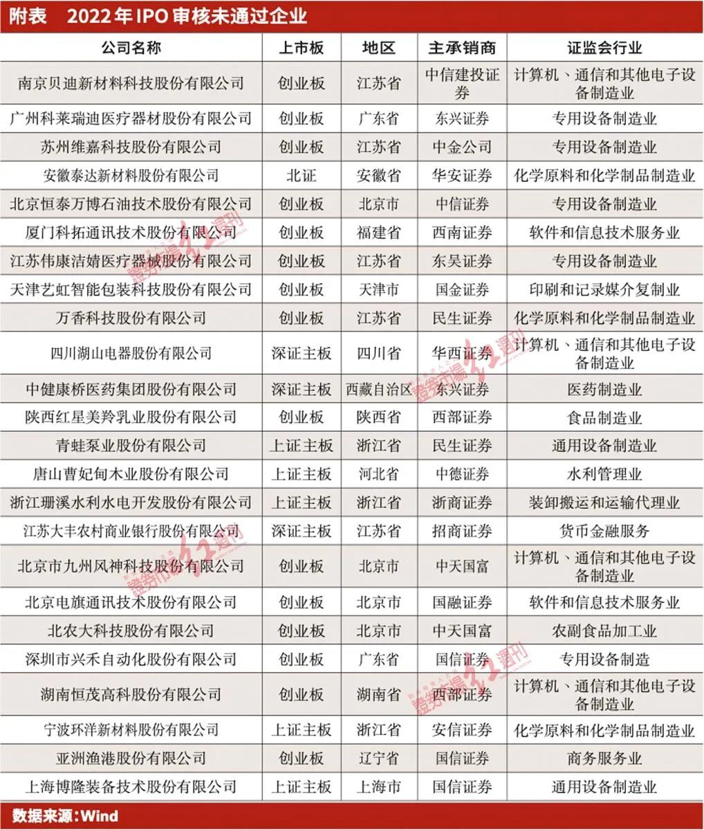 红周刊 | 赵文娟 随着羁系稽核力度的加强,主板市场成为本年前三季度拟IPO公司被否的“重灾区”,444家上会企业中,仅385家公司乐成过会,占比86.7%。 2022年前三季度,固然二级市场的表现不尽如人意,团体下跌了17%,但一级市场IPO发行却依然火热。Wind表现,本年前三季度共有307家企业首发上市,共募资4370.38亿元。首发上市家数上,固然相较客岁同期镌汰了90家,但募资总额却同比增长了14.94%。 别的,前三季度上会企业有所增多,相比客岁同期多了35家,达444家。从上会效果看,前三季度共有385家拟IPO企业乐成过会,暂未过会的公司中,有24家上会被否,19家拟IPO企业在稽核集会会议日期公布后“临阵退却”,尚有16家被暂缓表决。 必要重点指出的,固然申请主板上市的公司并不多,但主板市场却是本年前三季度IPO被否的“重灾区”,沪市、深市的通过率仅有74.45%和81.03%。在大量公司被“撤否”的背后,除了本年羁系层稽核显着趋严外,还和相干上会企业自身质地大概不外硬有关。 主板市场IPO通过率最低 Wind数据表现,在乐成过会的385家拟IPO企业中,选择创业板上市的有168家、科创板上市的有82家、上证主板有31家、深证主板有47家、北证有57家。从各板块IPO公司通过率看,科创板通过率最高,达95.35%;其次是创业板,通过率为88.89%;上证主板、深证主板、北证市场的通过率分别为74.45%、81.03%和85.07%。 相较客岁同期,本年前三季度的IPO失败率是有所提升的,被否企业数量较客岁同期增长了20%,此中,创业板和主板分别到达15家、8家,而北交所也出现首家被否企业。从否决率看,上证主板高达11.36%,创业板为7.94%,深证主板、北证分别为5.17%、1.49%,而科创板则在本年不停保持“0”被否。 别的,本年前三季度尚有19家拟IPO企业在稽核集会会议日期公布后“临阵退却”,比客岁同期数据增长了111.11%。此中,上证主板和深证主板撤单率合计高达24.53%,而创业板撤单率则为3.17%,北证市场为1.49%。 从被否公司从属行业看,专用装备制造业占比最高,有5家被否;盘算机、通讯和其他电子装备制造业以4家被否排在第二位,化学质料和化学制品制造业为3家;软件和信息技能服务业、通用装备制造业被否企业分别为2家。而若分地域看,则是江苏地域的被否企业最多,有5家;北京次之,有4家;浙江省和广东省分别为3家、2家,别的地域各1家。 在被否企业的保荐机构中,国信证券可谓“中枪”最多,有3家企业被否;西部证券、中天国富、民生证券、东兴证券各有2家企业被否。 另据Wind统计,2022年前三季度在手的首发项目高出50个的有12家券商,此中在手项目数到达57家的国信证券以高达15.79%的“撤否率”位居首位,其否决、撤单数分别为3家、6家;其次是申万宏源证券和中金公司,保荐家数分别为54家、80家,而“撤否率”则分别到达12.95%和12.50%,位居第二和第三位置。 “临阵退却”公司数量同比翻倍 “2022年前三季度IPO撤否率进步背后,一方面与生意业务所与羁系层驻足于资源市场的可连续康健发展而强化了相干板块的查察工作有关,另一方面也与疫情和经济下行造成的企业业绩增长乏力乃至下滑与恶化有关。”IPG中国首席经济学家柏文喜向《红周刊》表现。 观察本年前三季度23家创业板和主板被否IPO企业上会问询环境,可发现毛利率、内部控制相干、业绩真实性、策划可连续性、行业与板块定位、实控人及控股权相干、股权转让相干题目是企业闯关资源市场广泛面对的“拦路虎”。 在23家企业中,有12家被否企业均被羁系部分问询毛利率的题目,此中毛利率偏高是羁系层关注的重点,比如稽核未通过的环洋股份、田鸡泵业、恒茂高科、北农大、红星美羚、恒泰万博6家企业均被问及“毛利率明显高于偕行业可比公司的公道性”;同样,有12家被问询内部控制相干题目,比如9月22日被否的维嘉科技就存在实控人在陈诉期内多次占用公司资金,且公司通过民间借贷、向员工乞贷等方式举行资金周转的环境被上市委要求分析“防范实控人、控股股东及其关联方资金占用和违规包管等陵犯公司长处的内控制度是否健全且被有用实行”;尚有至少4家企业被问询收入真实性以及业绩下滑题目。别的,关联方/关联生意业务题目、信息披露题目、长处运送同业竞争题目也反复被提及。 必要注意的是,在创业板上会企业中,除毛利率、业绩真实性与连续性等题目外,行业与板块定位、内部控制题目关注度也很高。以9月份被否的4家创业板企业为例,此中贝迪新材、科莱瑞迪、恒泰万博均因创业板定位不敷而被否,而维嘉科技则是惟逐一家不因创业板定位而被否的企业,缘故原由是其财政内控的有用性、管帐底子的规范性等存有肯定疑问。这充实分析,羁系层本年对IPO把关更为严格,尤其注意拟上市企业策划业绩的公平性、合规性以及发展性,本质上是夸大上市公司质量与发展要符合主板与创业板的市场定位。 别的,本年“临阵退却”公司数量也比客岁同期增长了111.11%,这一点与正在趋严的IPO现场查抄不无关系。根据羁系部分以及公开可见数据发现,“临阵退却”的拟上市企业中有相称一部分存在现金分红非常、行政违规多且敏感、公司业绩趋势与行业趋势严峻分离等致命伤。 独立国际计谋研究员陈佳告诉《红周刊》,假如从2021年开始盘算的话,仅仅因IPO稽核现场查抄一个流程就有56%的拟上市企业被否、撤回。 江苏四维咨询