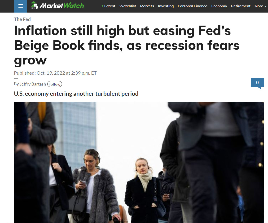 当地时间10月19日,美联储发布经济景气陈诉“褐皮书”,指出当前美国物价增速仍处于高位,且由于对需求减弱的担心不绝加剧,企业对经济远景的见解更加灰心。不少经济学家分析称,由于美国通胀程度居高不下,美联储不得不继续激进加息,利率上升恐将连续拖累美国经济。 《华尔街日报》报道,美联储“褐皮书”表现企业预计经济疲软 通胀迟迟未能缓解 美联储“褐皮书”每年发布8次,通过12家辖区联储银行对全美经济形势举行的摸底,刻画美国的经济趋势和面临的寻衅。19日最新发布的这一陈诉涵盖了停止10月7日网络的信息。 在新版“褐皮书”中,美联储表现,只管一些地区陈诉增速有所放缓,但团体而言美国物价增速仍处于高位。一些企业指出,已往6周的定价本领依然稳固,但其他企业则称,客户镌汰使转嫁资本变得更加困难。预测将来,人们预期代价将暖和上涨。 分析以为,由于美国通胀形势迟迟未能得到有用缓解,市场预计美联储将继续大幅收紧货币政策,将在11月初举行的货币政策聚会会议上再度激进加息75个基点。随着美国利率连续走高,需求将会受到克制,美国经济恐将连续放缓。 新罕布什尔大学经济学教授迈克尔·戈德堡(Michael Goldberg)对总台记者表现:“上个月住房通胀真的很高,食品代价仍在强劲上涨。(CPI)焦点篮子的其他构成部门,现在也出现了非常大幅的涨价,这些都好坏常具有黏性的。在真正看到焦点通胀降落之前,美联储无法克制加息。” “现在,焦点通胀上涨速率约为6%、6.3%,美联储真的不能把脚从利率踏板上挪开,直到焦点通胀确实开始降落,我以为至少要低于4%。以是,在11月的联邦公开市场委员会聚会会议上,很有大概加息75个基点。然后的标题是,美联储还能走多远?我的推测是,他们会比市场以为的走得更远。”戈德堡教授指出。 尚有经济学家担心,美国大概面临1970年代那种增长放和缓高通胀并行的环境,这大概必要采取更大幅度的加息举措,以致凌驾当前的加息力度。 德意志银行研究分析职员就指出,很多市场加入者忽略了1970年代的环境,其时的环境是,即便利率被美联储进步到10%以上,通胀也必要长达数年的时间才规复正常。一个紧张的标题是,通胀高位运行的环境每连续一个月,围绕将来代价上涨的预期脱轨并向上移动的风险就会越来越大,这又会反过来导致企业和职工将通胀预期纳入他们的代价和工资决议中,从而形成一个自我实现的预言、一个恶性循环。 《市场观察》称,外界对美国经济阑珊的担心正在加剧 加息连续拖累经济 美联储在最新发布的“褐皮书”中还称,对经济阑珊的担心正在全美多个地区开始显现,这表现在制造商冻结雇用,以及有关阑珊的提法越来越多之上。别的,只管部门地区陈诉薪资压力有所缓解,但就业市场总体仍旧告急,在当前环境下,进步工资对于留住人才仍旧至关紧张,业内人士预计薪资压力将继续存在。 美联储观察表现,自前次陈诉以来,美国经济活动适度扩张,但是差异行业和地区的环境各不雷同,此中4个地区陈诉经济活动持平,两个地区陈诉经济活动下滑,需求放缓或疲软归因于利率上升、通胀和供应链停止。美联储指出,面临高通胀和利率上升,美国企业对经济状态变得更加灰心。 除了企业层面,当前的高通胀和利率上升已对美国经济的各个范畴产生打击,与住民产业息息相干的房地产和股票市场首当其冲。 美国抵押贷款银行家协会19日公布的数据表现,在停止10月14日的一周内,美国30年期固定利率抵押贷款的条约利率再度攀升,上涨13个基点,到达6.94%,为连续第九周上涨,为2002年以来的最高程度。云云高的利率程度,已对房地产市场造成打击。 与此同时,美联储为克制通胀连续激进加息,被市场以为将拖累经济发展,并大概拖累企业利润和市场估值,导致越来越多的华尔街分析人士对股市发表灰心言论,并对市场颠簸性发出告诫。“褐皮书”发布当天,美国股市出现下跌,投资者除了关注企业财报表现,也在对越来越多的经济灰心推测做出反应。(央视记者 顾乡 刘骁骞) |