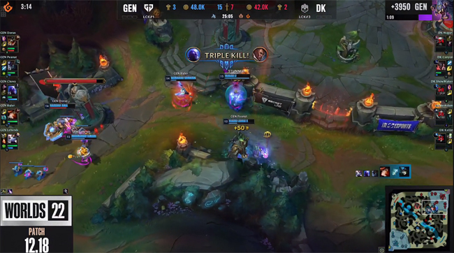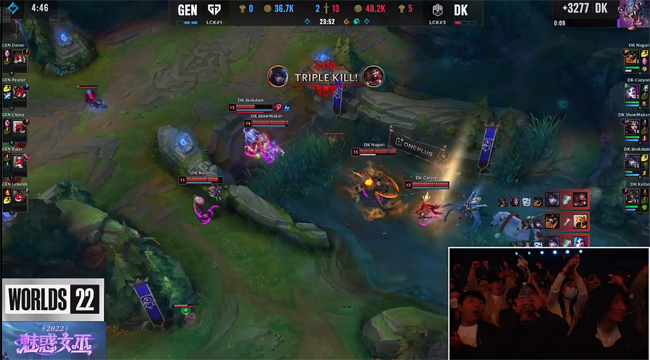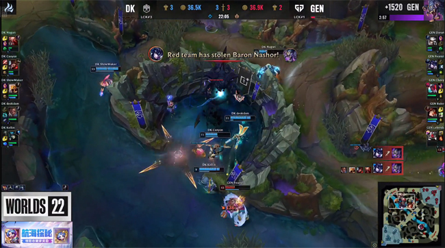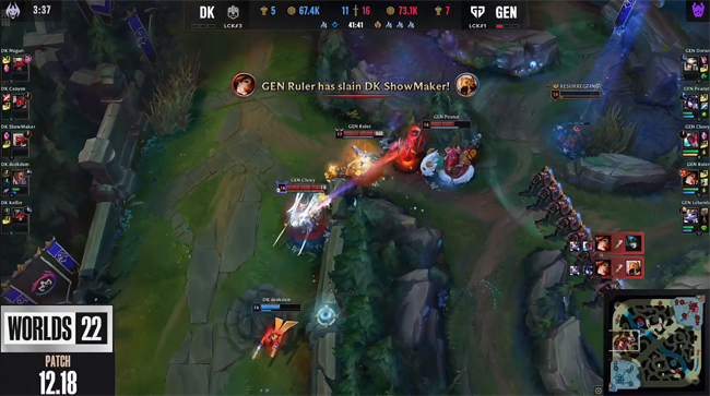 豪杰同盟S12火热举行中,腾讯消息将为您带来一手赛事资讯,为您出现全方位的电竞盛宴。 北京时间10月23日,2022举世总决赛四分之一决赛迎来“LCK内战”:一号种子GEN对阵三号种子DK!两边鏖战打满了五局,终极GEN拒绝被让二追三,有惊无险3-2镌汰DK晋级四强! 第一局 GEN:鳄鱼、大树、瑞兹、女枪、悠米 DK:酒桶、凯隐、丽桑卓、卢锡安、娜美 开局Canyon的凯隐艺高人胆大,灵性地摸进GEN上半野区,卡视野幻影狼起手。Peanut的大树在上河流找了一圈,并未发现凯隐,打完红buff之后选择打蓝速3,这才发现打魔沼蛙的凯隐,从而守住了本身的蓝buff。凯隐两度gank上路,只打掉鳄鱼的闪现。6分钟GEN中野双游上路,使用人数上风拿到酒桶的一血。 前期DK为了帮凯隐创建上风,付出了不小的代价——两边上中野的碰撞由GEN打出1换2,幸存的凯隐有惊无险拿到峡谷前锋。由于凯隐不绝在反GEN的上半野区,大树只能在下半区发育,DK下路不敢放开手脚换血,瑞兹和大树先后抓下得手,“卢娜”组合双双倒地对线炸裂。12分钟DK放出前锋撞掉GEN中路一血塔,Chovy的瑞兹一连阵亡2次,DK打出1换3如愿带起了上半区的节奏,凯隐也劳绩双杀,乐成进化为红凯,大树控下风龙作为止损,随后DK兵不血刃拿到第二只前锋,凯隐领先了大树2级加50刀。 大龙出生前DK掩护第二只前锋撞掉下路一塔,丽桑卓传送保前锋强推二塔,GEN捉住时机反打出1换3乐成止损,瑞兹怒斩三杀,拿下凯隐的闭幕赏金,经此一役DK之前的上风荡然无存。中期两边在小龙河流睁开拉扯,GEN双C的装备都领先于DK,大树先手开大劝退凯隐并留下了酒桶,GEN集火将其带走,Ruler的女枪极限“锁血”,令凯隐无法收割残局,GEN得以打出1换3收下大龙!25分钟DK防守中一塔时孤注一掷强开瑞兹,酒桶传送落地但跟队友摆脱,GEN打出0换4一波竣事角逐,逆风翻盘1-0先下一城! 第二局 DK:酒桶、猴子、沙皇、卢锡安、娜美 GEN:青钢影、猪妹、永恩、女枪、悠米 开局猴子在峡谷前锋河流靠近中路的地方插了饰品眼,想要防住Peanut的猪妹2级抓中的那一波,ShowMaker的沙皇有恃无恐,抢到2级后将永恩压在塔下,不意猪妹升到3级gank中路,此时河流的视野刚好消散,猪妹先手Q闪打断了沙皇的漂移,永恩跟闪拿到一血。 前期DK三路都手握线权,而GEN只有下路能和DK争取线权,因此猴子的第一波gank也选择了下路,“卢娜”组合资助猴子击杀悠米,稳住了下路的线权,猴子再回上路拿到峡谷前锋,作为交换猪妹控下土龙。这一场DK的战术重心转移到下路,卢锡安使用前锋吃到GEN下路一塔的镀层,随后两边上中野在中路大打脱手,GEN集火带走了酒桶。14分钟卢锡安单吃了GEN下路一血塔,转身掩护猴子再控海克斯小龙。DK先行集结在峡谷前锋河流,Doran的青钢影和队友摆脱敏捷倒地,减员的GEN只能放掉第二只前锋。 DK直接放出前锋撞掉GEN的中路一塔,大龙出生前再破GEN二塔,永恩则推掉DK上路一塔作为止损。中期青钢影和永恩不绝在边线单带施压,DK摸进GEN的上半野区,抓死了做视野的“走地猫”,转身果断开大龙。永恩没有传送无法参战,但是沙皇尴尬空大,青钢影开大锁住酒桶后猪妹乘隙Q下龙坑,拼惩戒抢到了大龙!24分钟GEN在下路闭幕了猴子,DK的局面急转直下,GEN一鼓作气通关下路,打出0换3再控风龙,经济反超了4千。 DK看到GEN抱团抢占了小龙河流的视野,果断放掉小龙转而推中,依附沙皇的被动太阳圆盘坐镇后方,稳稳地推掉GEN中路水晶。GEN“听牌”了风龙魂后实验在中戮营团,两边交换了一波技能点到为止,DK一起拉扯进自家野区,沙皇一抗三斩获双杀,带队打出1换4稳住了局面!38分钟GEN打大龙逼团,两队上演了一波顶级拉扯,混战中Chovy的永恩切掉DK的核心输出卢锡安,GEN得以打出3换4解锁了风龙魂。终极GEN在大龙河流开到E脸的卢锡安,摧枯拉朽打出0换5团灭DK竣事角逐,2-0有惊无险解锁赛点! 第三局 DK:猪妹、佛耶戈、乌鸦、厄斐琉斯、璐璐 GEN:大树、波比、沙皇、卢锡安、娜美 开局GEN抱团入侵DK下半野区,佛耶戈刷完锋喙鸟敏捷赶来,和下路组劝退了GEN三人。固然DK下路先上线,但deokdam的厄斐琉斯并没有选择卡线,反而被“卢娜”组合斲丧了一波血量,没能抢到2级。佛耶戈入侵GEN野区时被发现,沙皇资助波比拿到一血,佛耶戈还交了殒命闪现。 前期DK三线齐着花——佛耶戈gank上路越塔强杀了大树,稳稳地拿到峡谷前锋,同时下路也克制了“卢娜”,ShowMaker的乌鸦升到6级,依赖精妙的小走位“后撤步”骗出沙皇的大招,一发极限间隔的E技能拉到Chovy的沙皇,完成了对位单杀!DK得以再控水龙,厄斐琉斯和璐璐换线到上路,顺遂推掉一血塔。陷入被动防守姿态的GEN疲于奔命,DK兵不血刃控下火龙加第二只前锋,局面一片大好。17分钟DK放出前锋推中,乌鸦三连E技能全部掷中,第三发E以致拉到三人,资助队伍通关了GEN中路高地塔。 大龙出生前GEN的外塔仅剩下路二塔,DK无压力“听牌”了海克斯龙魂,经济领先6千。中期DK通过在野区和边线的视野上风反复抓单乐成,解锁了龙魂后又在上路抓死了沙皇,然后转身果断开大龙,纵然波比开大锤飞了佛耶戈,本身的海克斯闪现也被DK的AOE技能打断,佛耶戈回龙坑惩下大龙,DK势如破竹打出0换3,平推中路高地一波竣事角逐,刚强地追回一分,1-2继续生存着晋级渴望! 第四局 GEN:纳尔、猪妹、沙皇、金克丝、璐璐 DK:鳄鱼、佛耶戈、妖姬、厄斐琉斯、烈娜塔 开局佛耶戈打完双buff直接入侵GEN的上半