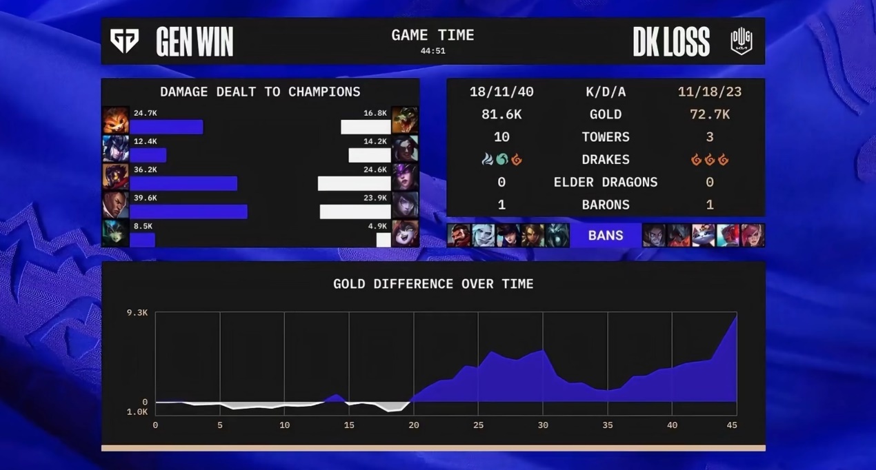 好汉同盟S12火热举行中,腾讯消息将为您带来一手赛事资讯,为您出现全方位的电竞盛宴。 各位LPL的观众和好汉同盟召唤师各人好,这里是天卑鄙戏汇。 S12镌汰赛第三场LCK内战的角逐举行到了终极的决胜局,两支战队睁开了一场史诗级的44分钟大战,DK开局上风然后崩盘,依附中野强行利用返来之后,末了一波团战照旧被GEN战队完成收割,终极古迹未能诞生,GEN拒绝让二追三击败DK晋级四强,管泽元教学席直接疯了,教学台上差点断气。 可以说固然DK被GEN镌汰出局,但DK的中野组合的表现照旧给观众们留下了深刻的印象,真正打出了泪目级的个人发挥。 Canyon锁定凯隐,但前期崩盘 决胜局的BP,GEN蓝色方继承抢猪妹,然后不测地选出了卢娜组合,二轮出刷子后期中单维克托,搭配上单纳尔。DK方面后手直接拿厄斐琉斯璐璐,然后先出上单鳄鱼,二轮自负选出打野凯隐搭配中单辛德拉。 阵容对比上,GEN这手卢娜的选择看起来比力值得商讨,这是一个必须要上风的组合,因此须要GEN给出更多的资助,关键是中单是一个发育型的维克托。 但DK这个阵容也是有标题,也是一个必须打上风的前中期阵容,拖到后期是欠好打的。 开局Canyon就开始养猪,直接入侵野区反,GEN由于线权不可,Peanut只能放掉各种野怪,Canyon是以土匪一样平常的方式连续反野,野区控图打出巨大上风。 但DK先锋处置惩罚出现标题,先Rush的情况下被猪妹捕捉到,鳄鱼没能提前过来,先锋被抢掉,辛德拉在龙坑只好交闪现跑。 之后Canyon入侵蓝BUFF直接被抓到阵亡,Peanut随后直接来中路Gank没闪现的辛德拉也乐成拿到人头,DK则是下路拆掉了一血塔。 史诗级对局,GEN略胜一筹 前期Canyon由于摸不到能量导致本身迟迟不能变身,GEN根本不给他摸能量,前期掉了两个小龙,二先锋也被GEN拿到,导致GEN前期一个很好的野区开局,实在是一个被动的劣势局面,而DK这个鳄鱼辛德拉阵容是不太能继承前期劣势的。 中期GEN连续拆掉中下两座防御塔,上路ShowMaker单带但被Peanut抓死了,GEN又是二先锋拆掉了上路防御塔。 由于龙压力太大,又刷了火龙地形,革新之后,DK过来拉扯,鳄鱼被打残之后强行进场1换4击杀了娜美,后续ShowMaker被纳尔留住也阵亡。 GEN一波打出0换4,Canyon乘隙偷掉火龙,后实行打大龙,Canyon强行一换一,守住大龙,但局面已经非常劣。重新整补后Peanut中路抓机遇先手厄斐琉斯完成击杀,之后DK强行四人抓纳尔,导致中路高地被拆。 上风局GEN选择最稳的方式来打,野区抓机遇击杀了烈娜塔,但是之后形势急转直下,Peanut脸探草丛被DK打出闪现,ShowMaker辛德拉被打残的情况下,Canyon绕后单人一抬三共同辛德拉QE刹时打出爆炸AOE,卢锡安被秒杀,DK击杀四人后直接拿下大龙。 局面逆转后DK中线中野抓机遇留住猪妹并击杀,拿下第二条火龙,再次克制GEN火龙魂。 六龙团战,两边相互拉扯了一波后GEN率先落位,但被Canyon强行进场抢掉,DK是付出两个人的代价,打出2换1但拿下了第三条火龙。 42分钟GEN野区抓Canyon,小花生大招给反了,打残Canyon,但之后DK是以状态上风率先打大龙,Canyon进场抢龙失败,DK形成困绕之势,将GEN五人困绕两边相互拉扯一波Deokdam率先施放大招,双C对拼输出的情况下,维克托阵亡,Deokdam处置惩罚出现失误被卢锡安击杀,Ruler一波四杀完成收割后,GEN一波竣事角逐。 史诗级对局,GEN更胜一筹 这场的BO5的出色水平个人以为是到达了足以载入史册的水平,这场LCK的内战BO5不出不测会成为本次天下赛中最出色的BO5之一,两支战队固然都有失误,但末了一场的决胜局简直打出了连续反转的神级剧情,让观众们紧绷的神经不停连续到末了一波团战。 回到角逐内容上,个人以为这局角逐的角逐历程能很好地显现出DK这支战队职员设置的特点,中野组合ShowMaker和Canyon这一年来的状态起升沉伏,但大多数时间内都是队伍最值得信托的Carry点,而本年新引入的下路,在关键硬仗中的发挥照旧弊端一些,也出现了更多的标题。 这局Canyon先是梦幻开局然后先锋崩盘,DK巨大劣势根本已经是等死的情况下,中野站出来以神级的团战共同打出了逆转团战,让角逐真正进入到了后期只拼一波团战,无法猜测胜负的阶段。 但末了Deokdam的团战发挥照旧棋差一招,终极DK未能创造古迹,末了照旧恭喜GEN,乐成晋级四强。 |