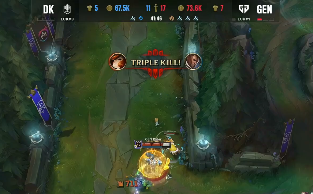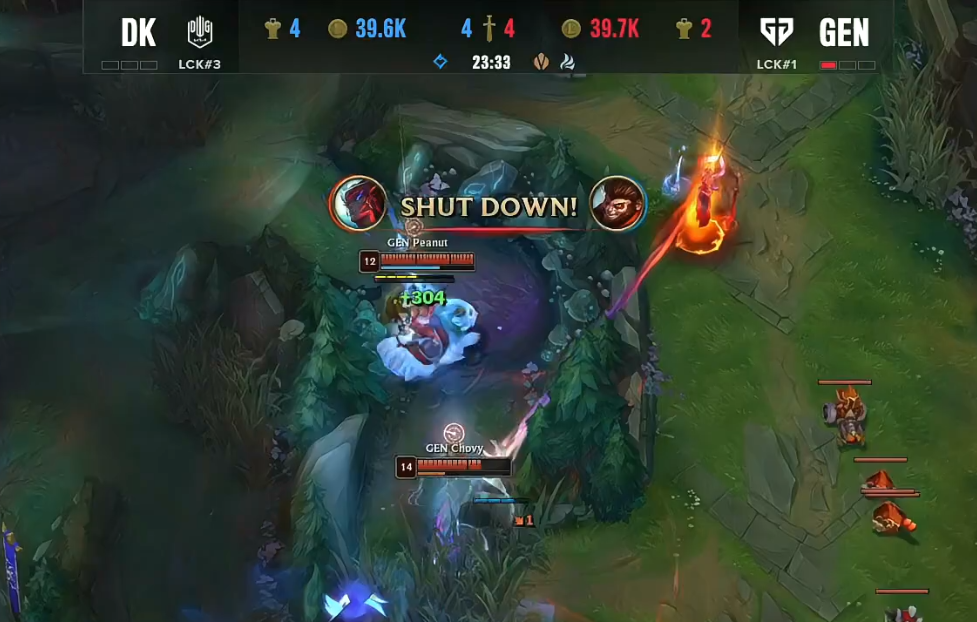 好汉同盟S12火热举行中,腾讯消息将为您带来一手赛事资讯,为您出现全方位的电竞盛宴。 北京时间2022年10月23日,S12举世总决赛八强赛迎来了GEN与DK的对决。以下是双方Bo5第二局的战报! 双方BP DK:酒桶、猴子、沙皇、卢锡安、娜美 GEN:青钢影、猪妹、永恩、女枪、悠米 与第一局比赛一样,DK又拿出了前期非常强势的卢娜组合,GEN则仍旧选择了女枪与悠米的双人路。 这局比赛开始没多久,Peanut在中路抓到了时机,与Chovy一同“击杀” 了ShowMaker的沙皇,拿到了一血。不外随后,Canyon在双人路还以颜色,乐成拿到了悠米的人头。 随后,Peanut猪妹的节奏仍旧拉满,在双人路乐成“击杀”掉了DK的娜美。之后双方在中路发作了小规模团战,GEN依附着Doran青钢影的大招乐成留住了Nuguri的酒桶,GEN再次拿到人头。不外在16分钟的峡谷先锋团战中,Doran由于走位太冒进被DK抓到了时机,GEN也没办法夺取这条峡谷先锋,DK依附着峡谷先锋破掉了GEN中路的一塔,DK徐徐有了上风。 21分钟左右,DK抓到GEN悠米做视野的时机,乐成“击杀”了悠米的同时,DK转而Rush大龙。但没想到的是,Peanut的猪妹却乐成抢下大龙,场上局面瞬间反转。而在拿到大龙之后,GEN在野区抓到了Canyon的时机,Chovy拿到“大人头”。而大概是大龙被抢的缘故,DK的心态好像受到了很大的影响,被GEN频仍抓到时机。依附着这个抢大龙,GEN开始滚起雪球。 不外,履历丰富的DK做出应对,依附着沙皇的被动,DK强行拿下了GEN中路的高地塔。随后,在中路的一波团战中,DK依附着ShowMaker精彩的表现与团队精彩的拉扯,DK打赢了这波逆境中的团战,场上的局面又开始发生了厘革,而GEN菜刀队的劣势也徐徐显现。 比赛时间37分钟,DK与GEN在大龙处发作团战,在这波团战中,双方的中单选手利用拉满,DK的ShowMaker沙皇开出完满大招,但在险些可以锁定这波团克服败的时间,Chovy的永恩乐成“击杀”掉了DK的ADC,GEN打出3换4的团战。41分钟,双方再次在团战中发作团战,但DK的ADC被GEN抓到时机,瞬间失去了战斗本事,而GEN打出0换5团战,在Ruler女枪的三杀下,GEN一波带走了DK,拿到了赛点。 |