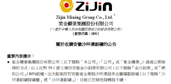 中国基金报记者 南深 10月19日中国基金报报道,“矿茅”紫金矿业近一年来疯狂“买买买”,斥资数百亿六次脱手,拿下国表里多座金矿、锂矿等资产。如今时隔短短数日,第七次脱手就灵敏到来,一同到来的另有一份百亿规模的融资操持。 10月23日晚,紫金矿业在港交所公告,以59.1亿元摘得金钼地矿持有的金沙钼业84%股权,较账面净资产溢价率高达2309.57%,且全部用现金付出。后续,为开发该项目公司还需继续投入预计72亿元,投资采取期为10.4年。 公司同时抛出方案,拟发行可转换公司债券募资不高出100亿元,融资额为公司比年最大。所得资金正是用于收购此次公告的金沙钼矿及前期公告的多个其他矿山干系资产,包罗山东海疆金矿30%权益项目、苏里南Rosebel金矿项目、圭亚那奥罗拉金矿地采一期工程项目。 10月21日晚,公司还发布了2022年三季报,前三季度营收和净利增速分别达20.84%和47.47%,但三季度单季已经出现显着下滑苗头,归母净利润40.4亿元,环比增速-38%,同比增速-13%。三季报发布后,光大证券小幅下调了公司未来三年红利推测,下调幅度在10%左右。 溢价23倍“抢”钼矿 作为以铜、金矿为主的矿业公司,紫金矿业这一两年也开始“抢”锂矿,而这一次又要“抢”钼矿。 根据公告,安徽金钼地矿投资有限公司(以下简称“金钼地矿”)持有的金沙钼业84%的股权通过安徽省产权生意业务平台以挂牌方式出让,挂牌代价为59.1亿元,公司即以挂牌价59.1亿元乐成摘得,并于2022年10月21日与转让方签署《产权生意业务条约》。 此次生意业务付出方式为纯现金付出,且公司应在条约签署之日起5个工作日内,交纳预付款20亿元(含生意业务包管金6亿元)。 从财务报表来看,金沙钼矿似乎并不吸引人。 根据安徽省产权生意业务平台的公告,克制2021年12月31日,金沙钼业资产总额为2.94亿元,负债总额为186万元,净资产为2.92亿元,2021年度实现贩卖收入0元,净利润0元。克制2022年6月30日,金沙钼业资产总额为2.9亿元,负债总额为-181万元,净资产为2.92亿元,2022年1-6月实现贩卖收入0元,净利润0元。 经资产底子法评估,金沙钼业净资产账面代价为2.91亿元,评估代价为70.33亿元,增值额为67.41亿元,增值率为2309.57%。极高溢价收购,公司的醉翁之意在其背后的资源。 公告称,金沙钼业拥有沙坪沟钼矿探矿权,勘查面积为2.93平方公里。沙坪沟钼矿属特大型斑岩型钼多金属矿床,根据2013年经安徽省国土资源厅存案的《安徽省金寨县沙坪沟钼矿勘探地质陈诉》表现,探矿权内沙坪沟钼矿估算的资源量为矿石量16.3亿吨,钼金属量233.78万吨,匀称品位0.143%。 须要留意的是,沙坪沟钼矿探矿权有效期至2022年12月22日。公告称,现在沙坪沟钼矿探矿权正在办理探转采的手续,已通过安徽省自然资源管理部分考核,尚待自然资源部的终极审批。 拿下沙坪沟钼矿后,公司后续仍需投入大额资金开发。该项目创建期4.5年,总投资预计72亿元,此中创建投资64亿元,建成达产后年均产钼精矿含钼2.72万吨。产物贩卖代价按照钼精矿含钼15万元/吨(含税)计,年均利润总额10亿元,项目投资内部收益率12.48%,投资采取期为10.4年(含4.5年创建期)。 为近一年第七次脱手 据中国基金报记者统计,这已是这家矿业巨头近一年来至少第七次脱手收购矿山干系资产,以金矿为主,也包罗锂矿、钼矿等,合计耗资超260亿元。 几天前的10月19日公司公告,将通过境外全资子公司Silver Source Group Limited出资3.6亿美元(约合人民币25.59亿元),收购IMG持有的Rosebel Gold Mines N.V. 95%的A类股份股权和100%的B类股份股权,后者拥有苏里南Rosebel金矿项目,为南美洲最大的在产金矿之一。 再往前一周的10月11日,公司与山东博文矿业签署《股权转让协议》,公司出资39.845亿元,收购博文矿业持有的瑞银矿业的30%股权。瑞银矿业持有瑞海矿业100%股权,瑞海矿业持有山东省莱州市三山岛北部海疆金矿100%权益。公司称该金矿为比年国内最大金矿,保有金资源量562.37吨,匀称品位4.2克/吨。 2022年7月14日,公司部属全资子公司紫金西北公司通过协议转让方式,收购阿历克斯持有的伟福矿业100%股权,股权转让价款为4.62亿元,同时出资3823.61万元收购阿历克斯等债权人持有的对伟福矿业和同源矿业的债权,合计出资4.99亿元。收购完成后,公司将持有同源矿业70%的股权以及对同源矿业2.63亿元的债权,同源矿业持有新疆乌恰县萨瓦亚尔顿金矿100%权益。 2022年6月30日公司公告,湖南老实矿业持有湘源锂多金属矿采矿权100%权益,原业主以开采锡、钨等脉状矿产为主,颠末重新评价,该矿为大型云英岩型低品位锂矿床,可以大规模露天开采。公司通过协议转让方式,出资18亿元,收购老实矿业71.1391%股权。 2022年4月30日,紫金矿业与盾安控股团体、浙商银行杭州分行签署《相助协议书》,公司拟出资收购盾安团体旗下四项资产包(包罗西藏阿里拉果错盐湖锂矿70%权益等),生意业务标的资产总作价为76.82亿元。盾安团体持有的浙江金石矿业100%股权,作价48.97亿元,为本次收购的核心资产。金石矿业持有西藏阿里拉果资源公司70%股权,拉果资源公司拥有西藏阿里改则县拉果错盐湖锂矿项目。 2021年10月11日,公司披露《关于以现金方式收购加拿大新锂公司的公告》,公司以现金方式出资约9.6亿加元收购加拿大多伦多证券生意业务所创业板上市的新锂公司全部已发行且流畅的平凡股。新锂公司核心资产为位于阿根廷西北部卡塔