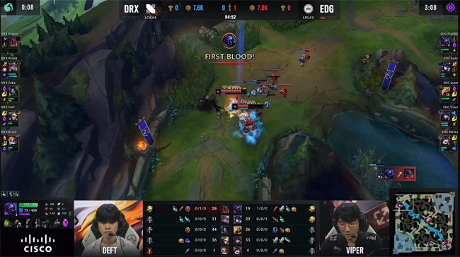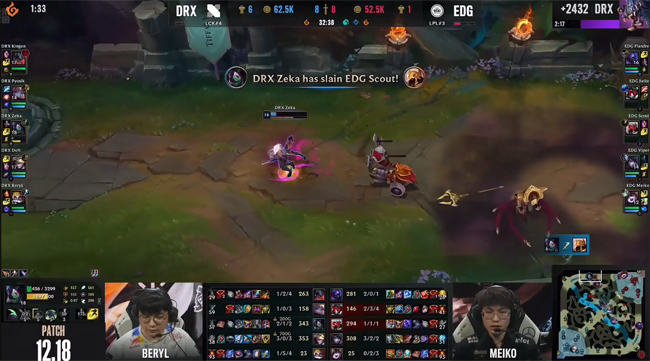 豪杰同盟S12火热举行中,腾讯消息将为您带来一手赛事资讯,为您出现全方位的电竞盛宴。 北京时间10月24日,2022环球总决赛四分之一决赛的收官战由LPL三号种子EDG对阵LCK四号种子DRX!先失一局的DRX在第二场实时调解回状态,前期推塔节奏拉满,EDG三路一塔早早失守,中期视野压力太大,不外Deft的EZ在后期一连失误送掉了上风,终极EDG在掉队一万经济的环境下实现了绝境翻盘,2-0解锁赛点! 第二局 DRX:剑魔、波比、阿卡丽、EZ、黑默丁格 EDG:贾克斯、猪妹、沙皇、厄斐琉斯、璐璐 开局BeryL的大头一连了第一场上线后的克制思绪,摆炮台越兵线斲丧厄斐琉斯,挂上引燃打出厄斐琉斯的疾跑,不外本身也被璐璐逼出闪现。波比的第一波gank选择了上路,不意猪妹在河道草丛等候多时,波比反被EDG上中野包夹打出闪现,随后猪妹再次抓上得手,帮贾克斯拿到剑魔的一血。 波比见猪妹出现在上路,转而绕后gank下路,EDG双人组压线过深,璐璐卖本身掩护厄斐琉斯退却,双方辅助交换倒地。前期上路成为两队的博弈重心,双方上中野的正面对决打成平手,剑魔和猪妹先后阵亡。Jiejie的猪妹复活之后赶往下路,蹲在草丛里比及了做视野的大头,毫无预警的大头闪现撞墙直接“白给”,EDG转身稳稳地控下水龙。DRX野辅双游上路时又遭到EDG的反包夹,刚刚复活的大头再次倒地。大龙出生前EDG付出三人的代价才控下海克斯小龙,DRX打出0换3还拔掉三座一塔,经济领先5千。 中期DRX掩护第二只峡谷前锋推掉中路二塔,EDG在两侧野区的视野受限,厄斐琉斯在中路清线时被大头隔墙的E技能晕到,DRX集火将其带走,转身果断开大龙,波比开大锤飞了猪妹,DRX得以惩下大龙并满身而退。剑魔单带推掉下路二塔,而EDG中野在上路闭幕了阿卡丽,沙皇拿到闭幕赏金作为止损,同时打断了DRX的推进节奏。EDG三C可以大概继承发育,双方在中路交换了一波技能后EDG“听牌”了火龙魂。30分钟DRX发现了璐璐回城的讯息,捉住时机rush掉大龙。EDG中、下两路水晶告破,经济掉队来到1万。后期Deft一连失误送掉了上风,EDG解锁三龙会翻盘竣事比赛,2-0拿下赛点! |