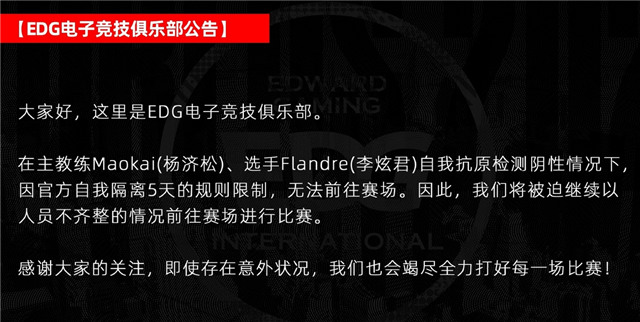 前导:八强赛的末了一天,DRX让二追三拿下EDG,得到本场比赛的胜利。一开始EDG连拿两局,各人都以为他们稳了:EDG能翻盘得胜,而且第二局中EDG水晶丝血锁住,似乎证实“运气”是站在EDG这边的。 惋惜EDG选手不信赖“运气”的说法,他们用两种做法支持本身打下去:一种是提拔心态,在LCK总要打满五局才气赢,以是DRX选手没有早早放弃比赛,对峙打到决胜局,终极乐成让二追三得胜。 EDG镌汰meiko流露战队难处,跟小虎说辞很划一 第二种做法是口头鼓励,Deft说过一位运动员的自我鼓励方法。每劈面临关键比赛,运动员就对本身说“可以的,可以的”。Deft以为这种做法很有用,就对队友说“能行的,能行的”,第五局果然得到了胜利。 DRX选手的韧性让人敬佩,那么EDG毕竟是怎么输的?meiko赛后继承采访,没想到他流露的难处跟小虎说法划一。RNG镌汰后,小虎说他们战队状态欠好,身材尚未完全规复。厥后小虎继承专访,称抱病生得很突然,选手们不绝不在状态。战队筹划被打乱,训练赛没打几局。赛前安排的训练赛险些没赢过,只能抱着“努力一试”的心态上场 训练赛跟比赛结果痛痒干系,RNG训练赛没赢过,比赛也被三比零了。EDG跟DRX打满五局,主持人问meiko一个题目:这次比赛结果较为靠近,很遗憾EDG没能取得胜利,你以为是那边出了题目? EDG赛前还用同一个来由表明:病中难以训练影响发挥 田野说了两个来由:第一个是比赛中出现的题目,失误太多了。另一个就是来这里之后身材不惬意,各人陆连续续抱病,不绝在单独的房间里训练。田野说:训练赛状态欠好,在比赛里的发挥也不会太好。结果果然像他说的那样,EDG功亏一篑无缘四强。 按照小虎、田野的说法,RNG和EDG都输给了同一个题目:选手身材欠好,病中难以发挥气力。EDG选手“中招”隔断时间较长,一开始是Scout,厥后轮到杰杰、田野他们,迩来圣枪哥和茂凯“中招”,出现了低烧症状。 比赛开始前,EDG就用这个来由向各人表明:圣枪哥、茂凯自我检测没题目了,但是还不能去现场。战队不得不在职员不齐的环境下前往赛场,参加比赛。末了EDG战队说了一句:纵然存在不测环境,我们也会经心尽力打好每一场比赛。 总结 EDG赛前、赛后都提过身材题目,证实他们状态还没规复,因此影响到比赛进程。对比之下,LCK战队占据上风。大部门队伍都曾“中招”,选手症状相对较轻。以是LCK选手敏捷规复训练赛,对上LPL战队更具上风。 固然听着很像捏词,但是我们也不得不认可,抱病确实影响了选手的状态。无论是好汉同盟照旧DOTA都出现了类似的环境,一旦抱病,队伍的结果急转直下进而镌汰。如今只盼望JDG的状态能调解到最好,尽力赢下之后的比赛。 |