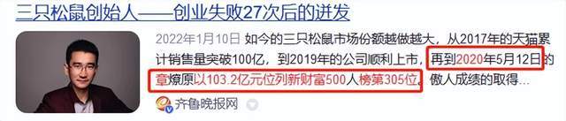 文 | 杨万里 “国民零食第一股”三只松鼠不香了。 从2020年5月份高点至今,三只松鼠累计跌幅达80.88%,总市值蒸发超294亿元。停止2022年10月25日收盘,该公司最新股价为17.37元,总市值为69.65亿元。 29个月的漫长调解,不但让中小投资者亏损惨重,连实控人章燎源的身价也大幅缩水超74亿元。 从昔日牛股到熊股,三只松鼠发生了什么?大概与投资逻辑动摇有关,包罗业绩不被承认、食品安全风波频出、告急股东连续减持套现打击市场信心等。 回首章燎源的创业进程,颇具有戏剧性。从空空如也的“地痞”变成亿万富豪,他是怎么做到的? 创业失败27次,终成亿万富豪1976年,在安徽绩溪农村,诞生了一名男娃,叫章燎源。 十几年后,这位小伙没有创造“寒窗苦读、改变运气”的励志故事,仅仅读了中专,早早地进入了社会。 在外人眼里,年轻时间的章燎源是个“地痞”。跟社会青年抱成一团、逃课打斗,光从这些古迹看,他险些不具备成才的特性。 变乱的迁移转变点得从一位亲戚提及。1994年,做交易的表哥带章燎源英气地消耗了一把。看到表哥的阔绰生存,在他内心引发了乐成欲。 之后,章燎源选择创业。从卖服装、卖冷饮、卖光碟、刷油漆、做电工、摩的司机...创业多达27次,失败也到达27次。那种失落,只有他本身才华领会到。 26岁那年,仍在在社会上飘荡的章燎源变化了思绪,决定选择一家公司去实践。 厥后,章燎源进入安徽詹氏食品有限公司工作。由于业绩精彩,两年内,他被提升为营销副总司理,成为公司的核心高管。 彼时,章燎源有房、有车、高额的年薪,能有云云的成绩,算得上非常精彩。 网传,在2010年,章燎源看了某电商大佬的电商理念有了新的想法。他如饥似渴地向公司提出进军电商的规划,但公司高层没有承认。在其他管理层看来,电商没有实体店靠谱。 詹氏食品公司早早地错过了一个机遇,章燎源却把握了一个机遇。 2012年1月份,章燎源公开发文公布辞职,在36岁这年,正式开启了本身的第28次创业。他以为,“这是创造电商品牌末了的机遇,也是一场基于互联网期间的营销革命”。 “松鼠老爹-章三疯”的名称由此得来。 脱离原公司后,章燎源灵敏组建了一支五人创业团队,并创建了“三只松鼠”品牌。为了模仿其他互联网公司,他选择用松鼠的形象,轻易让消耗者遐想到吃坚果。 三只松鼠建立后,发展速率极快。用63天时间,该公司把日贩卖量做到1000单;用65天时间做到了天猫坚果行业销量第一。 七年后(2019年7月份),三只松鼠敲开了A股的大门,在二级市场追捧下,迎来了高光时候。 2020年5月18日,三只松鼠股价涨至90.87元,总市值高出364亿元。当年,章燎源以103.2亿元财产位列《2020新财产500富人榜》第305位。 然而,在牛市潮水退去后,昔日的“小甜甜”变成了“牛夫人”。 从2020年6月份开始,三只松鼠步入了漫长的下跌通道。29个月事后,该公司股价、总市值跌去八成。 如今,章燎源的最新持股市值约为29.15亿元。相比昔日高光时候,他的身价缩水超74亿元。 为何不被追捧了?每一家公司涨跌背后,通常是一些因素在影响。 三只松鼠跌跌不休,大概与其投资逻辑动摇有关。 一方面,三只松鼠的业绩不被市场承认。 上市以来,三只松鼠的业绩相继出现“增收不增利”、“增利不增收”、“业绩双降”等特性。 2019年至2022年上半年,三只松鼠实现营收101.7亿、97.94亿、97.70亿、41.14亿,分别同比增长45.30%、-3.72%、-0.24%、-21.80%。 同期,公司实现归属净利润2.387亿、3.013亿、4.111亿、8213万,分别同比增长-21.43%、26.21%、36.43%、-76.65%。 已往,三只松鼠的告急策划战场在线上,比年来公司处于转型中,从电商单一渠道转向线上线下全渠道运营。 在两大战场中,三只松鼠均碰到了“烦恼”。 先看线上:2022年上半年,三只松鼠第三方电商平台实现收入30.13亿元,同比降落16.79%。券商机构分析称,线上收入下滑的缘故起因是线上平台流量下滑、疫情影响下部门地区物流受限。 从趋势看,如今,主流电商平台流量边际增量放缓,三只松鼠享受互联网红利到了尾声阶段。 再看线下:2022年上半年,三只松鼠线下实现收入10.69亿元,同比降落30.22%。 与电商平台差别,布局线下门店必要思量策划本钱、管理、服务,这些都查验着三只松鼠的策划本事。 本年上半年,三只松鼠主动关闭策划情况欠佳门店,投食店、同盟店分别净镌汰55家、145家。 在线下市场,三只松鼠面对的另一个挑衅是偕行竞争对手,像洽洽食品、良品铺子等公司在线下市场布局时间更长。 进一步看,国内休闲食品市场出现“大行业+小公司”的特点。这个赛道具有万亿规模,但行业会合度偏低,竞争压力不小。 公开数据表现,休闲食操行业全渠道市场份额前五名分别是旺旺、百事、三只松鼠、洽洽食品及良品铺子,市占率均低于7%。 另一方面,食品安全风波频出,肯定程度影响了公司荣誉。 上市以来,三只松鼠至少三次上过热搜。 2020年11月,三只松鼠的薯片丙烯酰胺过高,到达2000μg/kg,远超此前欧盟设定的基准程度值750μg/kg。 2021年5月,三只松鼠一批次开口松子产物过氧化值超标。 2022年9月份,网传在三只松鼠的零食中发现一只疑似被油炸过的壁虎。很快,三只松鼠体现针对“壁虎变乱”已报警,并主动共同市场羁系部门观察。 停止2022年10月25日,三只松鼠累计投诉量达1780条,消耗者相继爆料“有头发”、“发霉”、“吃出异物”、“吃出