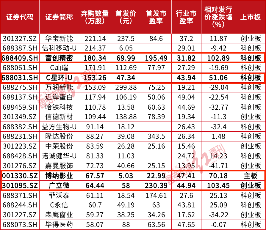红周刊 | 刘杰 在A股市场中,申购新股“中签”一度被视为是“捡着钱了”,然而,近几个月,有很多新股却出现了网上申购“中签”后被“弃购”的征象,而且总弃购股数也出现攀升趋势,究其缘故原由或与近期新股“破发率”居高不下有关。 《红周刊》发现,在被“弃购”的新股中,也有部门公司的市场体现相当不错,股价翻倍上涨,这意味着“弃购”这些新股的投资者大概错过了一个不错的赢利机遇。 别的,在新股“包销”模式下,承销商与新股高度绑定,面对弃购率较高而上市后市场体现不佳的新股,干系券商则浮亏严峻,苦不堪言。 新股中签“弃购”征象增多 部门被“弃购”股票收益翻倍 据《红周刊》统计,9月以来(制止10月24日),在网上申购的70余只新股中,有60只存在中签后被弃购的环境,弃购股数凌驾2900万股。而7月至8月新股中签后弃购的股数约为1500万股,显然,近两个月新股中签后被弃购的环境越来越多。 曾多少时,打新中签被看作是“捡钱”,虽也偶有“弃购”征象,但一样寻常都是由于投资者一时大意,或其他缘故原由导致的账户资金不敷而放弃申购,主动放弃申购的环境则比力少,而近来“弃购”征象增多,或与市场处于下行期,投资者避险感情升温,打新热度降落有关。 详细来看,出现弃购的新股重要会集在科创板与创业板(详见表1),两个板块均实验的是注册制,新股发行订价机制较为机动,干系板块中部门新股的市盈率、发行价均偏高,因此破发的环境比力多,介于此,部门中签的投资者或是为了规避“破发”风险,选择弃购。 然而,《红周刊》发现,多家遭“弃购”的新股后续的市场体现照旧很不错的,以遭“弃购”股数排名前20家的新股来看,富创细密、C星环-U、博纳影业、广立微四家公司制止10月24日的股价相对发行价涨幅均凌驾50%。此中富创细密和广立微两家公司的股价更是实现翻倍增长,涨幅分别为102%、103%,这意味着“打新”投资者若中签这两只新股而不弃购,在短短一个多月内,收益已经翻倍。 表1: 9、10月新股弃购数现在20名 数据泉源:Wind 遭“弃购”股数最高的华宝新能也是年内发行价最高的新股,其发行价为237.50元/股,网上投资者缴款认购的股份数目为969.10万股,而放弃认购的数目为221.14万股,弃购金额高达5.25亿元,网上弃购率为18.58%,创下近期新高。 “弃购”新股承销商包销 部门券商因之浮亏逾亿元 诸多新股被中签者“弃购”,那这些遭“弃购”的新股又行止了那里呢?答案是:承销商。据统计,上文中遭“弃购”新股的承销方式均是承销商包销。 随着新股“弃购”数目标增多,券商“接盘”的新股也越来越多,然而,新股上市后市场体现各不雷同,因此便出现了“几家欢乐几家愁”的状态。譬如中信证券,据《红周刊》盘算,其包销“弃购大户”富创细密的浮盈规模大概已过亿元,而东海证券则因承销万润新能,浮亏约1.33亿元(详见表2)。 表2: 9、10月承销商包销弃购部门股票浮盈亏环境 备注:《红周刊》据Wind数据盘算所得,期间为9月1日-10月24日 实际上,面对弃购率居高不下的状态,有的券商相当头疼,尤其承销多只新股的券商,一旦踩中弃购率高、上市体现又欠好的新股,将极大影响企业业绩。有券商就曾向客户发出“新股中签缴款是一个股民的任务”“不得给予弃购”的服务短信,一时间引发市场热议。 “打新稳赚”日子已经一去不复返,新股“破发”常态化趋势显现,投资者还需思量新股根本面、产物稀缺性、技能先辈性、管理层管理环境、行业发展远景等多重因向来选择“打新”标的。对于不中意的新股,则只管不加入为妙,由于根据干系规定:“网上投资者一连12个月内累计出现3次中签后未足额缴款的环境时,自结算加入人近来一次申报其放弃认购的越日起6个月(按180个天然日盘算,含越日)内不得加入新股、存托根据、可转换公司债券、可互换公司债券的申购。”这意味,投资者不能再“闭眼打新”,以免因“弃购”次数过多,影响后续的“打新”筹划。 (文中提及个股仅为举例分析,不做交易发起。) |