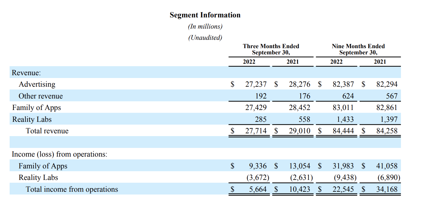 元宇宙还是Meta的烧钱黑洞。 美东时间10月26日盘后,脸书(Facebook)母公司Meta(Nasdaq:META)发布2022年第三季度财报,陈诉期内,公司营收降落4%至277.14亿美元,这是连续第二个季度出现营收同比下滑,此前的二季度是Meta史上初次营收下滑。 Meta第三季度净利润43.94亿美元,同比大幅降落52%,连续四个季度降落;每股收益(EPS)1.64美元,同比降落49%,低于分析师预期的1.98美元。《华尔街日报》称,近十年以来,Meta从未出现过连续第四个季度净利润降落的环境。 图源:Meta 焦点业务广告营收降落 只管营收净利出现双降,Meta首创人兼CEO马克·扎克伯格(Mark Zuckerberg)仍旧对将来显现乐观态度,其在电话聚会会议上表现,“从我所看到的环境来看,公司产物趋势看起来向好,我非常有信心Meta会朝着好的方向发展。” 用户数目方面,第三季度脸书日生动用户(DAUs)数目增长,同比增长3%至19.8亿;月生动用户(MAU)为29.6亿,同比增长2%。 应用家属(Family of Apps)方面,包罗脸书、Instagram、Messenger、WhatsApp和其他服务等的应用家属,第三季度实现收入274.29亿美元,同比降落3.6%。扎克伯格表现,Instagram和Whatsapp的每月生动用户均高出20亿,此中,模仿TikTok机制的短视频功能Reels在脸书和Instagram上的逐日欣赏量达1400亿,比六个月前增长50%。 广告业务表现仍旧疲软,第三季度营收272.37亿美元,同比降落3.7%。广告为Meta的支柱业务,贡献总营收的98.27%。此中,权衡向用户展示广告数目的广告显现量(Ad impressions)增长17%,而当季单位广告代价下滑18%。Meta将其归咎为苹果的跟踪透明度(APP tracking transparency)功能拦阻公司跟踪用户数据。 Meta首席财政官David Wehner表现,跟踪透明度功能对Meta的影响在第三季度有所减弱,但通胀飙升和其他因素(包罗俄乌辩说)导致广告需求疲软。美元走强也造成影响,假如汇率保持稳固广告收入应该会略有增长。 扎克伯格说,Meta面临着很多挑衅,比方经济逆风、苹果隐私政策以及来自TikTok等软件的竞争。他表现,“Meta将在将来差别时段办理这些题目。有耐心并投资我们的人终极将得到回报。” 对于第四序度的业绩指引,Meta预计总营收在300到325亿美元。Meta还预计2022年的总付出将在850至870亿美元之间,低于此前猜测的850至880亿美元。 元宇宙业务已亏损94亿美元 第三季度,Meta元宇宙部门现实实验室(Reality Labs)仍未实现红利,实现营收2.85亿美元,同比降落48.9%,亏损额达36.72亿美元。该部门在第一季度和第二季度分别亏损29.6亿美元和28.02亿美元,本年以来已累计亏损94亿美元,而2021年曾亏损超100亿美元。 Meta首席财政官David Wehner表现,这是由于Quest 2头显的销量降落。据《华尔街日报》此前报道,已往三年里,Quest头显的保存率(即全部者连续利用该头显的比例)每年都在降落,高出一半的Quest头显用户在购买该产物6个月后,不会再继续利用。 Meta表现,预计现实实验室2023年的亏损将扩大。扎克伯格在电话聚会会议上表现,2023年Meta将加大对元宇宙项目标投入。 扎克伯格说,“显然,元宇宙是我们长期积极的目标”,他表现长期投资元宇宙业务“终极将会得到回报”。扎克伯格承认,开发元宇宙业务的部门缘故原由是,为了在将来拥有一个平台,可以免受苹果等竞争对手影响。但最重要的缘故原由是,元宇宙可以或许为科技公司在构建支持盘算平台方面,提供更多创新性。 然而就在本周,Meta的长期股东之一Altimeter Capital对烧钱的元宇宙提出不满,其CEOBrad Gerstner公开致信扎克伯格,渴望Meta限定对现实实验室的投资,最好不高出50亿美元。此前Meta曾公布,本年操持投资约100亿美元研发元宇宙干系技能。 别的,Meta没有在三季报中提供假造天下Horizon Worlds的用户数据。根据《华尔街日报》此前报道,Horizon Worlds的月生动用户不敷20万,远低于该公司早先设定的50万用户目标。 值得留意的是,Meta曾在9月尾公布冻结雇用,操持开除员工并重组部门团队,以便淘汰开支并调解优先事项。 扎克伯格表现,将来Meta的三大焦点业务为推进Reels功能的“发现引擎”、广告以及元宇宙。2023 年公司会将重心放在优先级项目,这意味着一些团队将面临重组。预计到2023年底,Meta的规模将与第三季度持平。克制本年9月30日,Meta员工数目达8.73万,同比增长28%。 克制10月26日美股收盘,Meta收跌5.59%,报129.82美元/股,盘后一度跌近20%。本年以来Meta股价已跌逾60%,市值缩水超5500亿美元。《华尔街日报》指出,股价下跌令Meta的市值跌破3000亿美元,这是自2016年2月以来这家交际媒体巨头的市值初次低于这一程度。 |